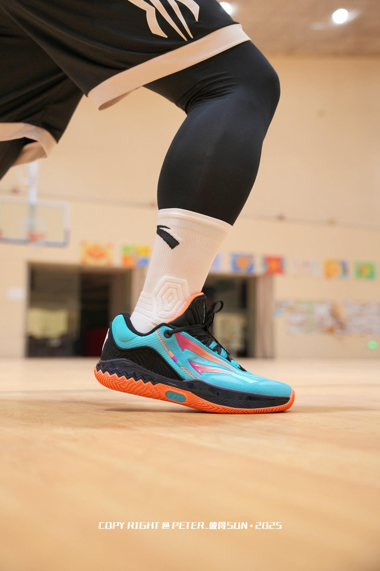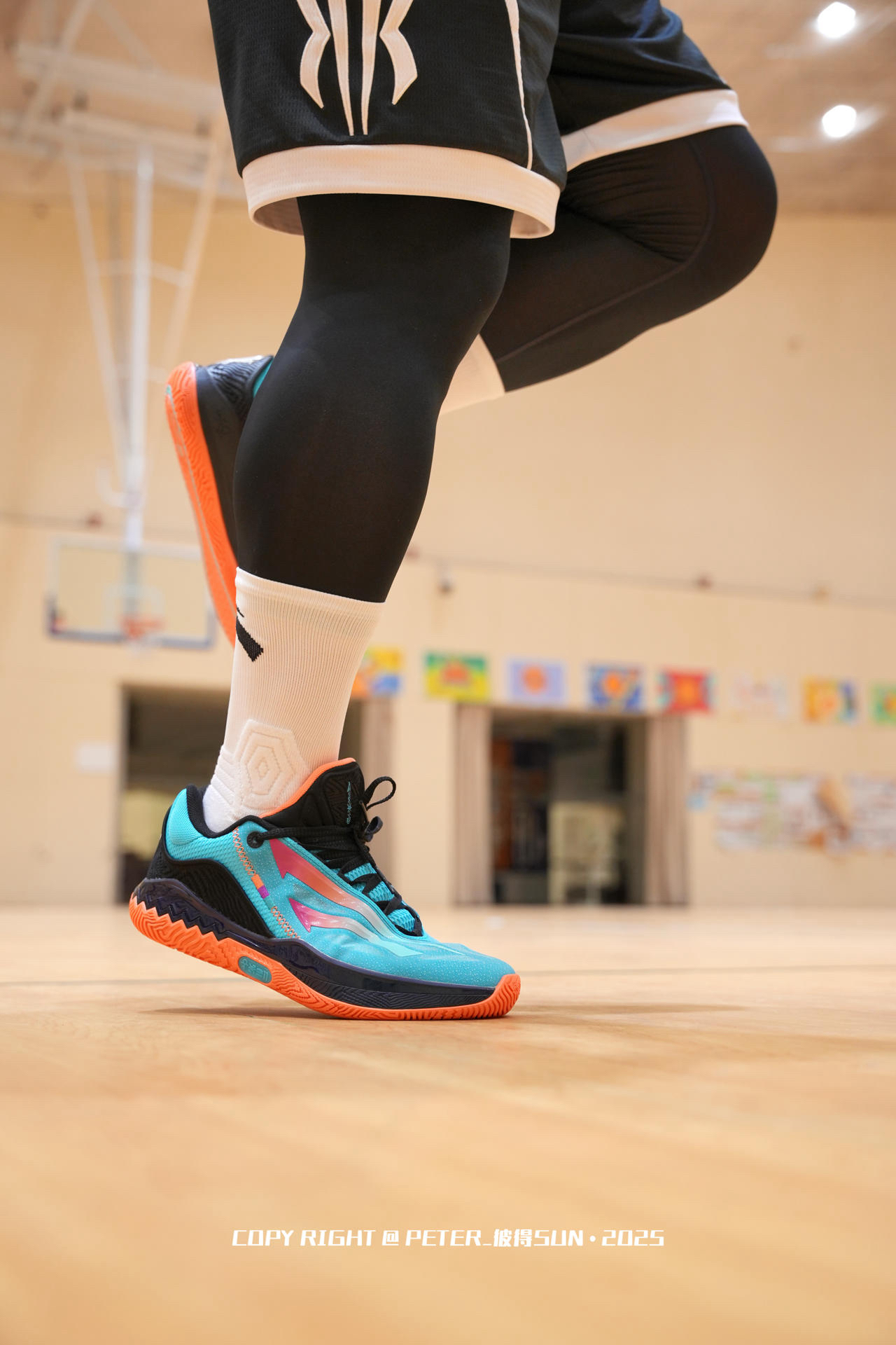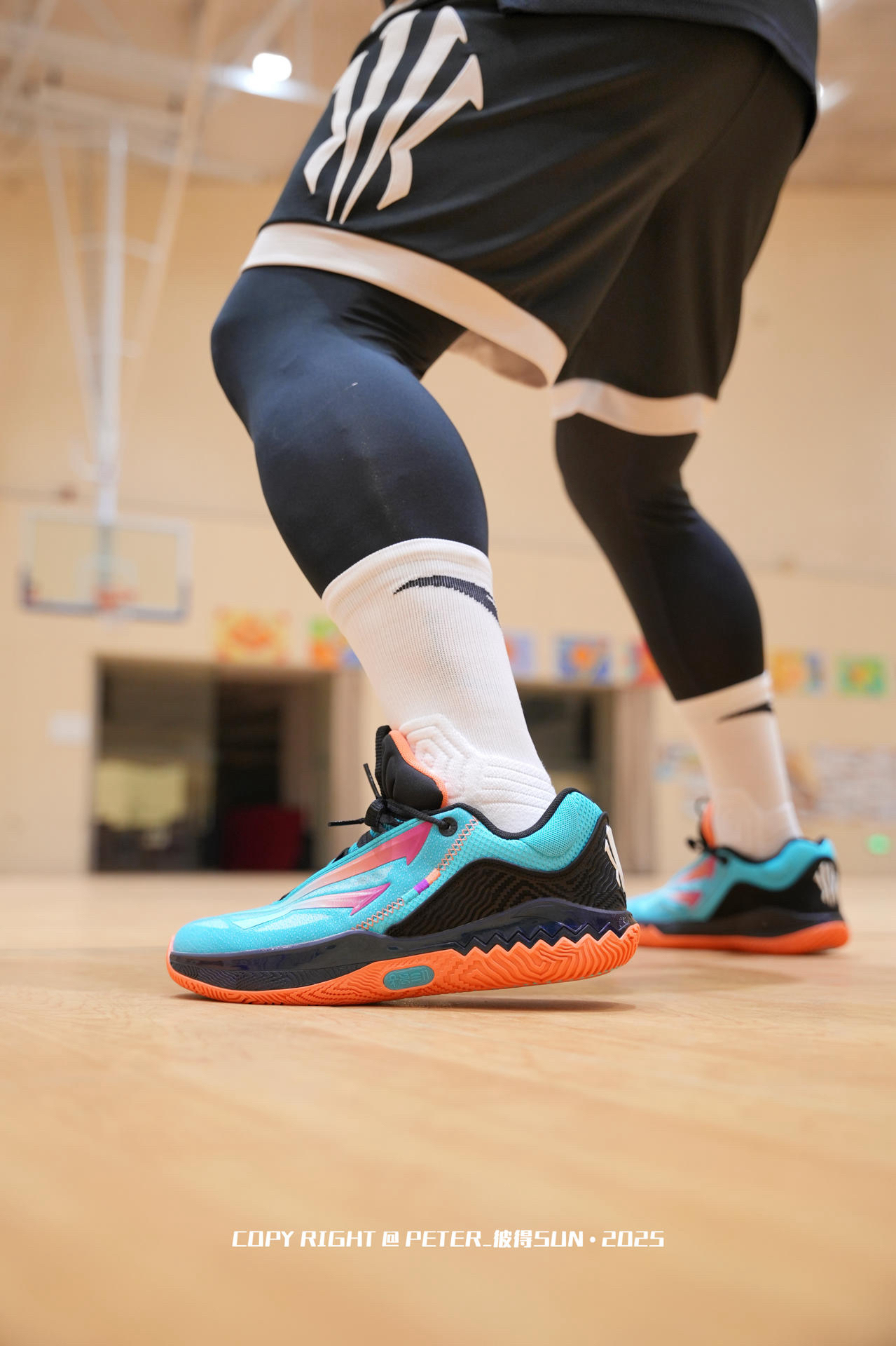 先驱 二 刚出来的时候确实让我眼前一亮,超大的欧文之盾直接覆盖在鞋面。让我一度认为这是欧文正代。 首发的白紫配色对比度很强。今天上脚的晨曦配色我倒是觉得最符合欧文个人特色,这个湖蓝搭配橘色很有印第安部落的风格,而且辨识度也很高。 先驱2是采用了A Shock Pro的中底,原本以为是减配,意外的发现这个材质的韧弹感还是挺不错的。而且后掌的缓震也够用。重心中规中矩,比较适合投射型的打法。 尺码按正常...