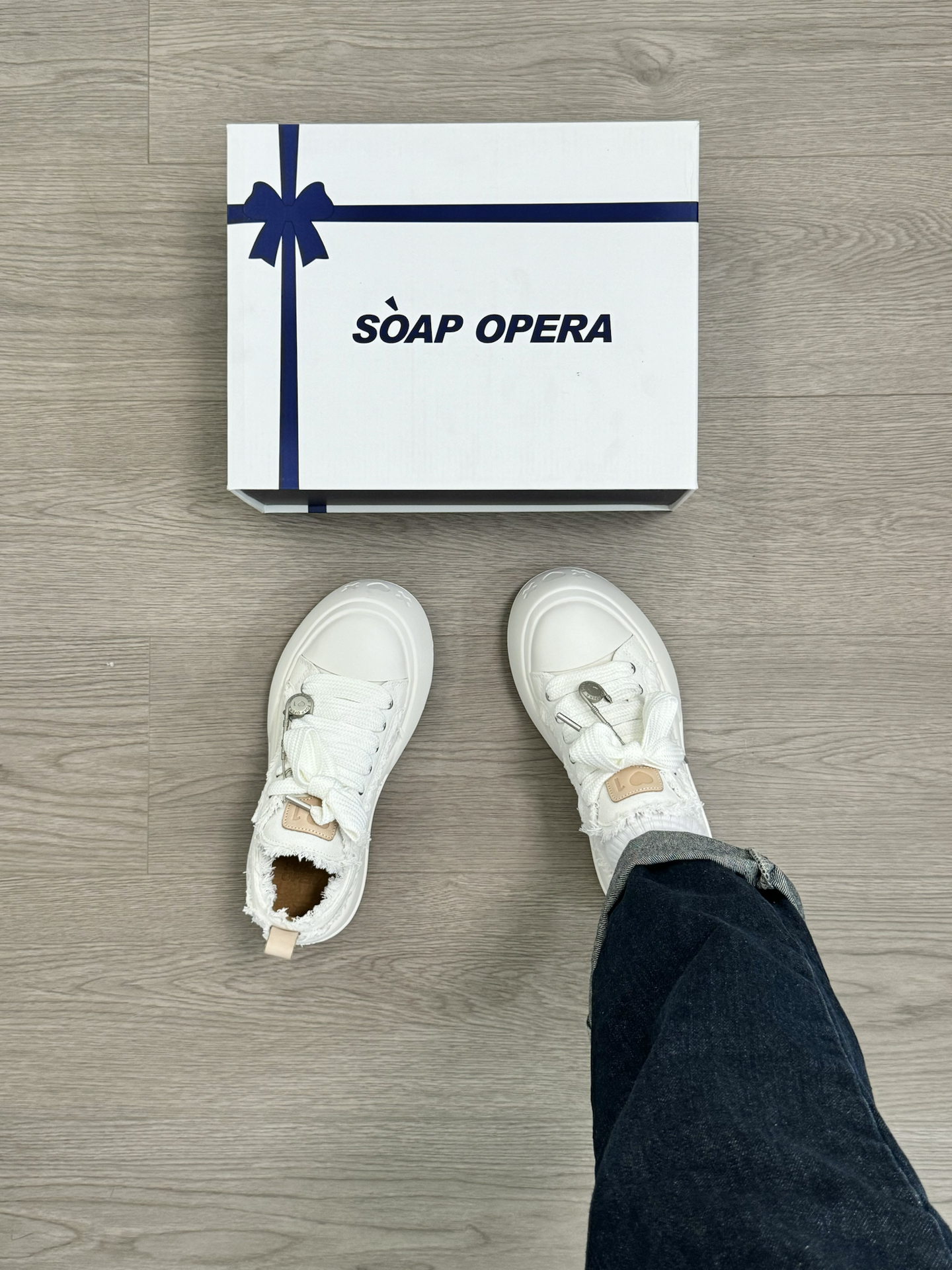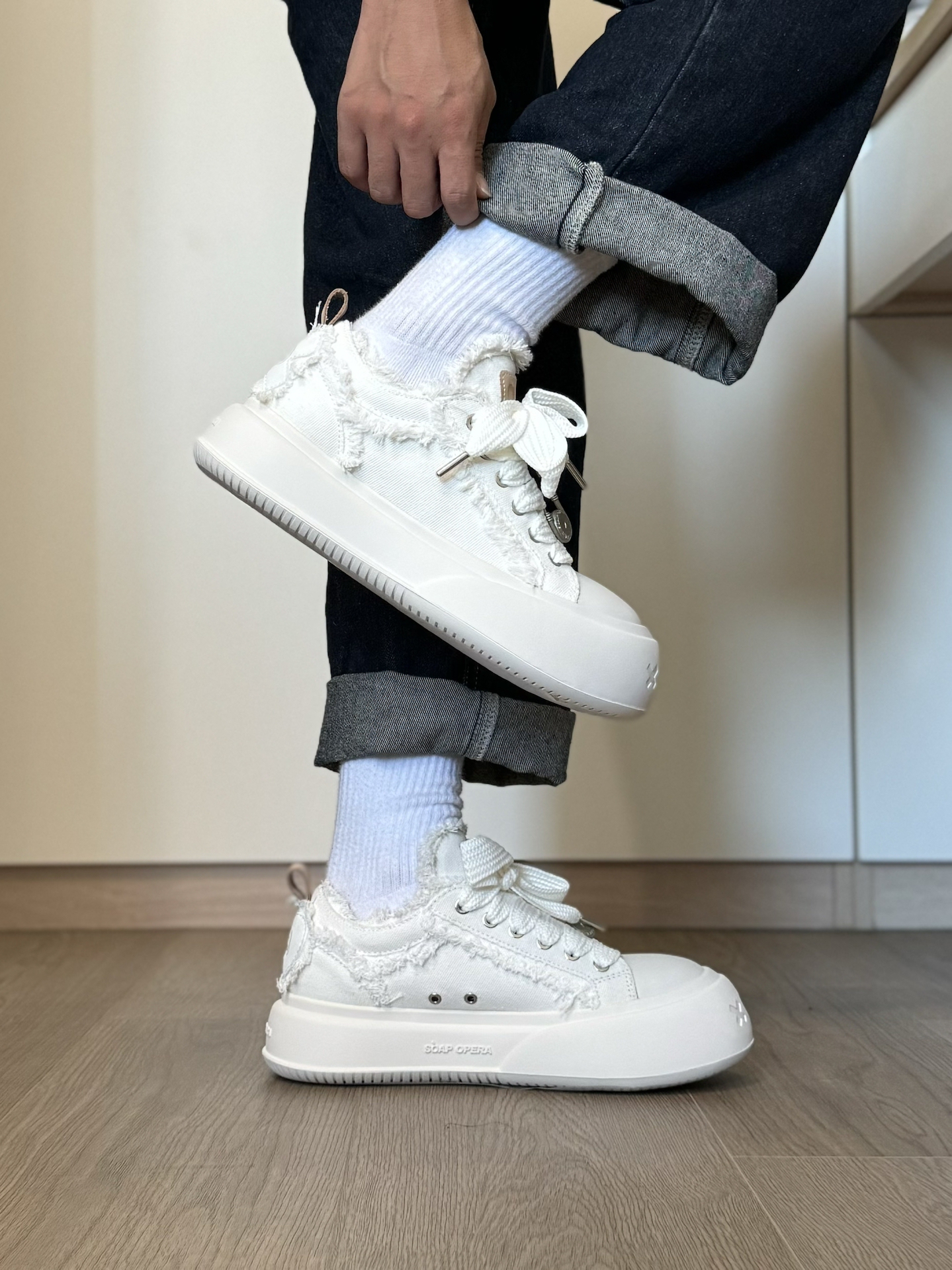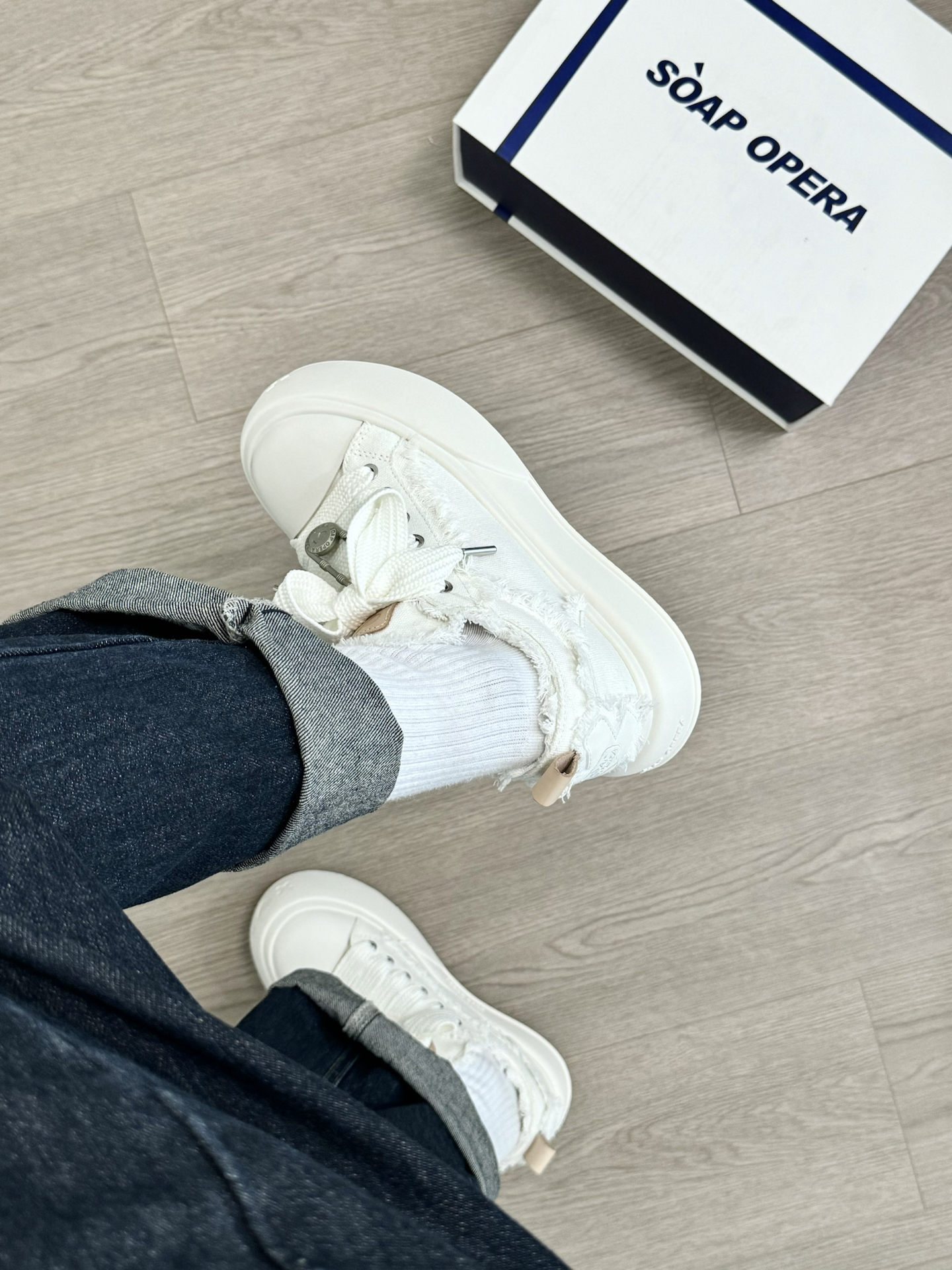 分享一双最近整理鞋柜 看到的小众但很帅的 SOAP OPERA 厚底帆布鞋~ 纯白的配色 加上侧面的流苏点缀 层次感蛮丰富的 而且虽然看起来很大 其实穿起来还挺舒服的 因为里面鞋垫很软很厚 上脚我觉得可以搭配 一些原色的美式牛仔裤 或者偏宽松的休闲裤 都挺帅的 关键是很显身高 大概有5cm左右吧 #美鞋也能暴走一整夏 #潮男鞋柜很难不爱 #穿这双回头率超高 #一种很新的秀鞋方式 #SOAPOP...