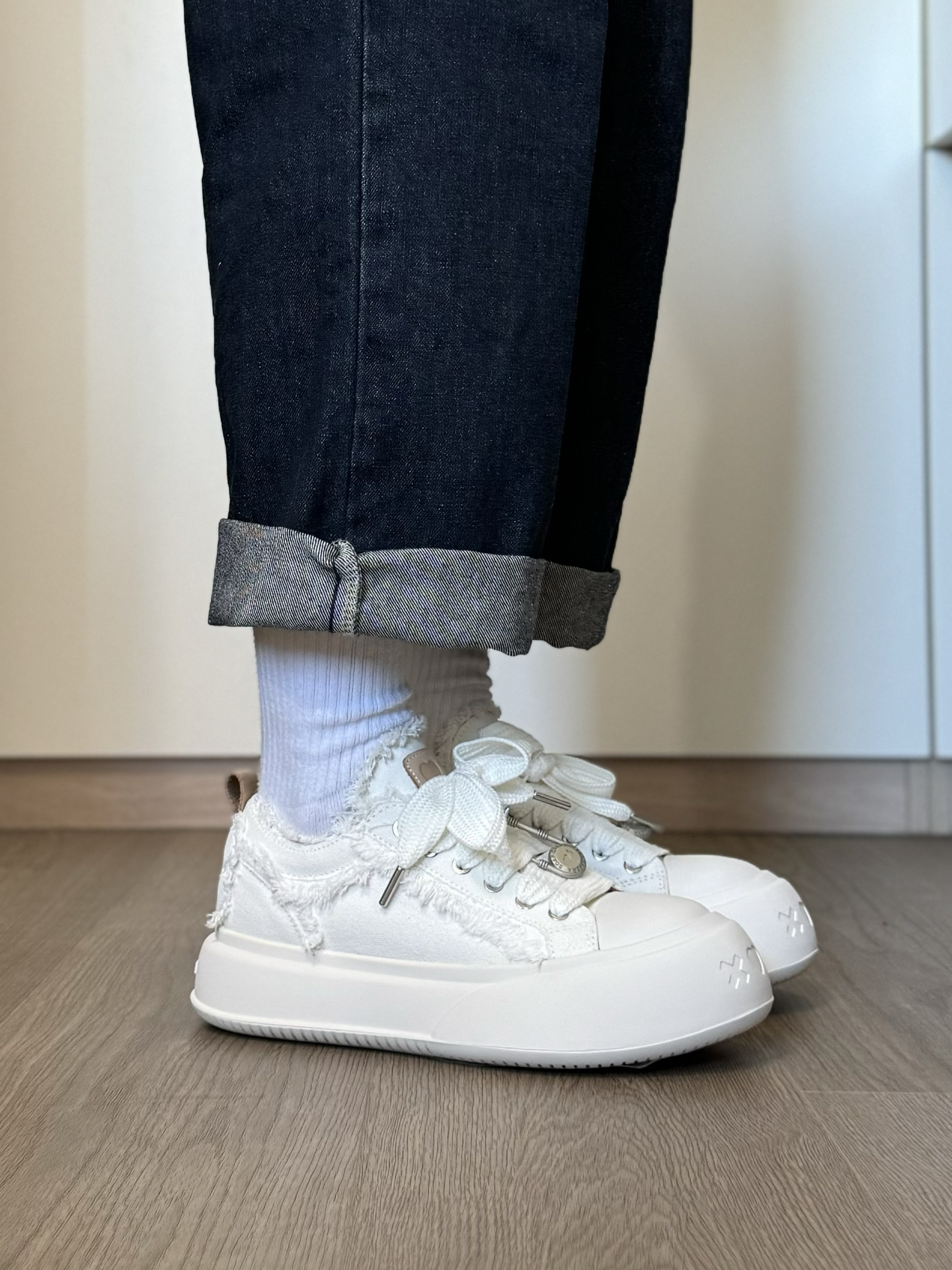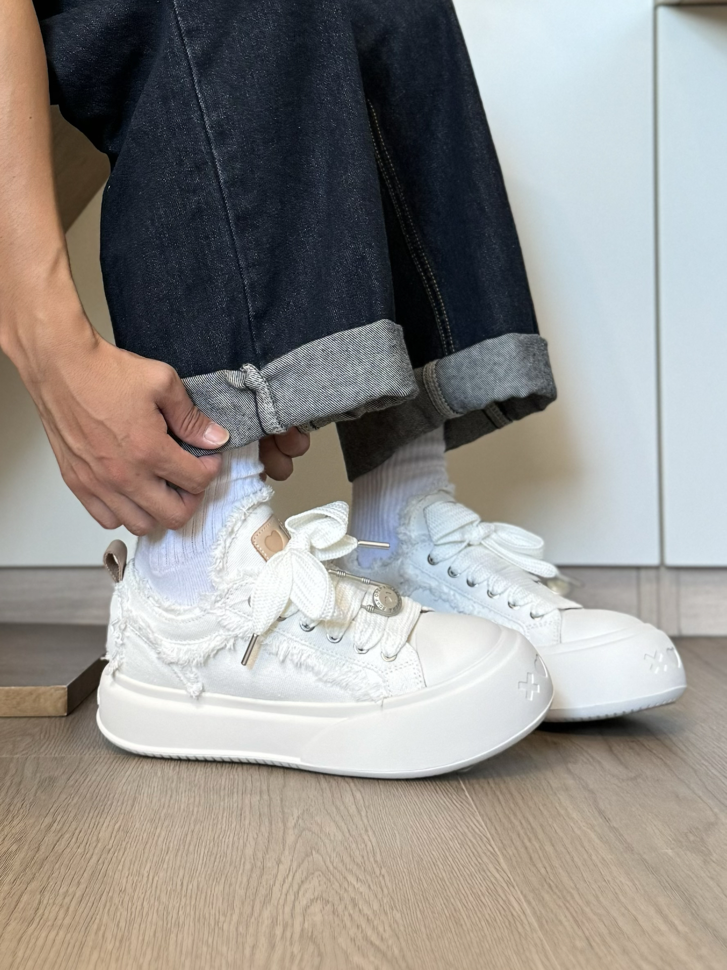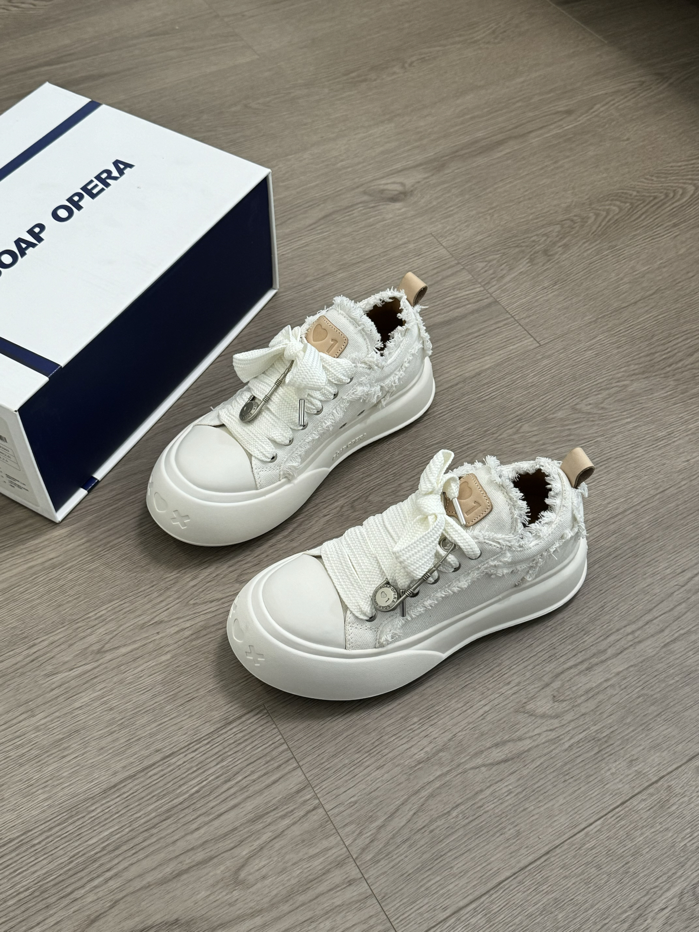 分享一双最近整理鞋柜 看到的小众但很帅的 SOAP OPERA 厚底帆布鞋~ 纯白的配色 加上侧面的流苏点缀 层次感蛮丰富的 而且虽然看起来很大 其实穿起来还挺舒服的 因为里面鞋垫很软很厚 上脚我觉得可以搭配 一些原色的美式牛仔裤 或者偏宽松的休闲裤 都挺帅的 关键是很显身高 大概有5cm左右吧 #美鞋也能暴走一整夏 #潮男鞋柜很难不爱 #穿这双回头率超高 #一种很新的秀鞋方式 #SOAPOP...