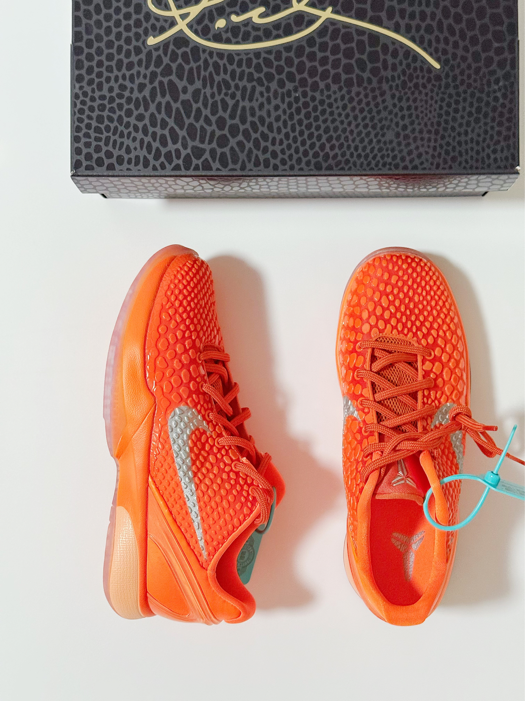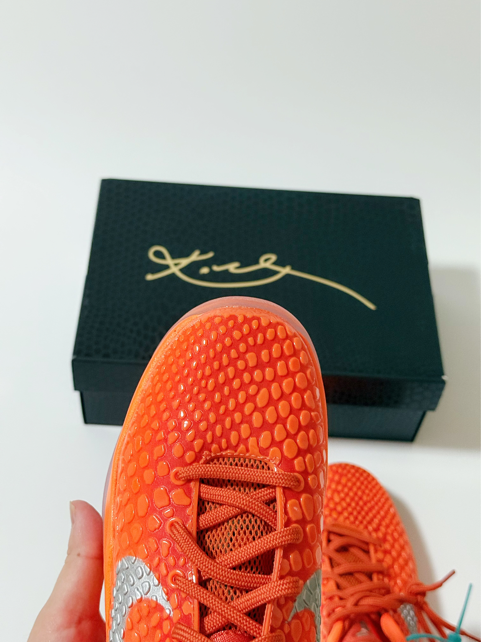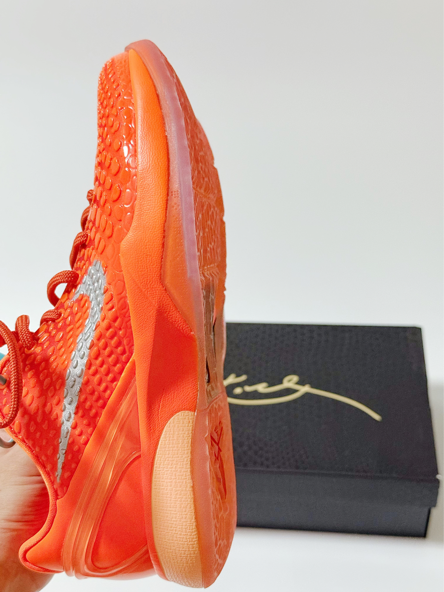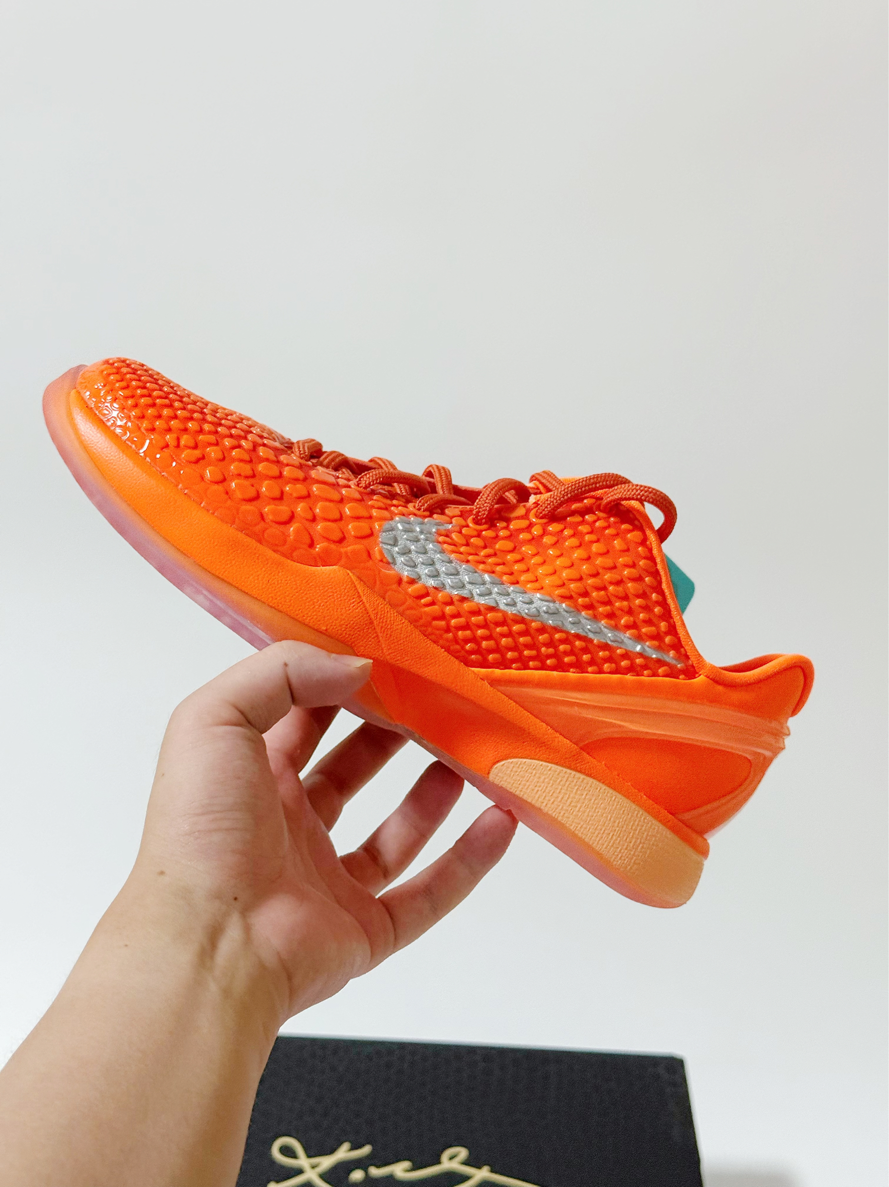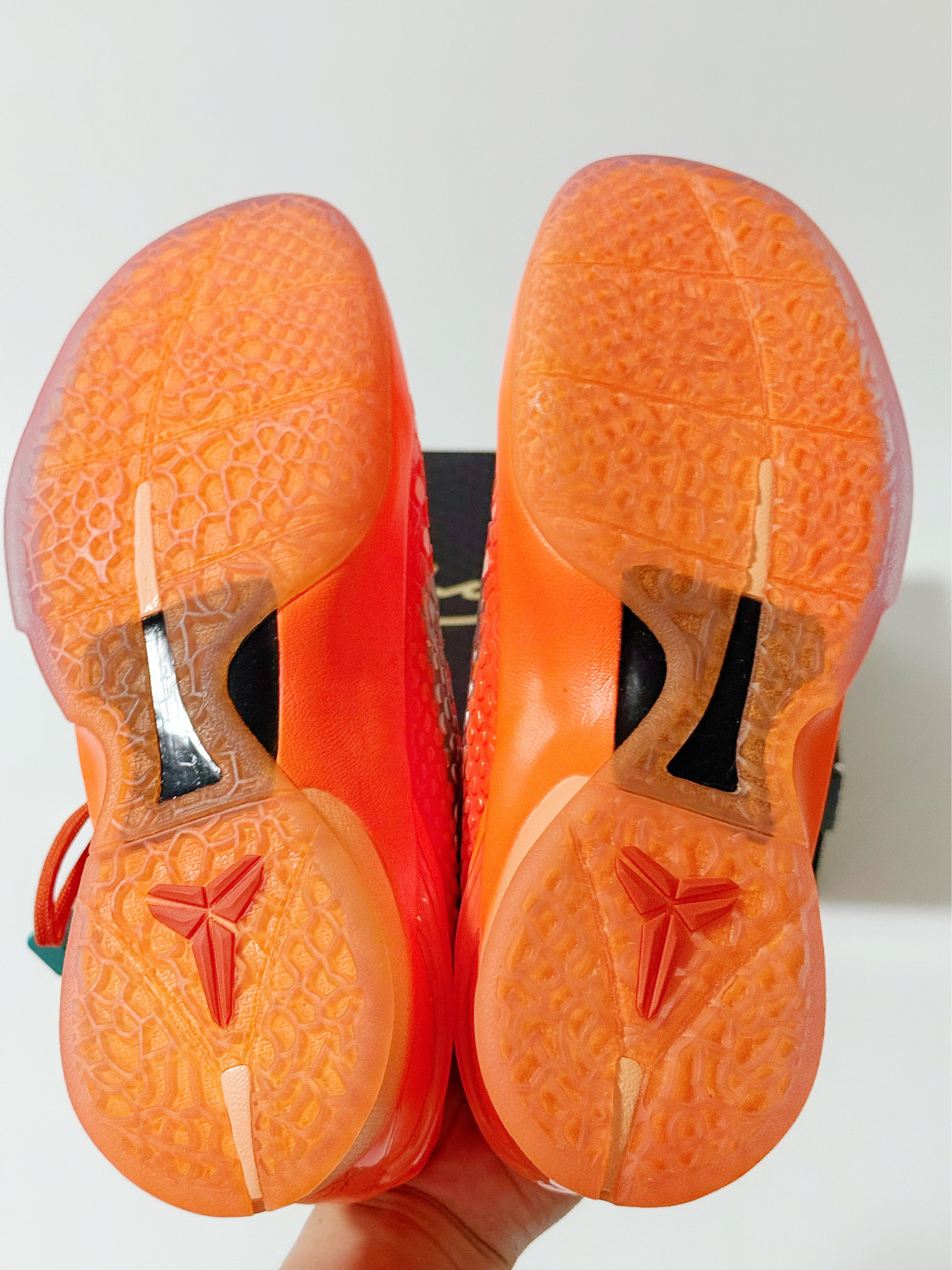 🍊:Kobe 6 暴力橙 GS版本(个人40尺码 成人鞋子太贵😂 就入手的大童) 大童和成人版本的最大区别应该就是配置了 平常也不打球 普通款应该够我穿了