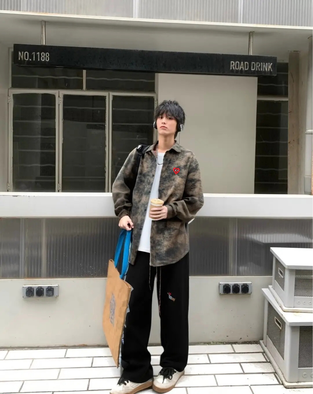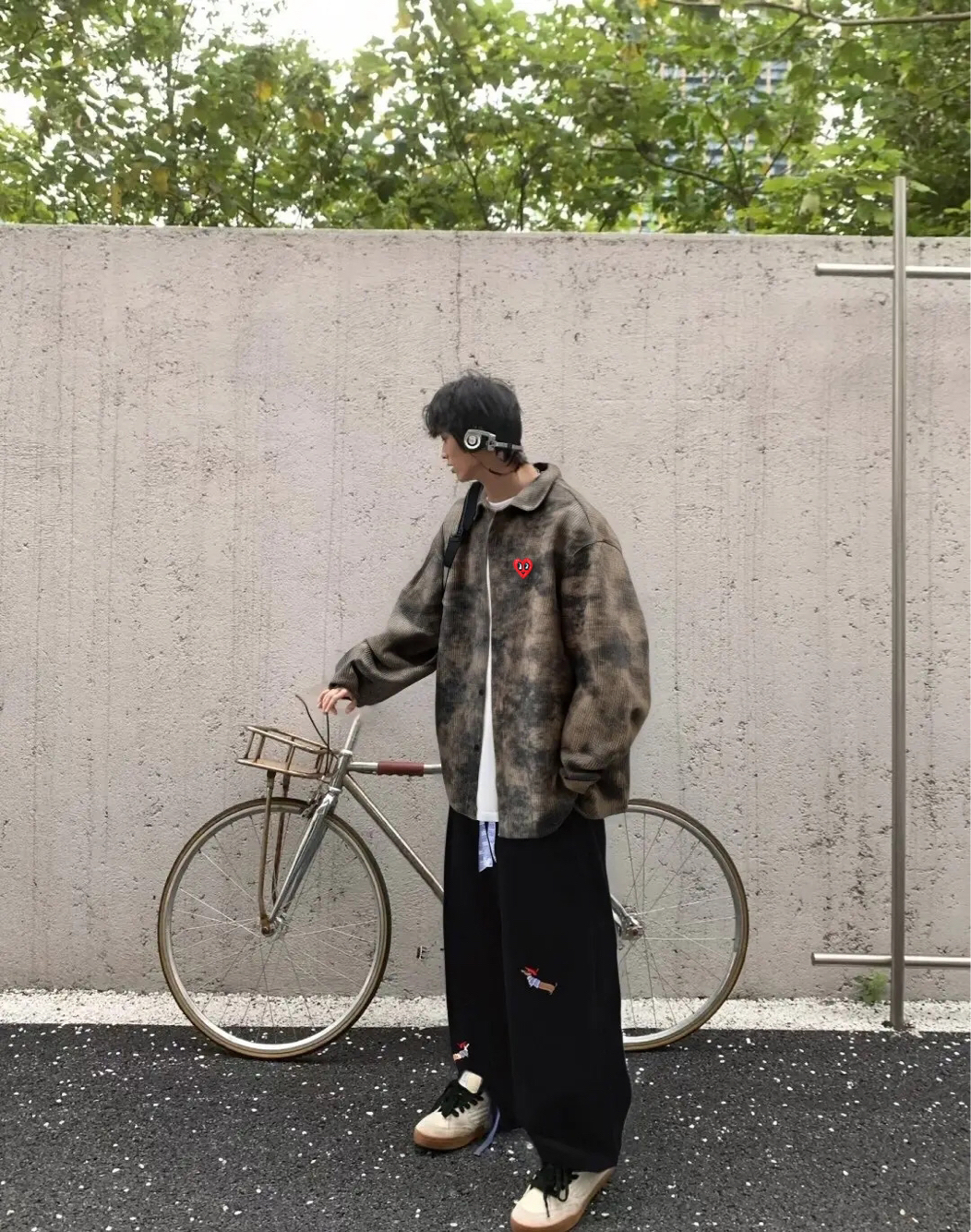 来自查尔斯桃心的扎染陈涵,穿上就自带复古感。裤子搭配一条黑色牛仔裤,日常通勤休闲都很适合,男生女生都可以驾驭住