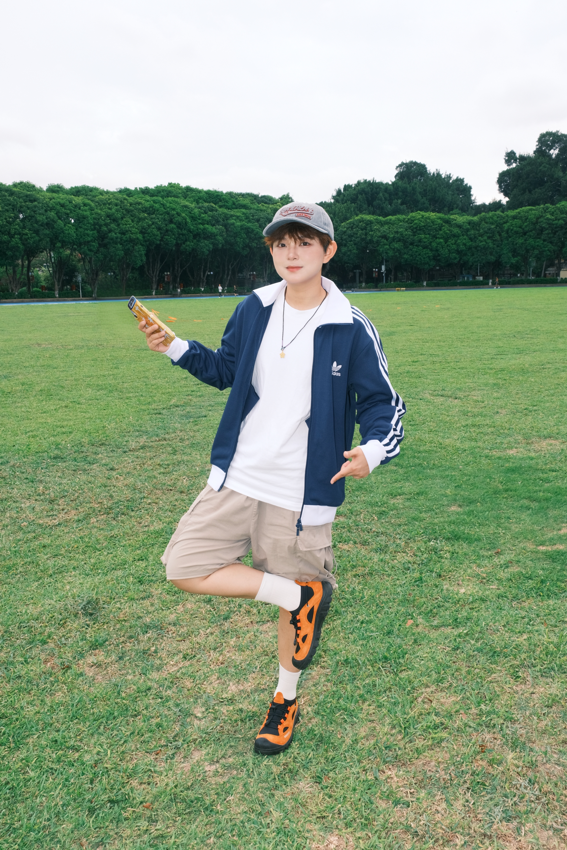 街头松弛感穿搭🍃 主打一个随性又好看 家人们!分享一套超绝的街头穿搭👇 藏青色复古外套+白T,清爽又有范儿~ 卡其短裤一穿,配上白袜和撞色运动鞋👟 休闲感拉满✨ 往草地上一坐、一撒欢,随性又自在,街头感这不就拿捏了嘛!日常出街这么穿,舒服又好看,谁懂这种松弛感啊🥳 (ps:帽子一戴,潮流感up,主打一个轻松出片📸 )