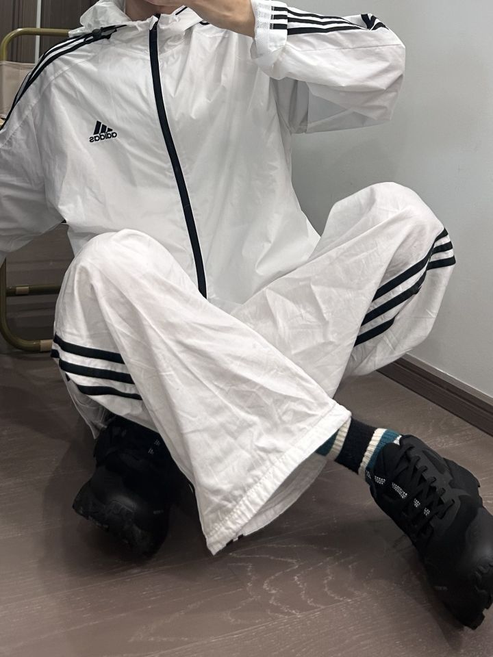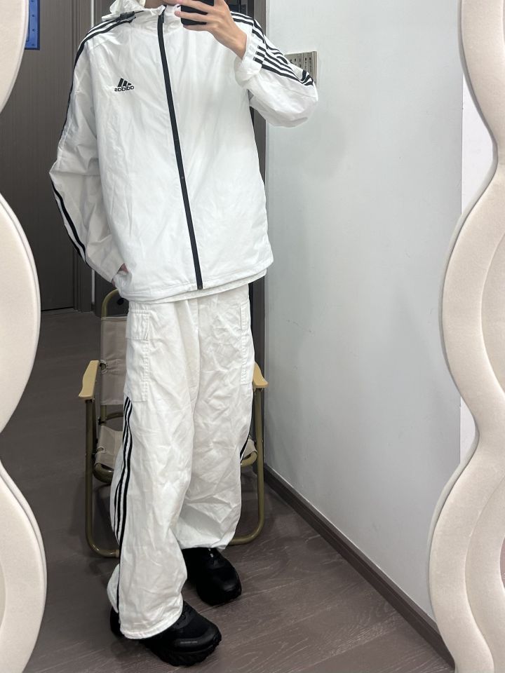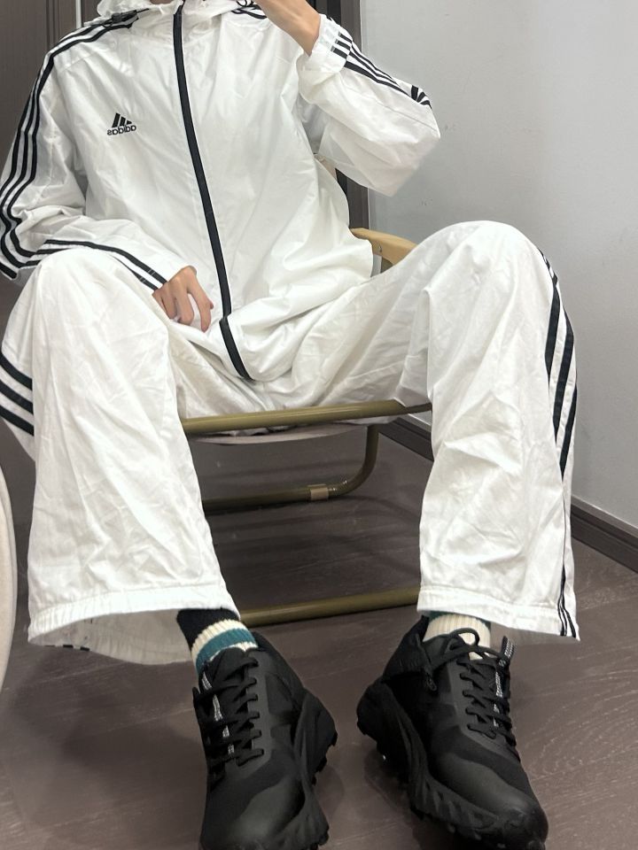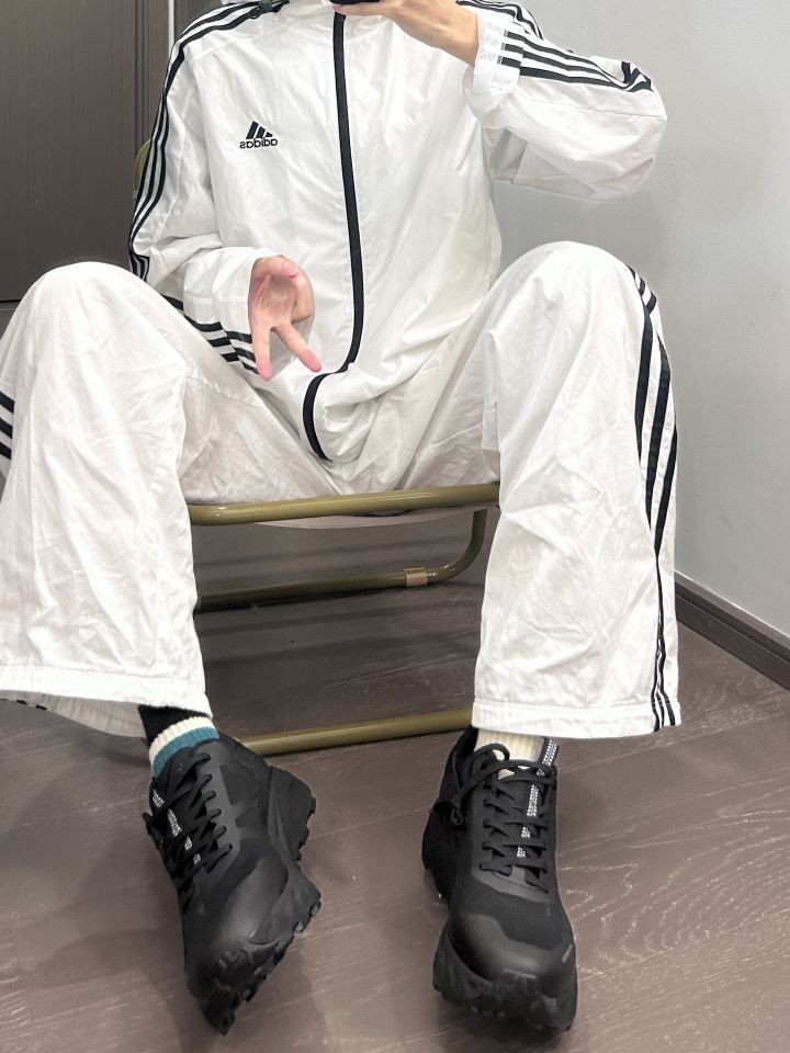 👕: adidas originals 防晒衣 👖: adidas originals 条纹裤 👟: PELLIOT 溯溪鞋 上身一件白色的防晒衣 下身搭配一条白色的条纹裤 再穿一双黑色的溯溪鞋 白色的一身看着就很冰冰凉凉 就很适合到户外玩水诶