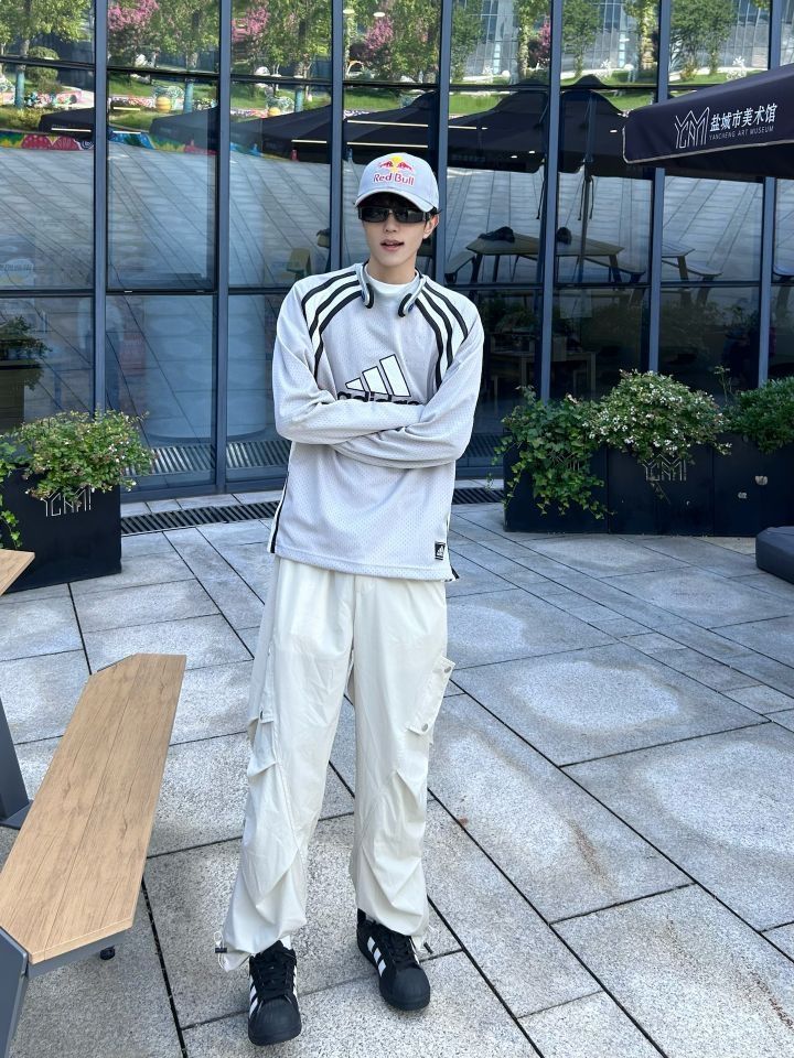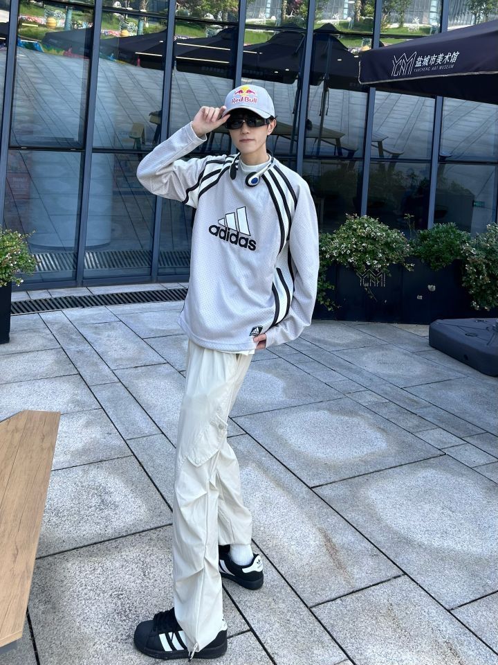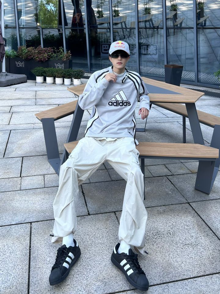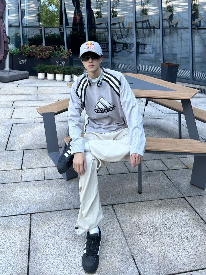 长袖get一下✅ 今年的夏天全国各地足球文化火爆 这才发现足球球衣是真的帅啊 长袖保证不会太冷 身上又是各种透气的小眼 出汗也不怕衣服一拧都是水啦 上身一件灰色阿迪球衣 下身搭配一条杏色休闲裤 再穿一双黑色的贝壳头 夏末初秋的足球小子来啦