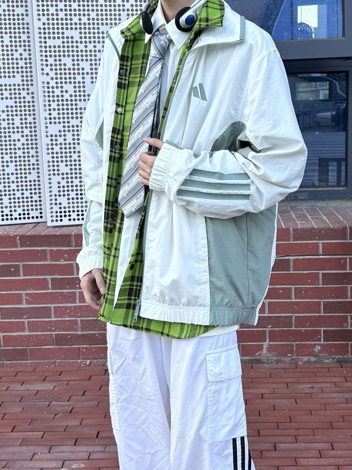 小白初步提升穿搭能力 那肯定绕不开叠穿啦,尤其是到了春秋季 真的很凸显会不会穿 叠穿的基本思路就是先从色彩选择上啦 上身一件白绿色拼接的外套 内搭一件绿色格子衬衫 下身搭配一条白色的条纹裤 再穿一双黑色的贝壳头 黑白搭配,看起来超有活力少年感 多件衣服也可以很适应秋天的温度多变 降温的时候衣服都拉起来 升温了脱一两件也很酷 迫不及待迎接秋天啦