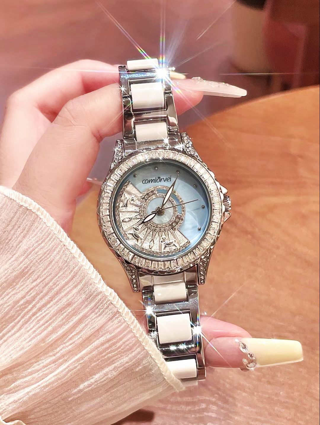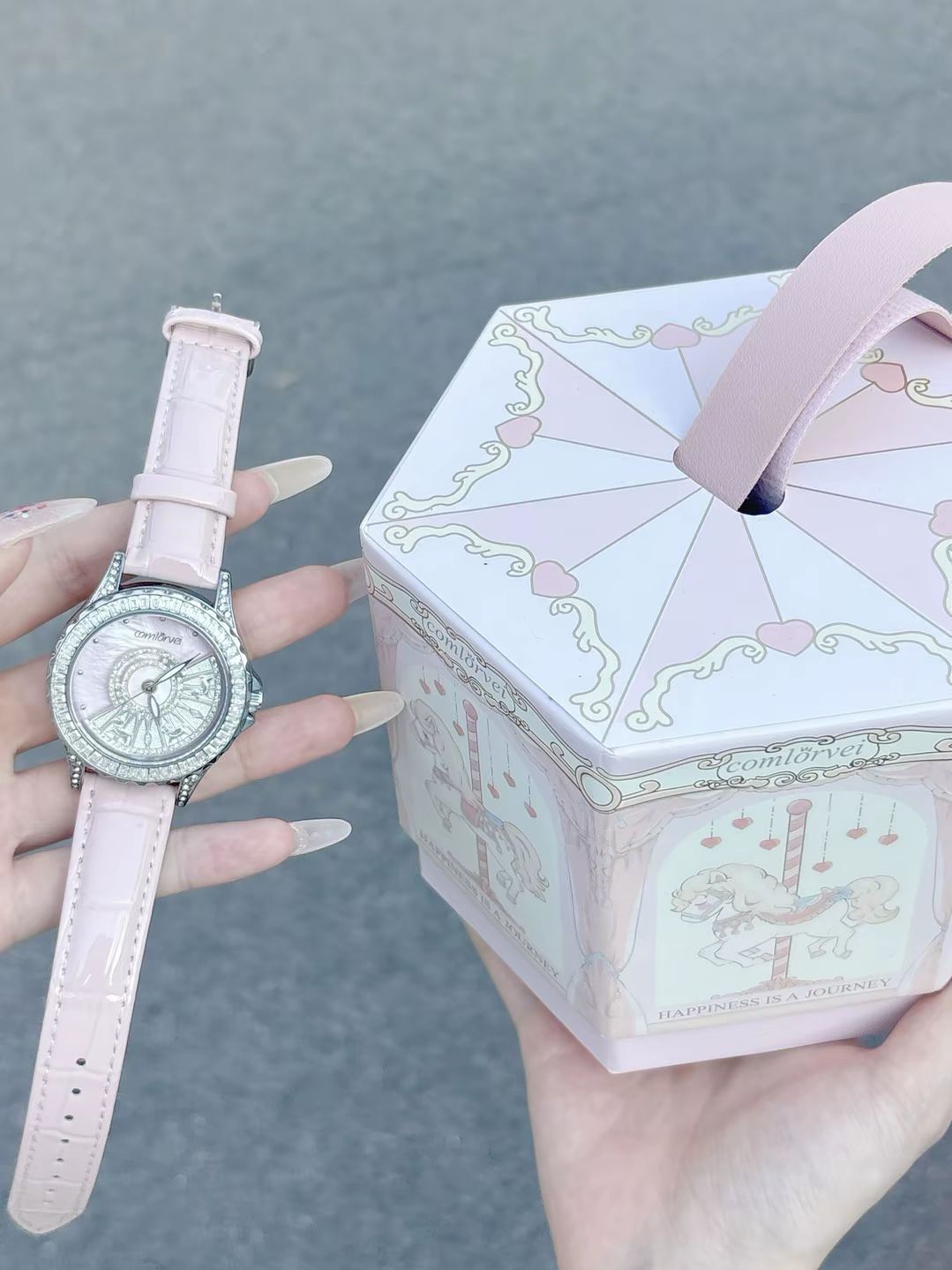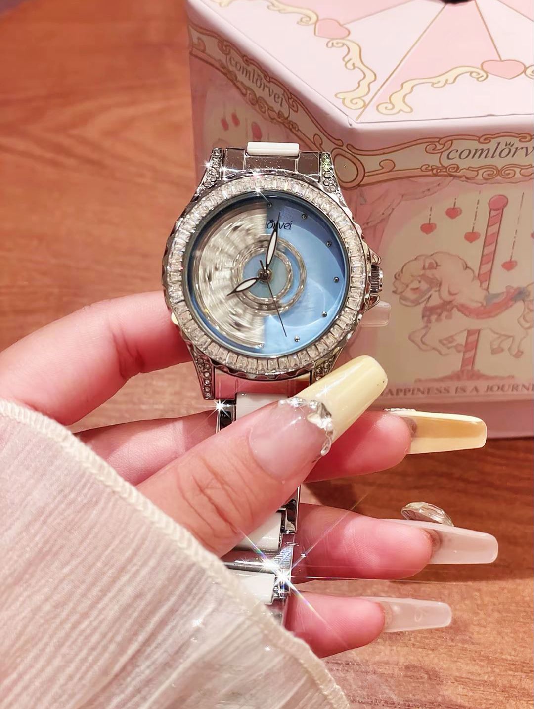 本篇笔记关联了COMLORVEI/康洛薇 旋转木马时来运转镶钻高级感小众设计优雅时尚贝母表盘防水石英女士手表 蓝色等商品,为用户提供真实的使用体验和购买参考。