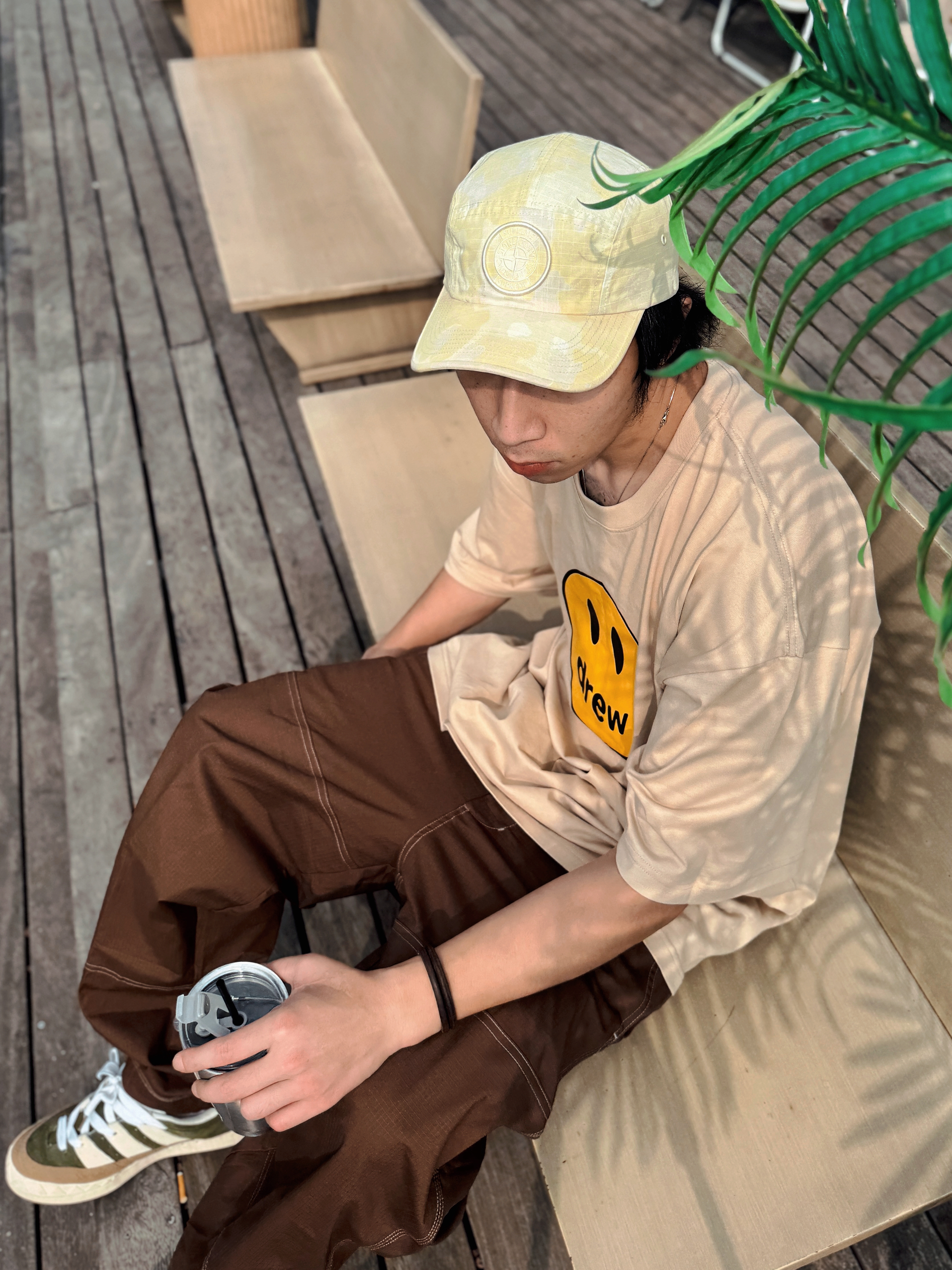 🌤️ 182 丨 68kg 丶喜欢随性休闲 在快节奏的都市生活中 舒适和时尚并重的穿搭风格就是中意 今日份休闲穿搭 🧢米色棒球帽 迷彩渐变米棒球帽 给整体造型增添一份随性和活力 还能偷懒不处理头发不是 👕米色笑脸T恤 米色的笑脸T恤,不失趣味 积极向上的生活态度体现在笑脸上😊 宽松的版型夏日自在随性🤏 👖棕色工装裤 棕色工装裤是休闲风格的关键单品 耐穿而且好搭 宽松的裤型舒适自如 👟棕绿板鞋 一...
