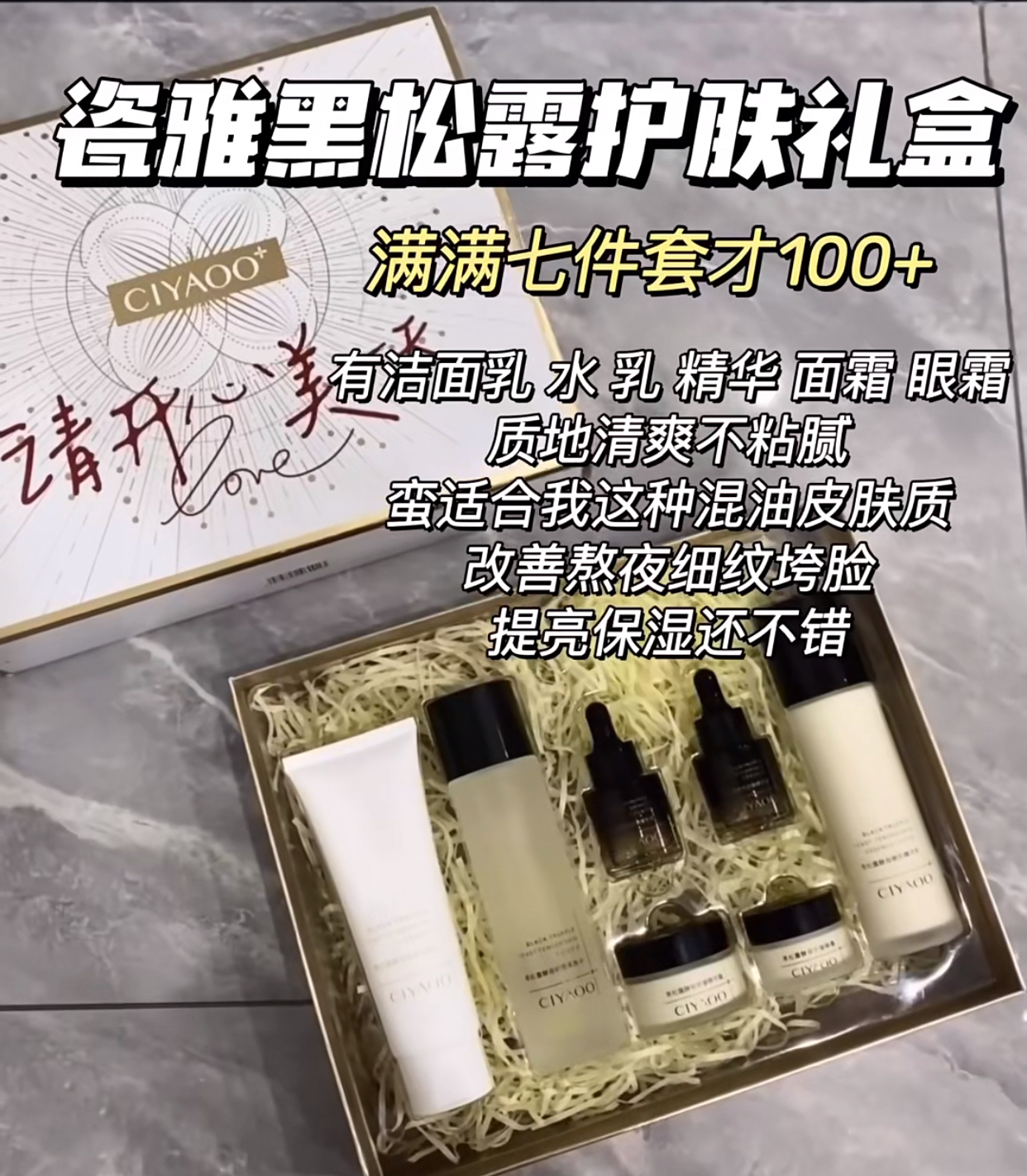 距离8月29号的七夕情人节不远了 尤其是送给自家老婆的 那么要赶紧准备上了! 💯 这几套情人节礼盒都很适合送给女朋友 无论是哪一款 都很拿得出手!尤其还有贺卡~ 还没准备好的男同志们快抄作业吧! 💰118瓷雅黑松露护肤套盒,整整7件套,改善熬夜细纹 垮脸,提亮补水保湿不错哦 #把七夕妆进惊喜里 #直击女友的七夕礼物 #七夕仪式感跟我学 #七夕美美约会妆 #这夏护肤全拿捏