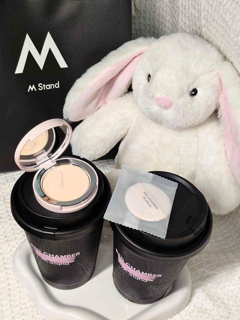 咖啡☕基础,联名就不基础 粉饼太多用不完,又想试试更多的 . Rc这个和mstand联名的水晶粉饼 刚好是4g的净含量 还是适合我的色号那不得赶紧薅 很喜欢这种带亮闪闪的粉饼 尤其这块还分了区,居然可以这样设计👍🏻