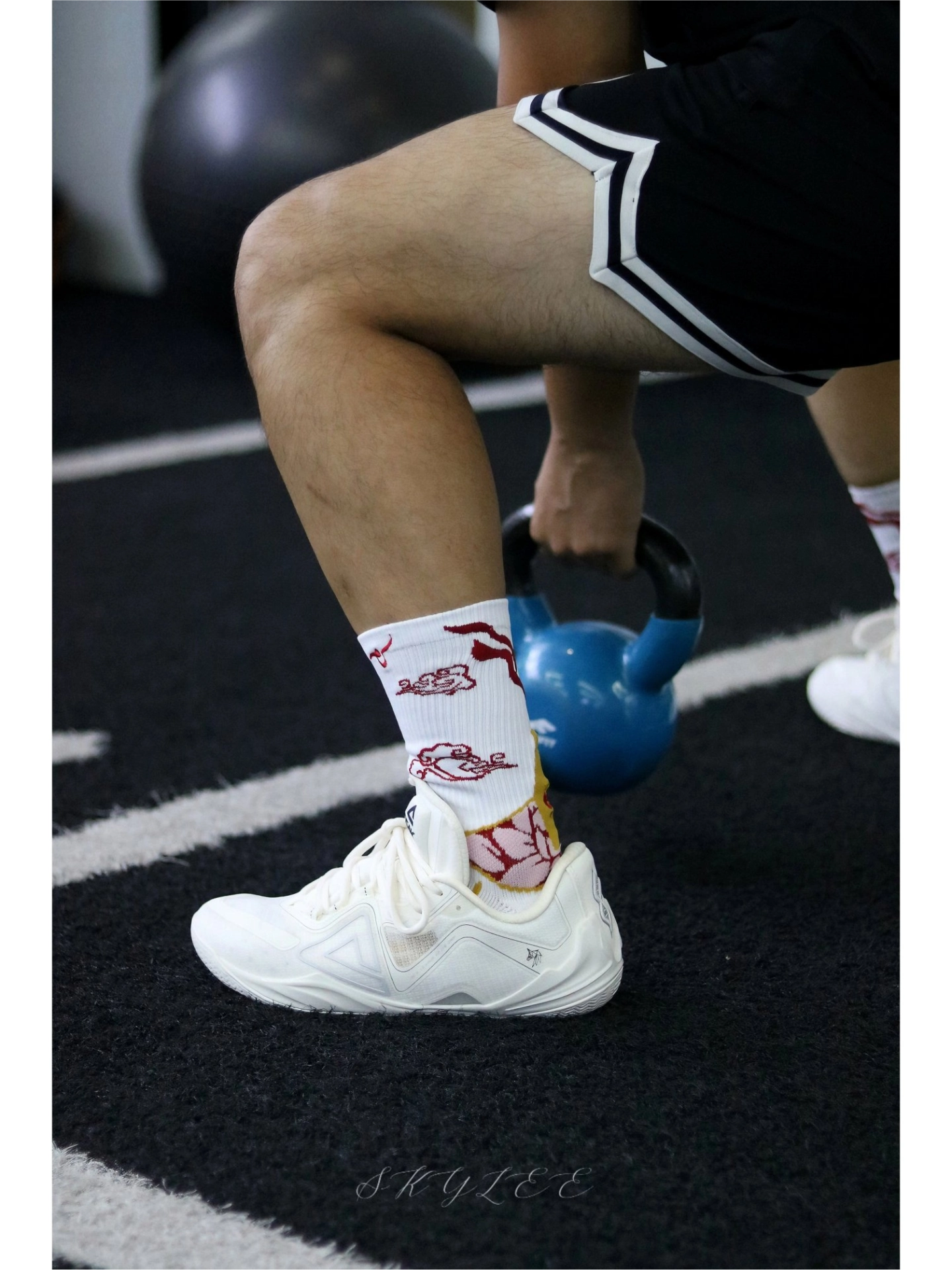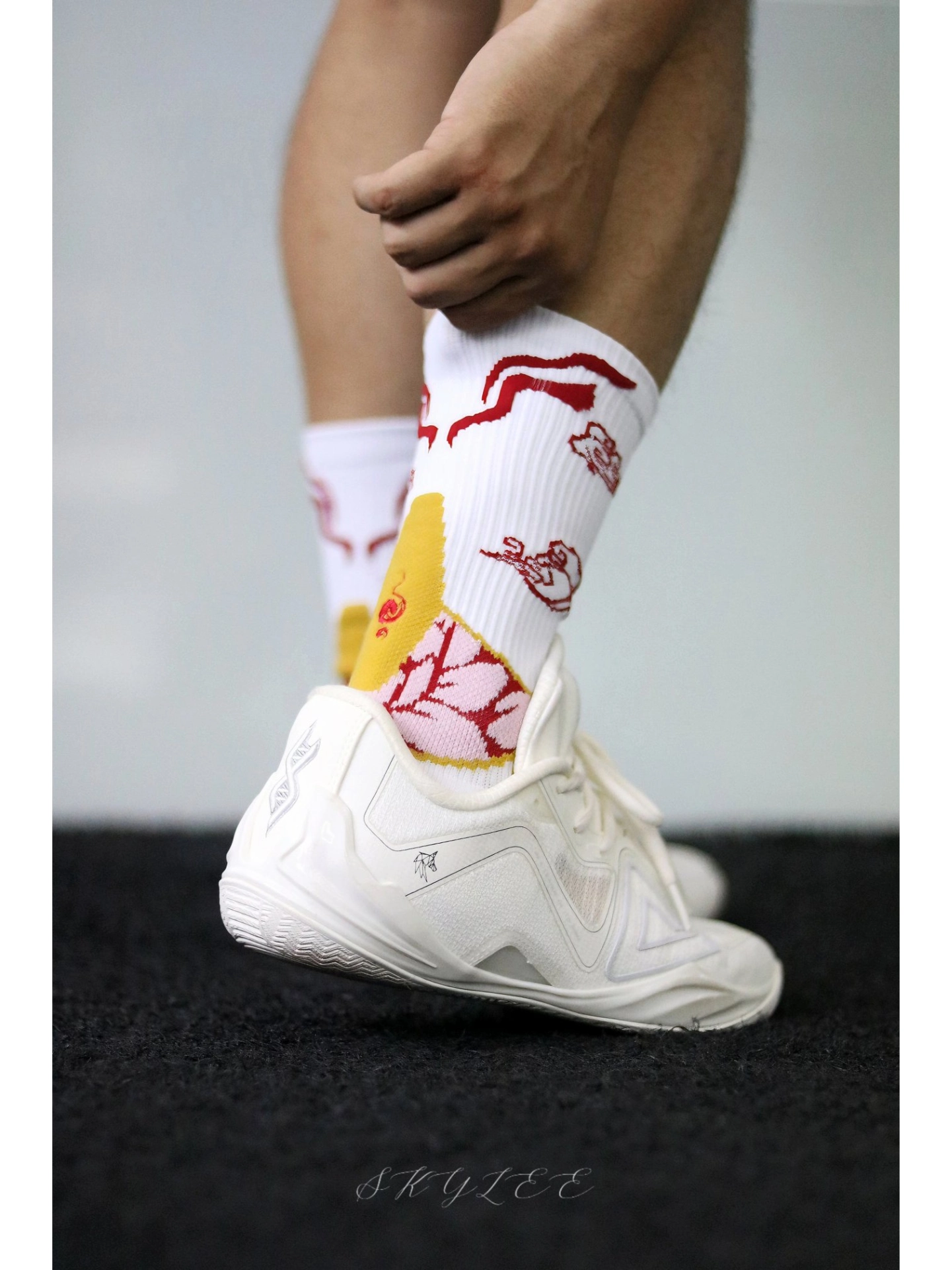 兄弟们,脚踩风火轮是什么感觉,今天维动帮我实现了,最近新出的哪吒主题的球袜细节太丰富了,白色的基础色搭配上红金两种哪吒的本命色,确实给人一种能量满满的感觉😎 不光有防滑纱,并且袜口弹性很棒,上脚也是很舒适,搭配白色系的球鞋或者训练鞋简直帅爆🤭 #白袜子体育生 #维动哪吒篮球袜 #维动新配色袜子 #有挖到了宝藏篮球袜 #球鞋坦白局