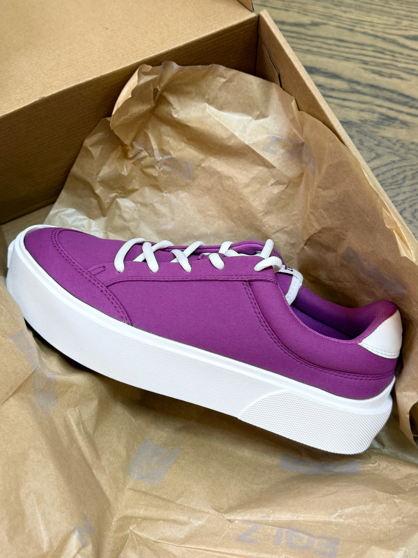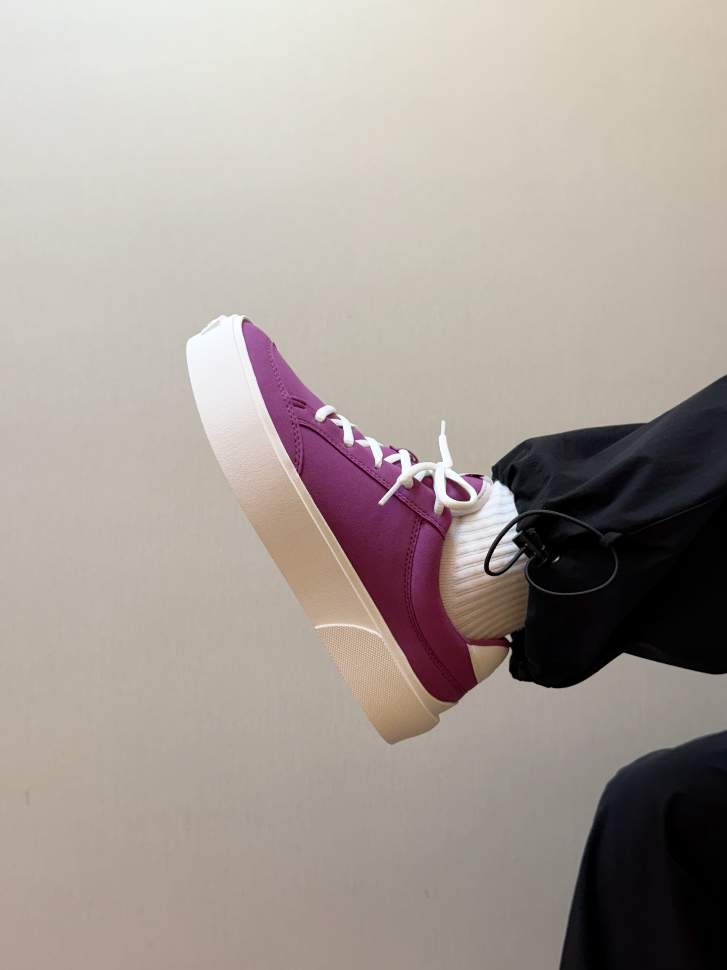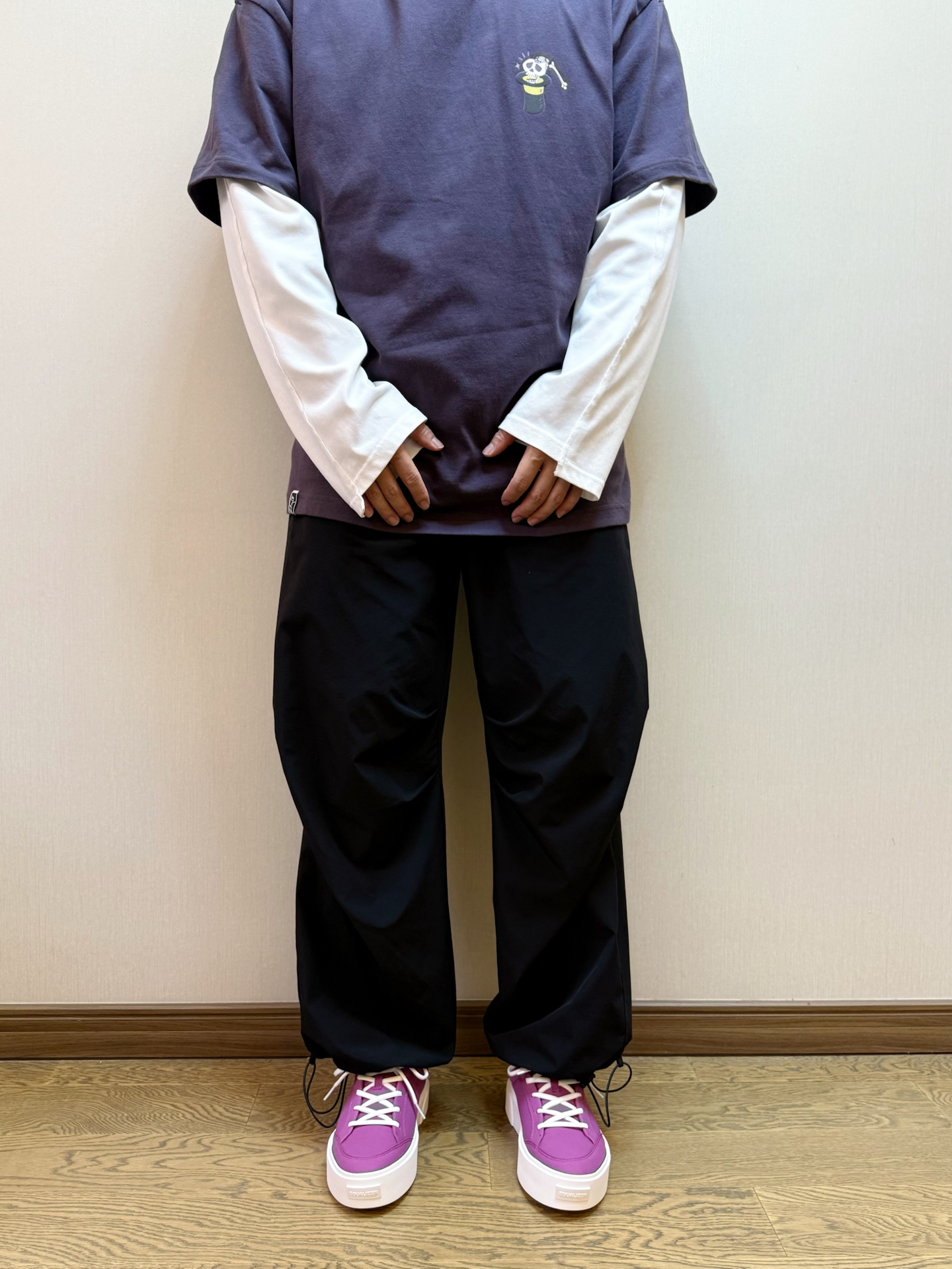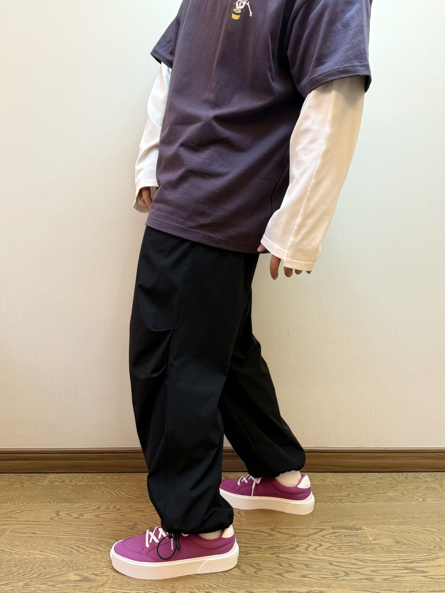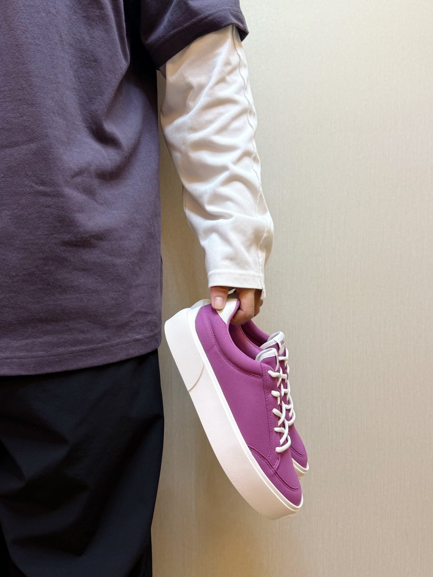 #性价比潮鞋推荐 最近又开始入坑到帆布鞋啦 不得不提及一下 #EQLZ EQUALIZER Fault 23 反硫化错版无中生有板鞋👟 整体脚感也还不错😌不累脚不板脚 脚胖可以买大一些~ 紫色💜的短袖叠穿一个白色长袖 配上一条伞兵裤👖 鞋子的紫色和衣服也形成撞色👀这一套你们觉得怎么样⁉️#今日份开箱宝藏鞋子 #EQLZ板鞋 #开箱心动好鞋 #拿捏复古松弛感