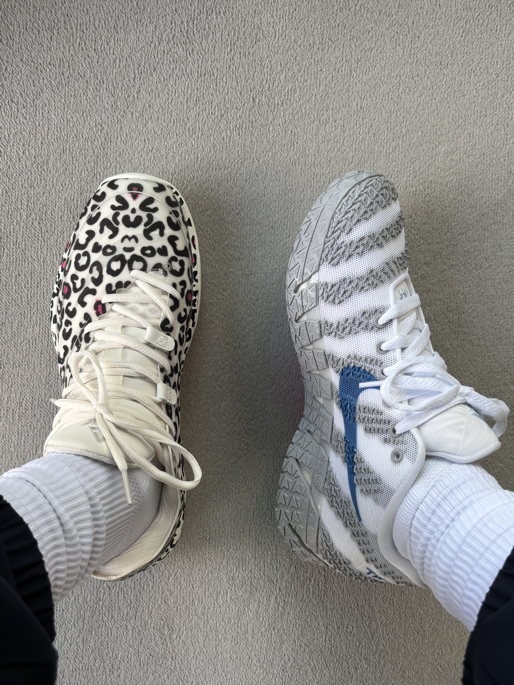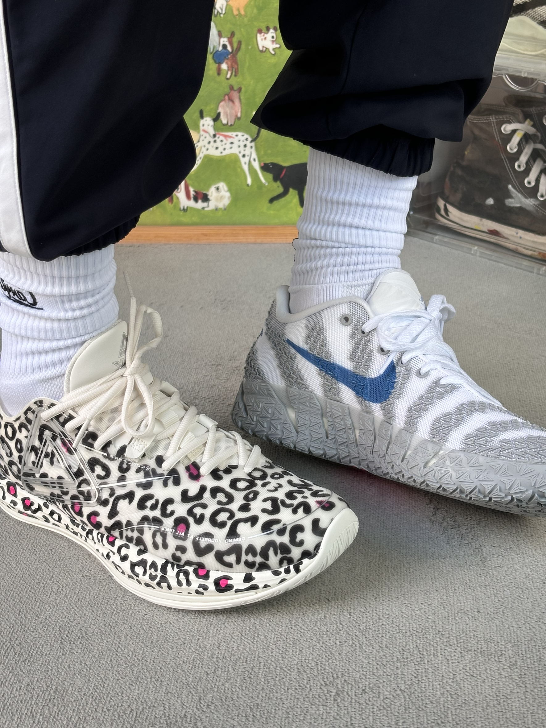 今天上脚的两双颜值很夸张的实战好鞋 轻灵3和ja3 都是第三代颜值都很张扬 但是我上脚以后觉得都是很好穿的实战鞋 轻灵3我觉得唯一的缺点就是不耐磨 ja3唯一的缺点是重心太高防侧翻很差