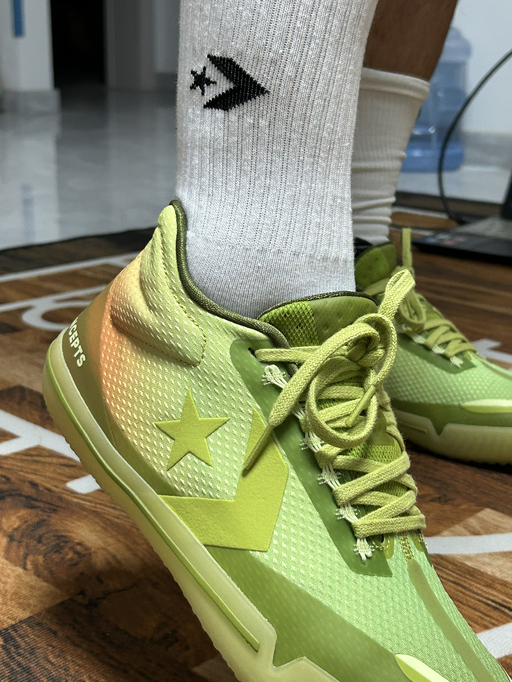 球鞋名称:匡威 All Star BB Evo(黑白色款 ) - 是否偏码:不偏码(正常脚、瘦脚按常规码数选即可;宽脚建议选大半码,能改善前掌挤脚问题 ) - 性能打分(每项满分均为10): - 包裹:8分(鞋面贴合脚型,鞋带系紧后锁脚感不错,只是鞋舌在激烈运动中偶尔会有轻微移位 ) - 缓震:7分(中底反馈属于韧弹风格,日常打球、压马路够用,追求极致缓震表现的话略有不足 ) - 抓地:8分(...