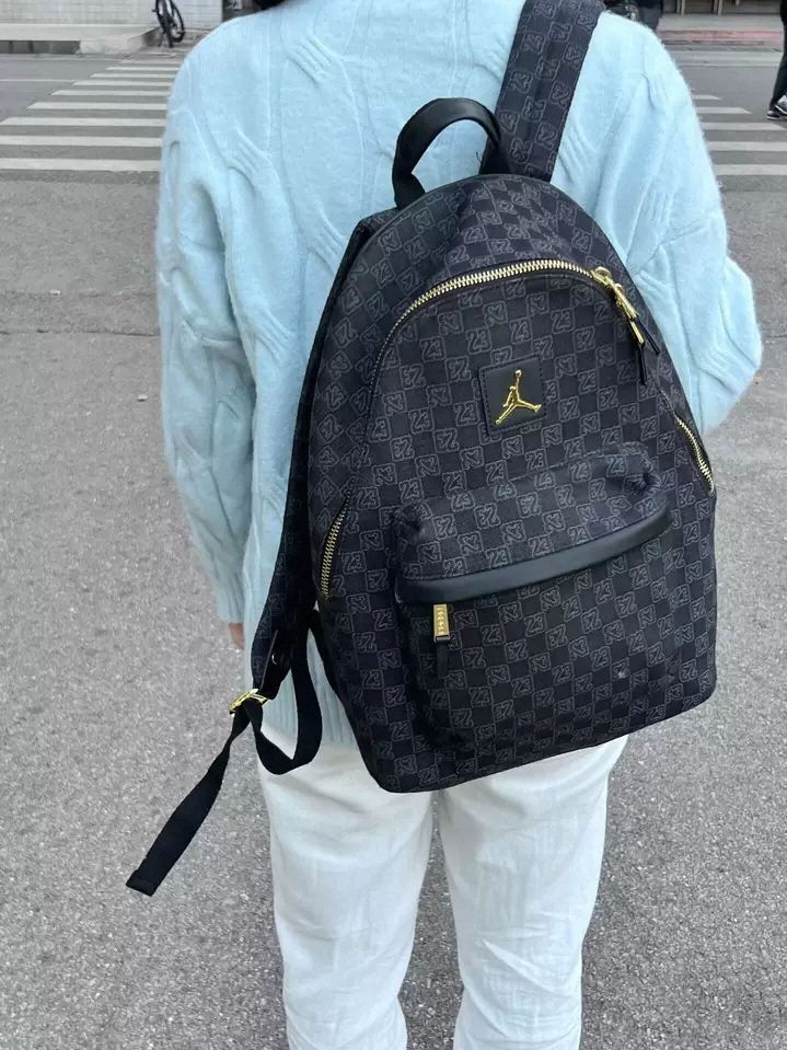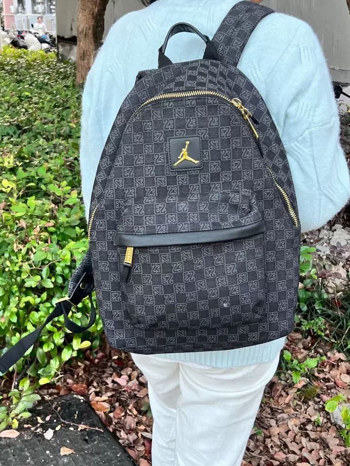 浅色系穿搭适配度拉满✨ 这个Jordan双肩包太绝啦 老花满印“23” 黑金配色自带高级感 日常上课装书本、通勤塞电脑都妥妥的 不管是街头风还是简约风,背上就很搭 出街被追着问🔗 实用又好看的包包谁不爱