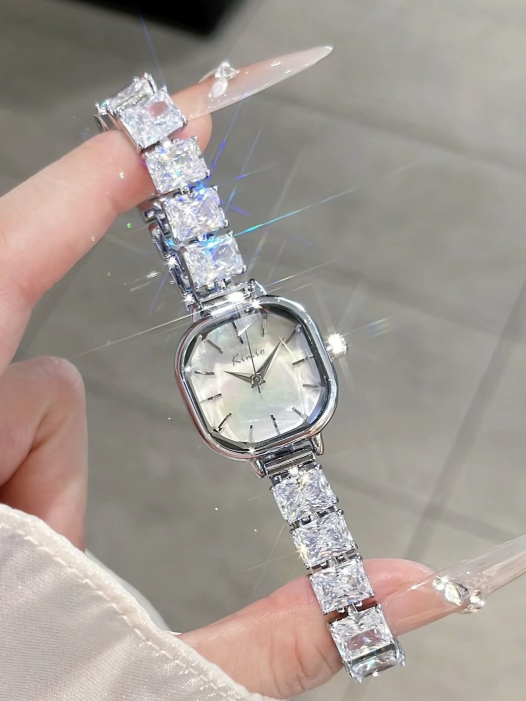 分享几只bling bling的手表~ 表盘很精致大小刚刚好 小蛮腰表带显得手腕hin细 颜色搭配的也都蛮漂亮的 白色这只比较简约适合通勤 粉色的就很甜美可以搭小裙子 祖母绿就是很提气质的那种 我觉得各有千秋大家按自己的风格选就好啦