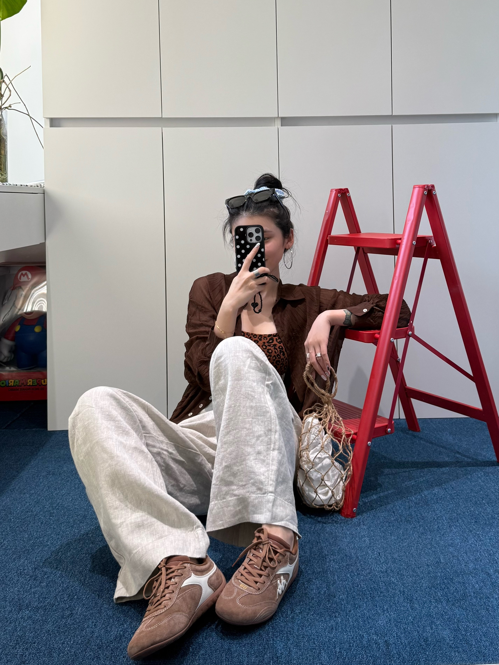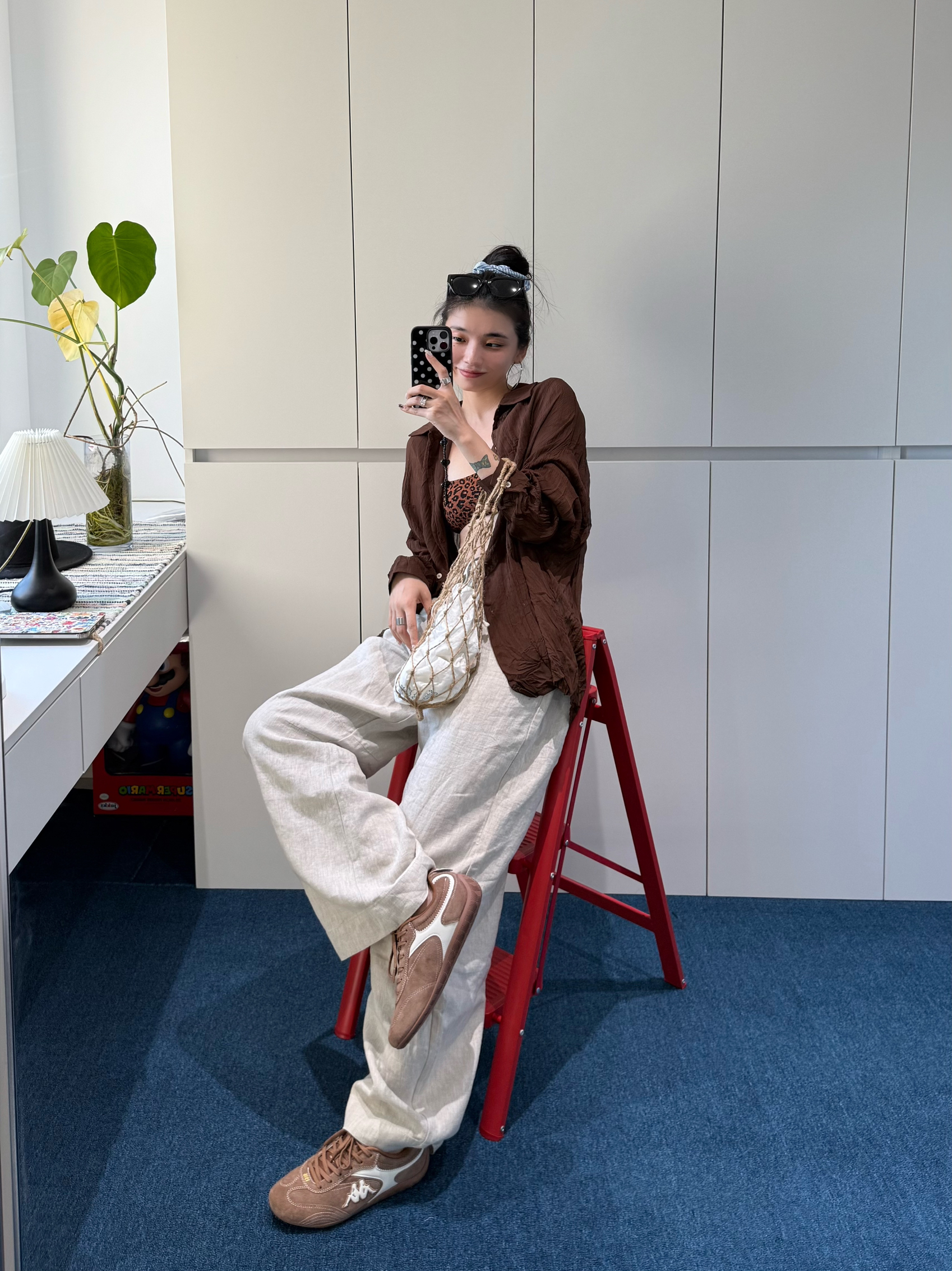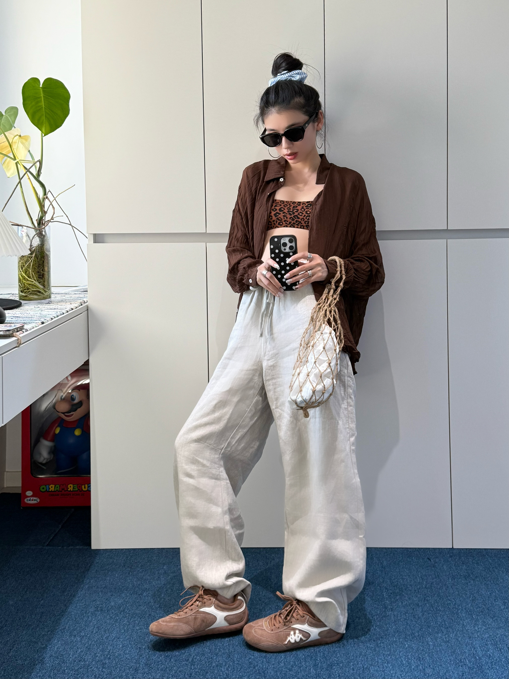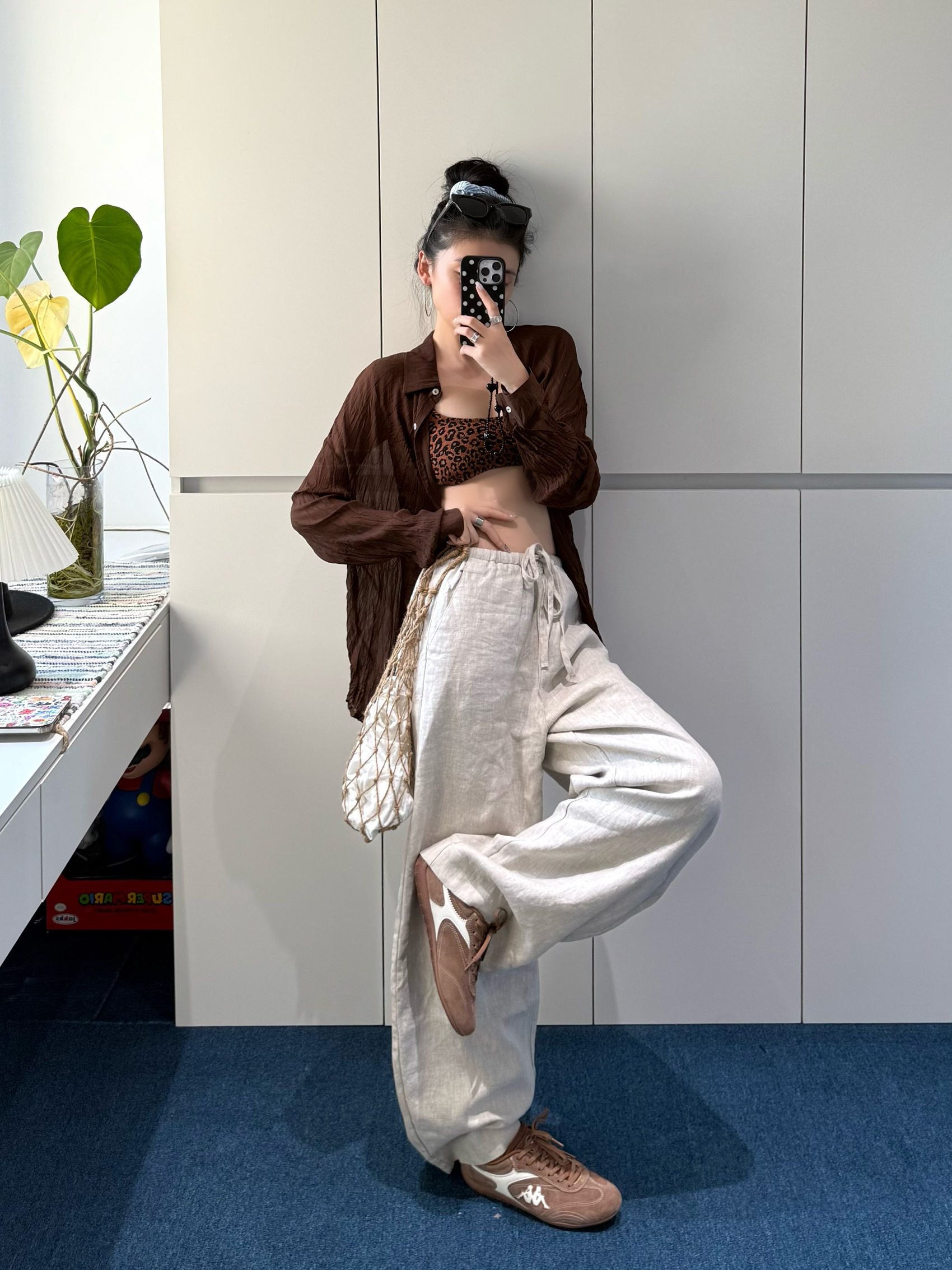 微透棕衬衫自带纹理感,和豹纹内搭碰撞,复古氛围拉满 网兜包+Kappa复古运动鞋,把街头感和复古感融合得恰到好处 每一件单拿出来都好搭,组合在一起直接时髦翻倍✨ #七夕送礼推荐