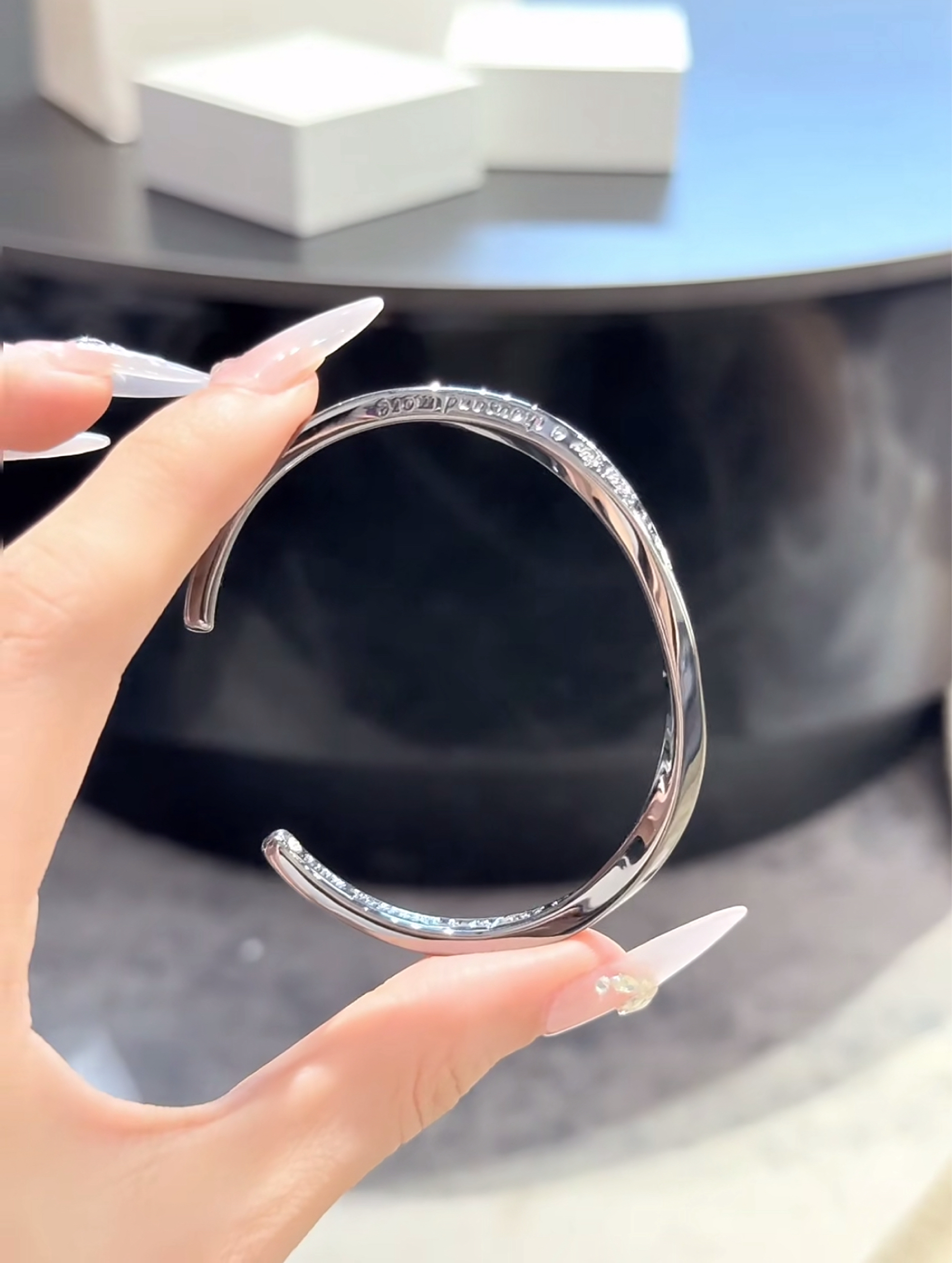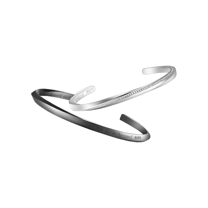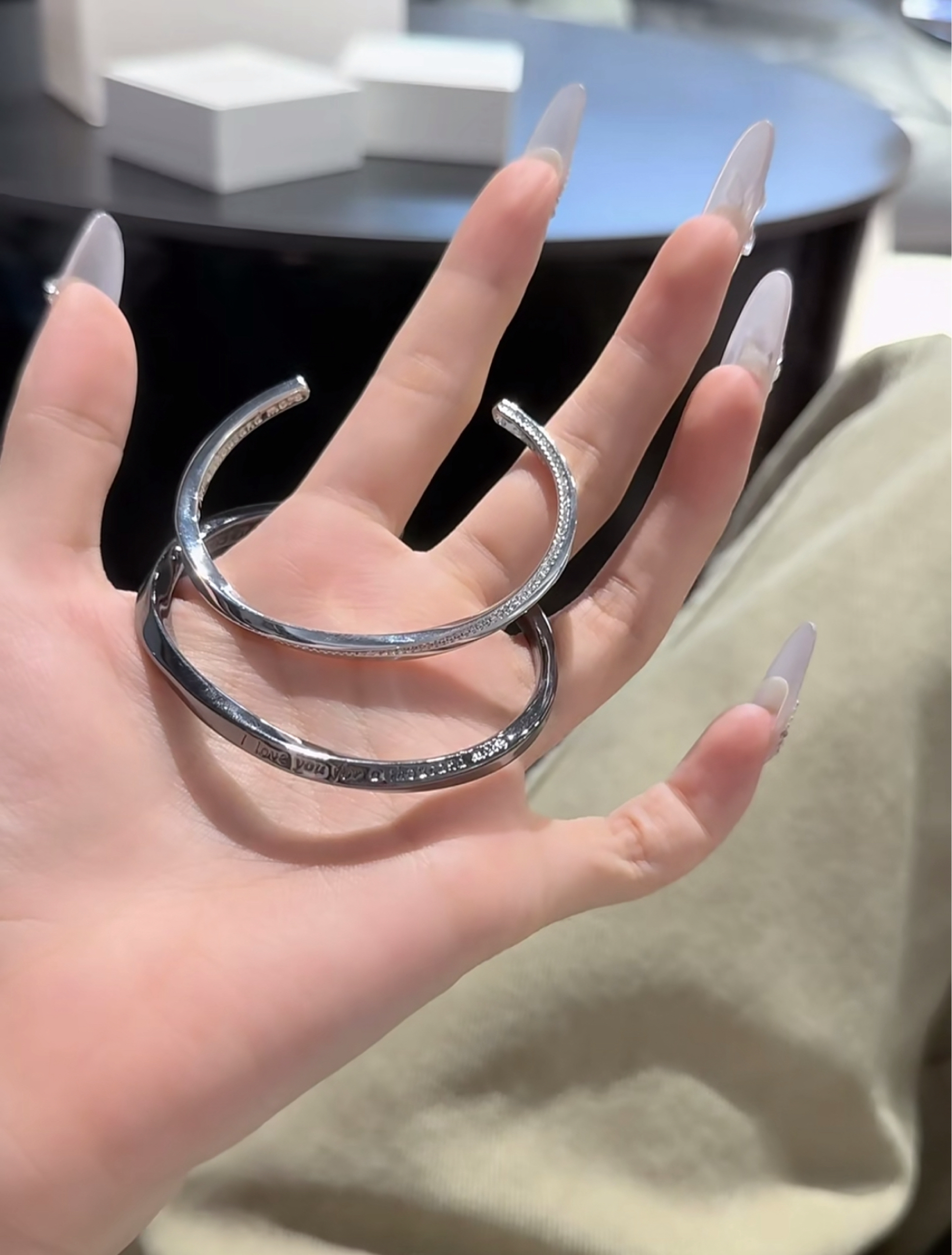 今天戴这对手镯是小CK家的镯子 在镯子上镶着细细的钻石和刻印着字 女款的是银闪闪的感觉 男款的就是亮黑色的款 还是蛮适合日常来佩戴的 平时配个吊带和T恤都是挺百搭 要是送给小姐妹或者当七夕礼物的话 都是很合适的