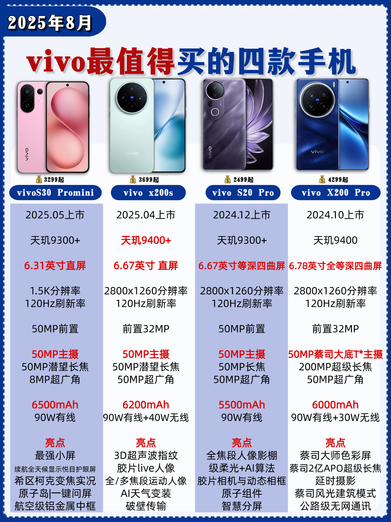 vivo凭借“性能强、拍照牛、颜值高”的优势,圈粉无数数码爱好者。品牌出新速度快得惊人,光X200系列就有5款,让人挑得眼花缭乱。别慌,今天就帮你理清vivo三大核心系列,再推荐4款最值得入手的机型,跟着买准没错! vivo三大系列定位速览 ✅X系列:影像旗舰的佼佼者,配置全面拉满,预算充足、追求极致体验的话,选它准没错。 ✅S系列:主打轻薄和自拍,颜值和拍照都很能打,日常使用性能完全够用。 ✅Y...