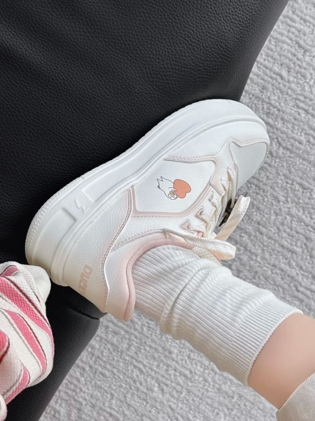 边肚和鞋眼片的小刘鸭元素,鞋子很轻👐上脚还软fufu的,暴走一天也不累脚!