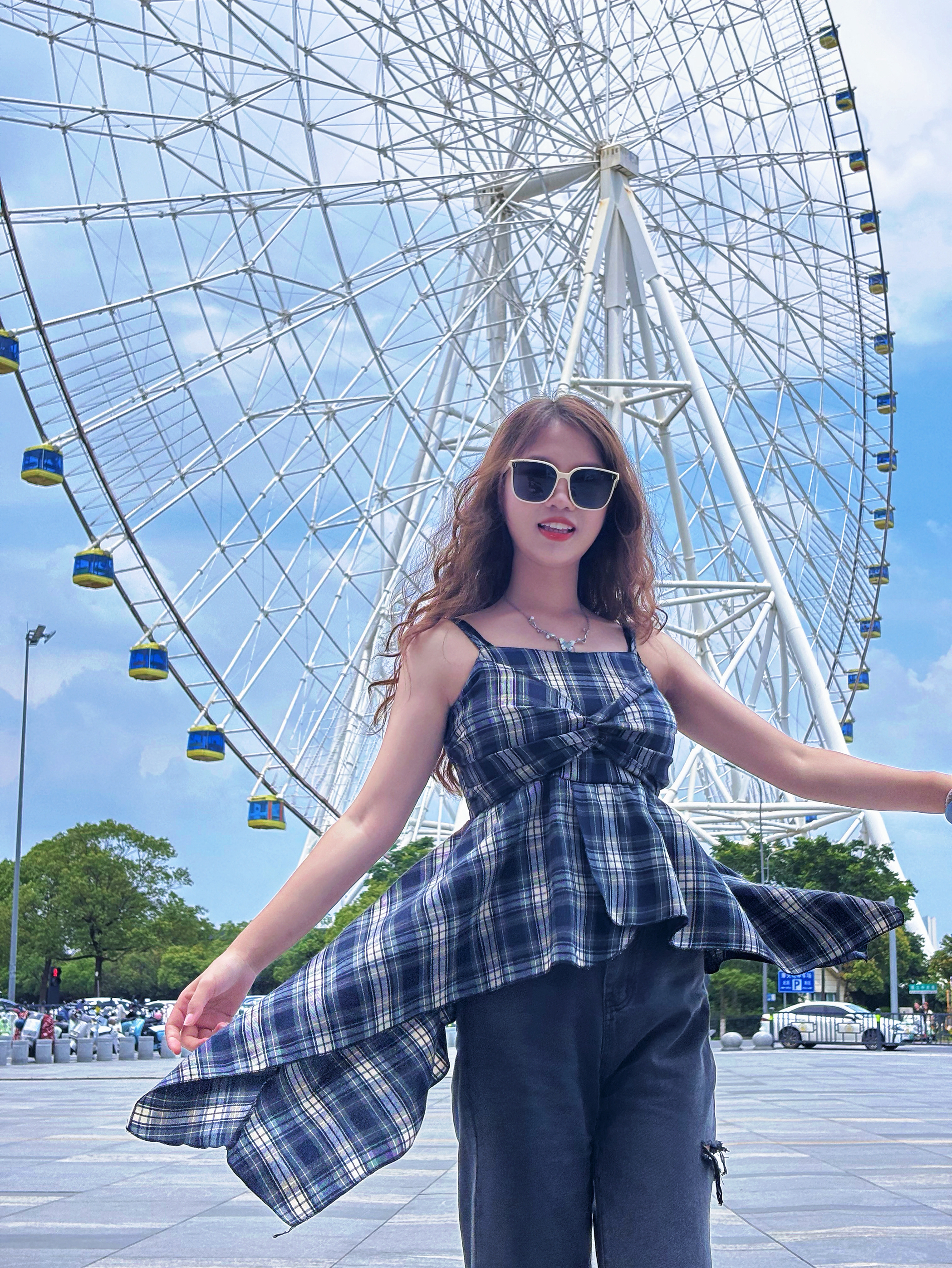 我今天的穿搭主打时尚休闲风。上身穿着一件格子吊带,它的设计独特,不对称的下摆增添了一丝随性。我在外面搭配了一件同系列的格子外搭,让整体造型更有层次感。 下身我选择了一条破洞牛仔裤,膝盖处的破洞设计展现出潮流感,同时宽松的版型让我感觉非常舒适自在。
