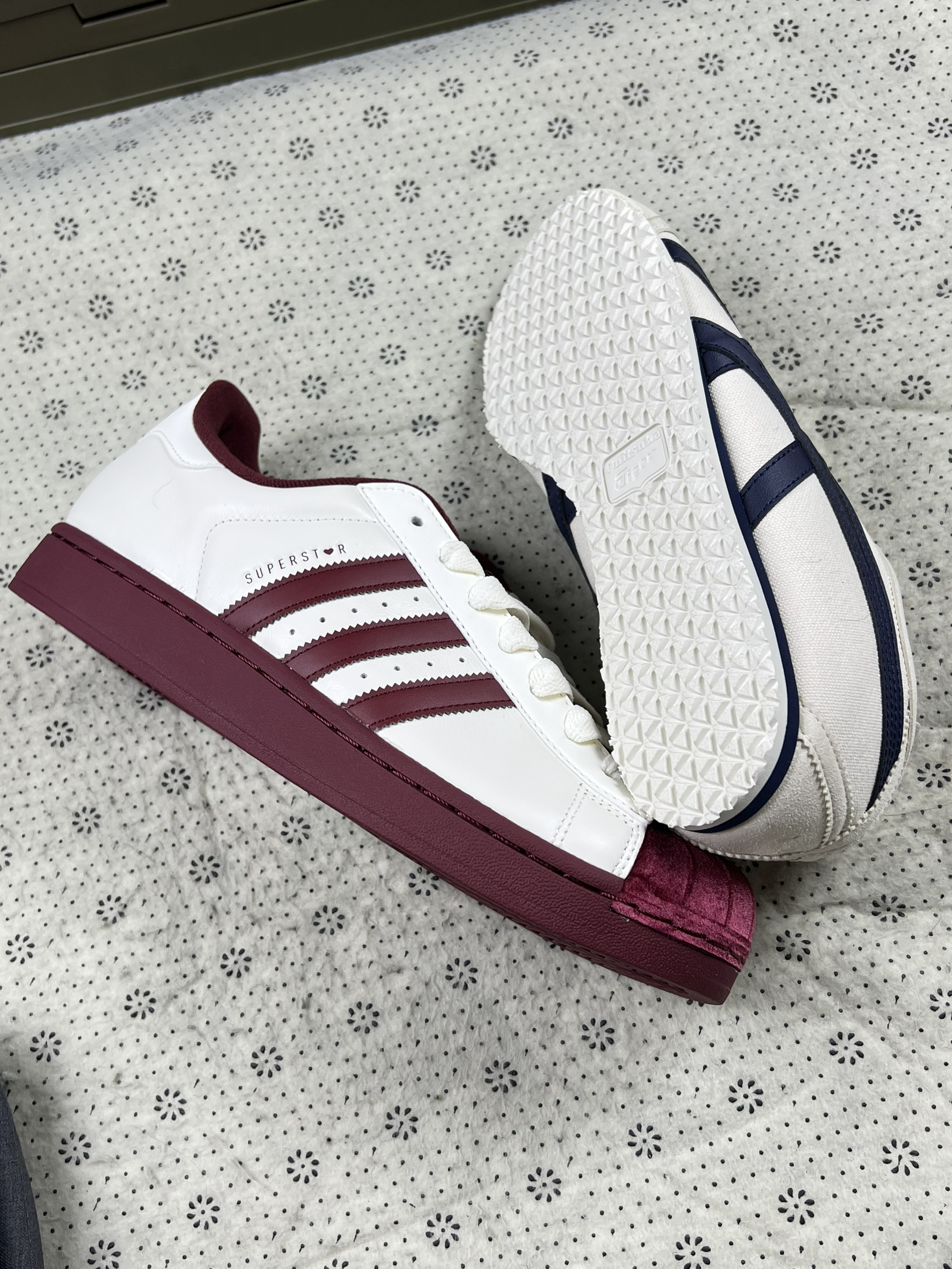 分享两双刚入的鞋,真实感受来唠唠 刚到手两双鞋,穿了一阵,说说真实体验。 鬼冢虎这双 鞋面是帆布材质,透气性还不错,夏天穿没闷脚。鞋型偏瘦,脚宽的朋友可能得选大半码 。上脚轻便,走路久了也不会太累。 搭配上,我常配休闲短裤或直筒牛仔裤,简约的T恤就行,走日系休闲风,挺清爽。 阿迪达斯贝壳头 皮质鞋面,质感还行,但打理得注意,沾了灰得及时擦。鞋头贝壳头设计,复古感拉满。不过鞋底不算特别软...