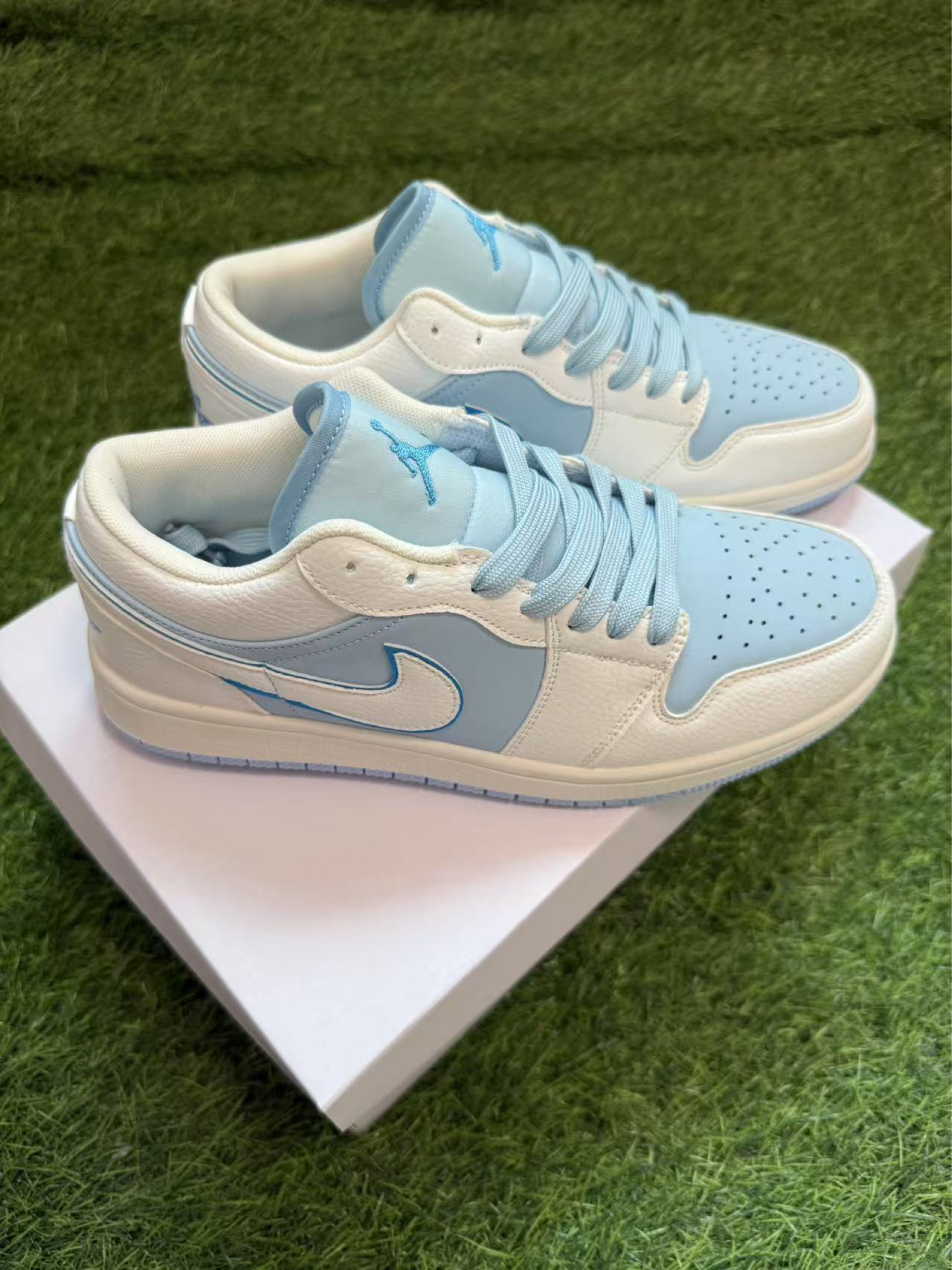 好看的天蓝色板鞋和经典的nike乔丹鞋型,超好搭配,少年感满满,你很喜欢那个系列。 📌是否偏码【偏大/不偏码/偏小】:正码正拍 ⛹️性能打分(每项满分均为10):7 耐磨:8 透气:8 重量:舒适轻便