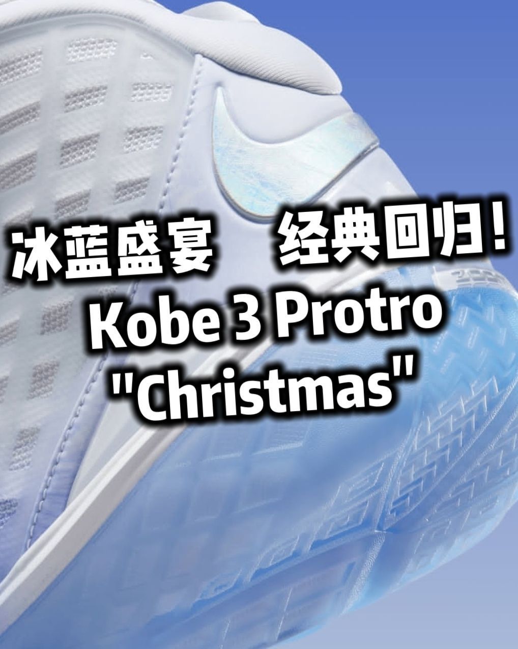 科比的球迷们有福了!备受期待的 Nike Kobe 3 Protro “Christmas” 圣诞配色终于官宣复刻,将于今年冬季正式回归。这双曾经在2007年圣诞节比赛中闪耀的战靴,将以全新面貌重现江湖,为球鞋圈带来一场冰蓝盛宴。 缓震系统改进:采用了全掌 Zoom Air 缓震系统,替代了元年的前后分掌 Zoom Air,提供更出色的能量反馈和舒适感。发售信息 · 配色:Royal Pulse...