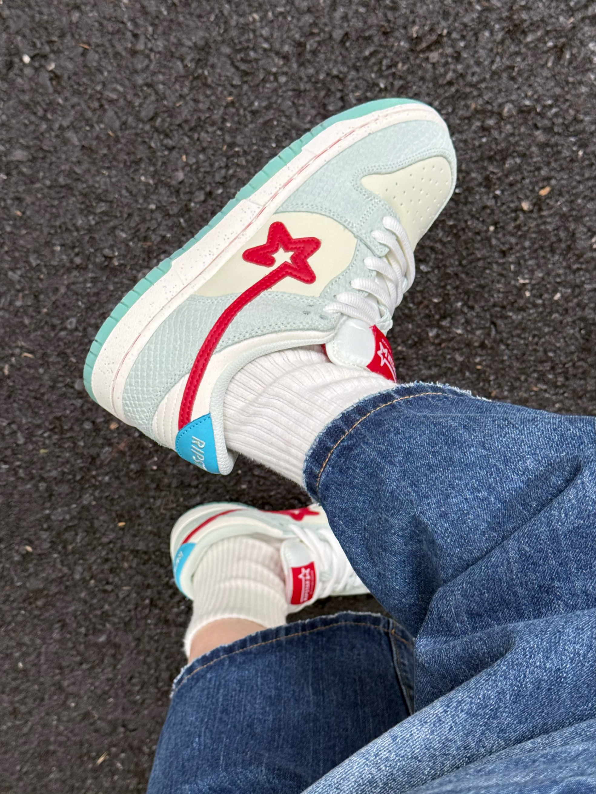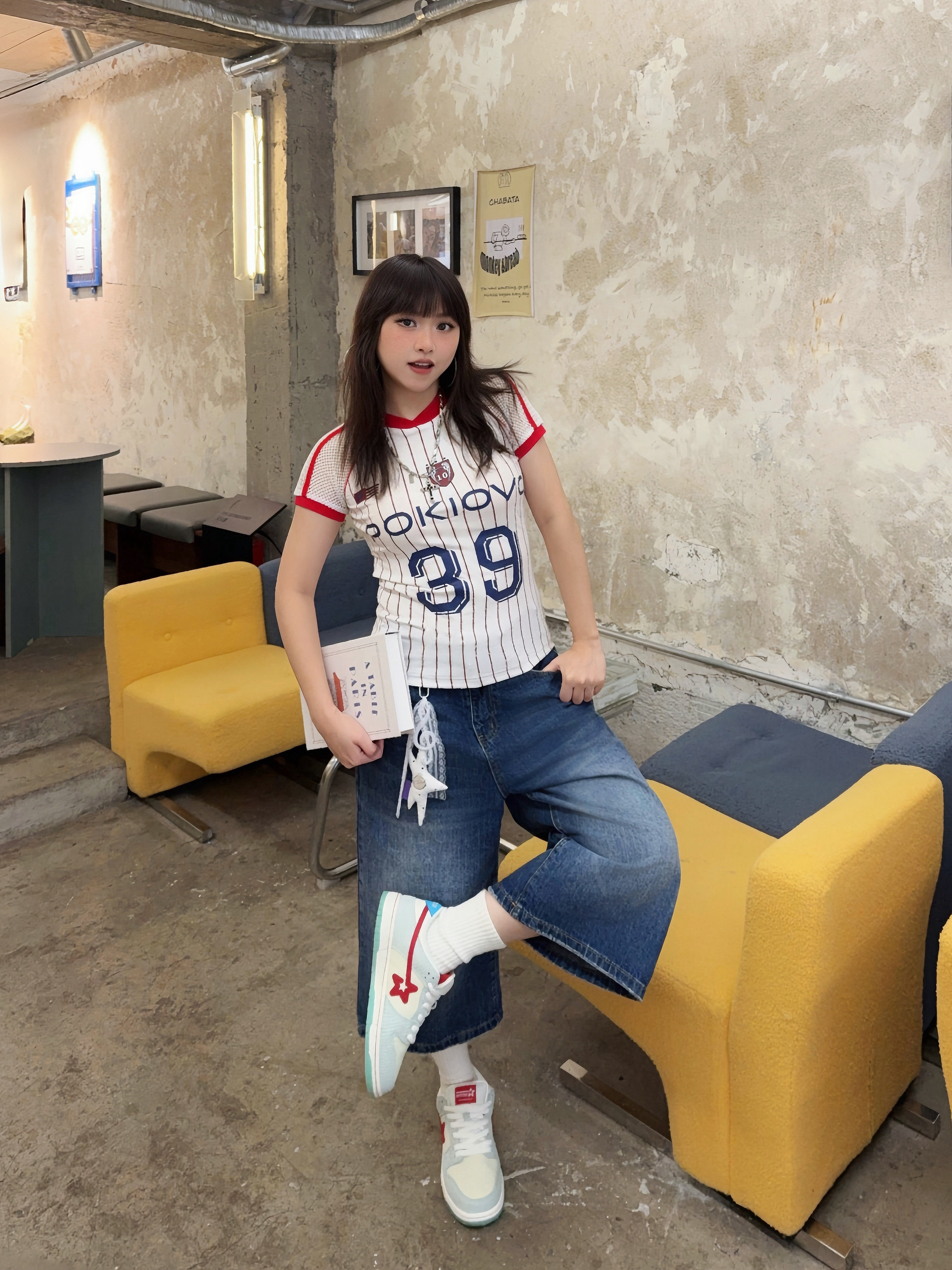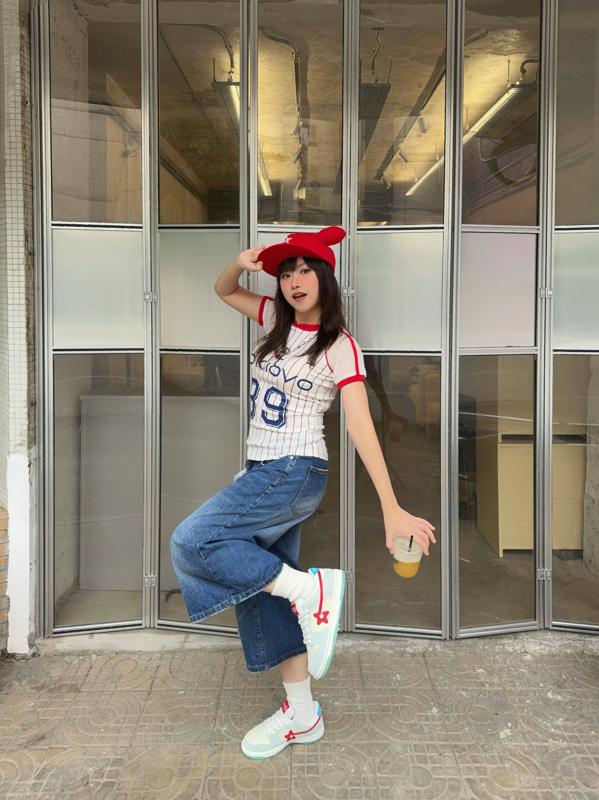 🧷夏天怎么能不穿美式风 🛹街头风ootd:球衣短袖+牛仔中裤,Ripstar美式板鞋,给夏天来点多巴胺~ 🩵薄荷绿撞色板鞋,配色hin有小众感,鞋面的麟片设计也很特别,不愧是蛇年限定,上脚满满的美式vibe🆒