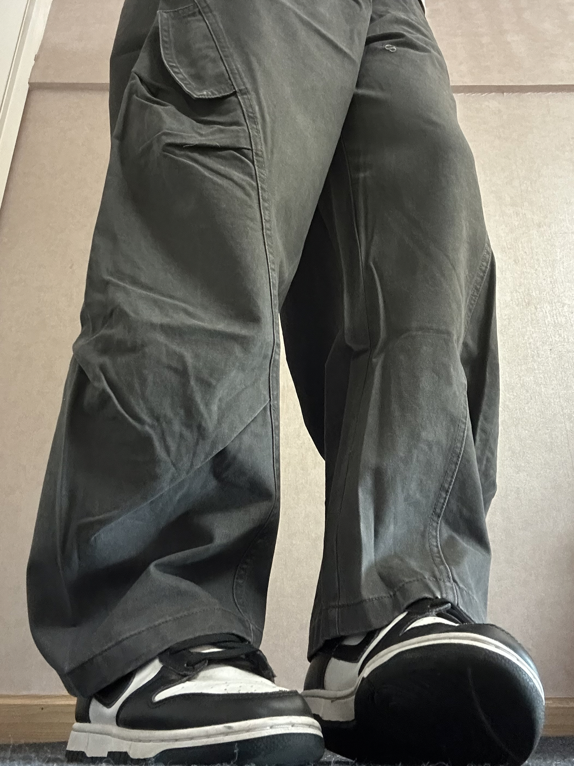 这条工装裤真的好好看 上身是比较宽松的设计真的好舒服 自带的褶皱感设计感觉更有层次