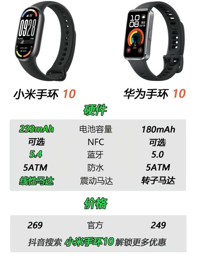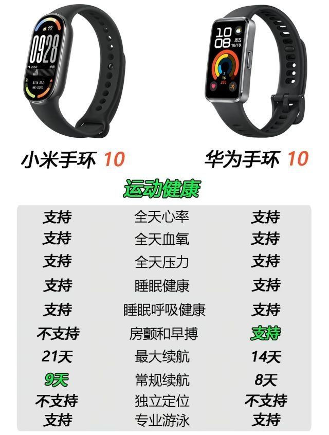 本篇笔记关联了HUAWEI/华为 手环10 运动手环 专业睡眠分析 情绪健康 心率监测 超长续航 羽纱黑(铝合金表壳)、MI/小米 手环10 运动手环 专业运动健康 监测睡眠管理 心率血氧 长续航 防水 游泳模式 黑色等商品,为用户提供真实的使用体验和购买参考。