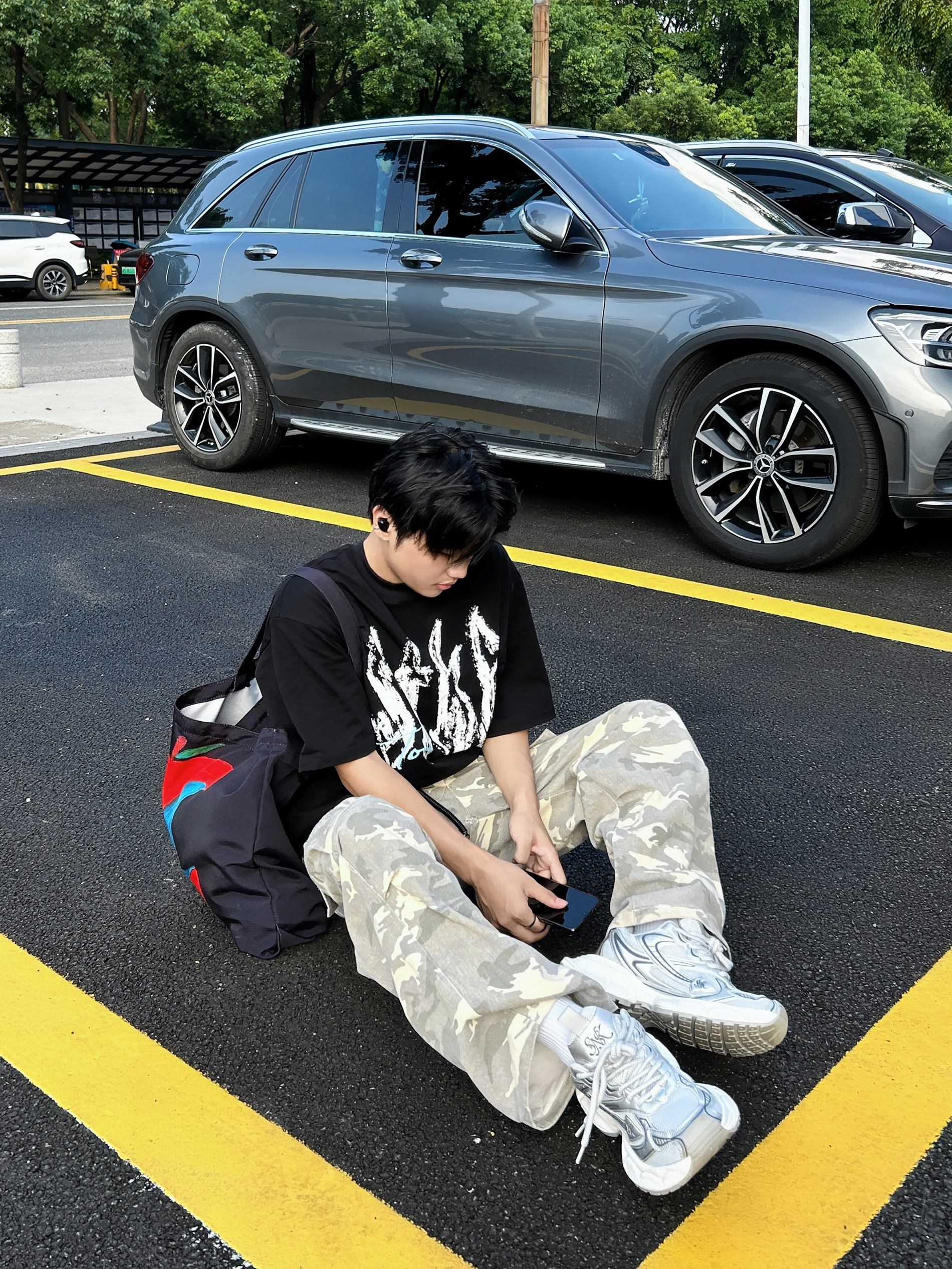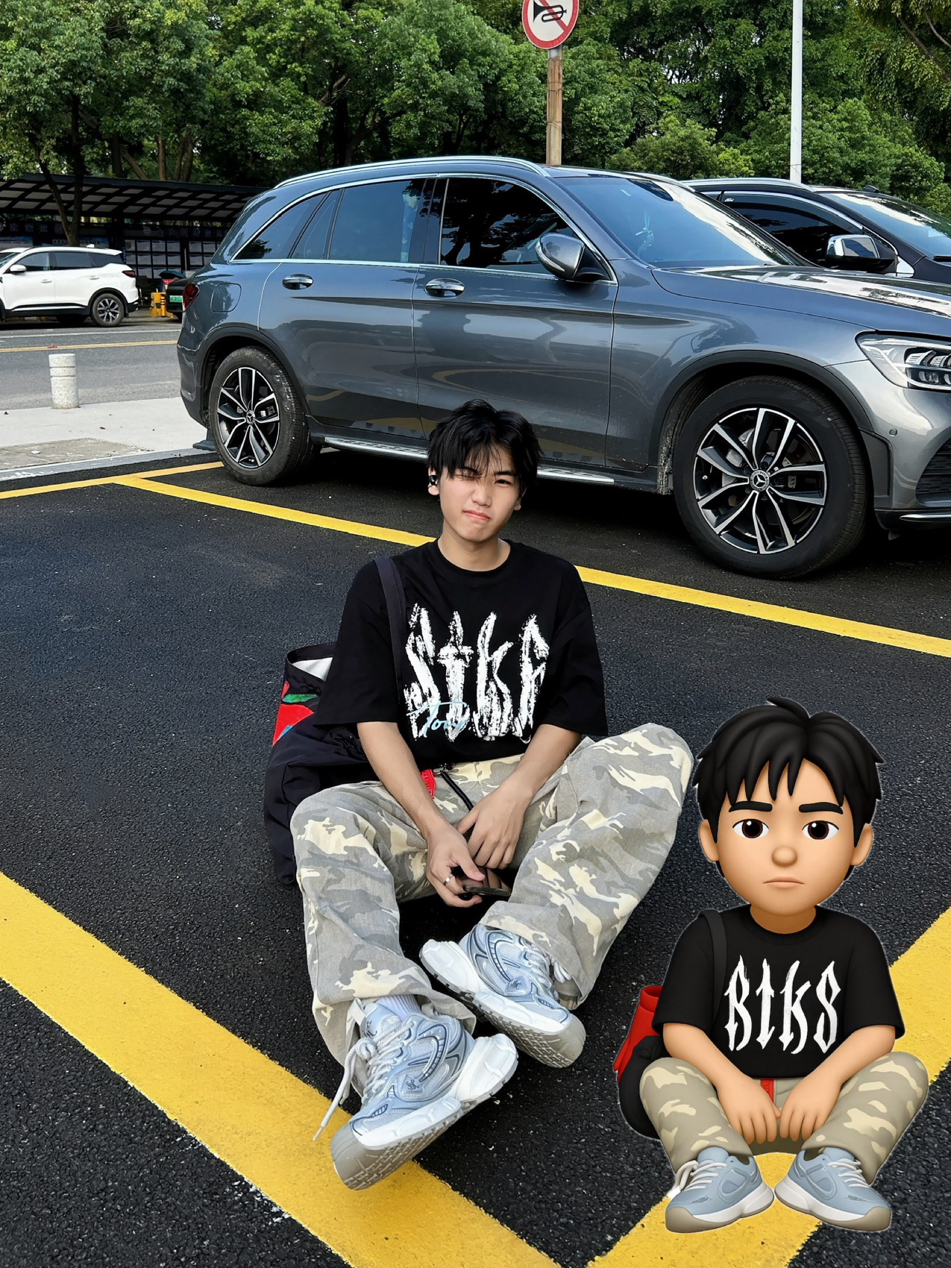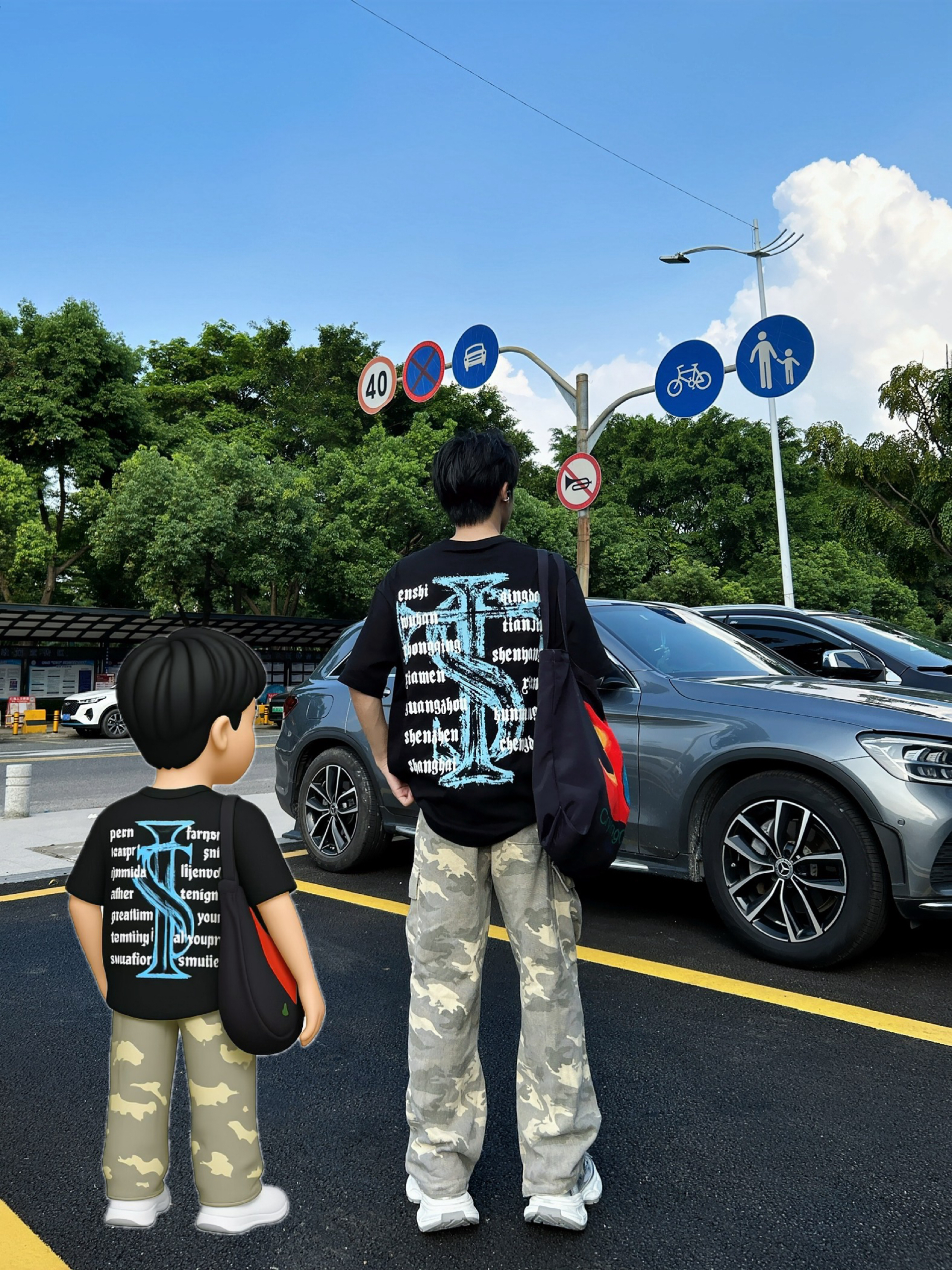 ☀️被阳光“晒”出灵感 跟着Emoji小人搞套街头松弛感穿搭! 字母印花黑T 简约又带劲 迷彩裤一穿直接拉满随性氛围 再踩双老爹鞋,出街走路都带风~ 日常这么搭,轻松拿捏街头潮感 主打一个不费力的帅!