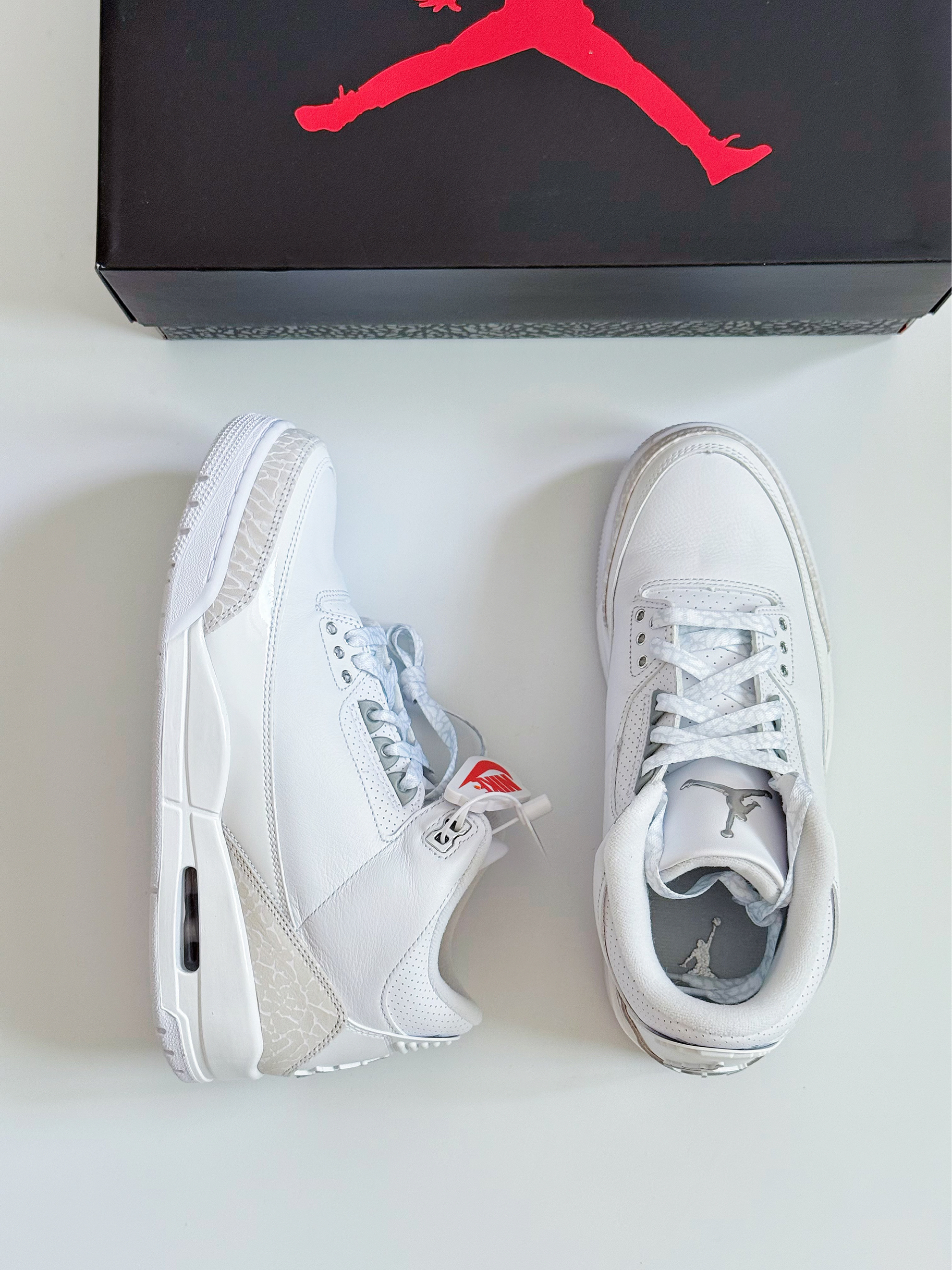 本篇笔记关联了Air Jordan 3 运动休闲鞋 潮流复古抓地支撑缓震合成革圆头 纯白、Air Jordan 3 运动休闲鞋 潮流复古抓地支撑缓震合成革圆头 金属银/白色等商品,为用户提供真实的使用体验和购买参考。