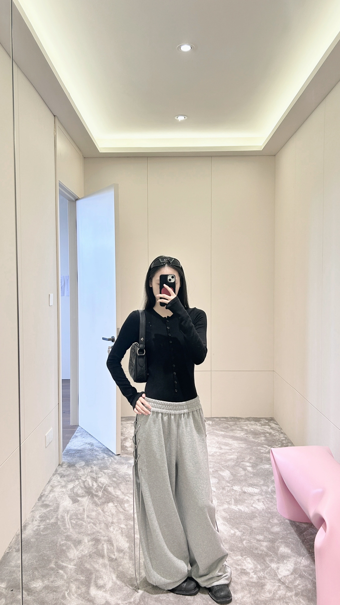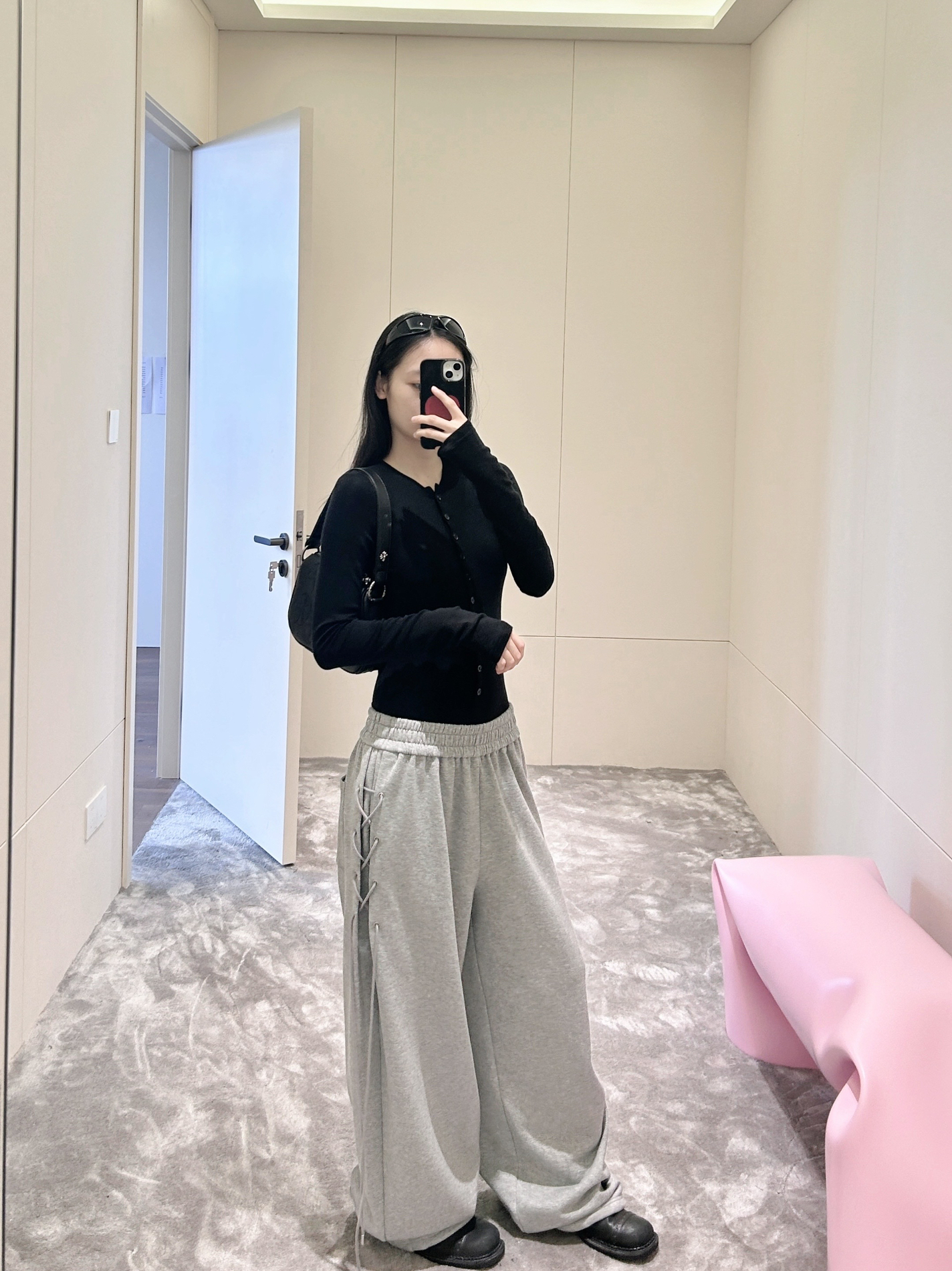今天这套穿搭,重点想夸夸这条灰色阔腿卫裤! 垂坠感绝绝子,宽松版型把慵懒感拉满,走路带风又藏肉,侧边绑带设计是灵魂✨ 打破单调,增添随性酷感,搭配修身黑色针织开衫,上紧下松,平衡出松弛时髦感,日常出街、宅家休闲都适配,谁穿谁爱上这种无拘无束的自在~