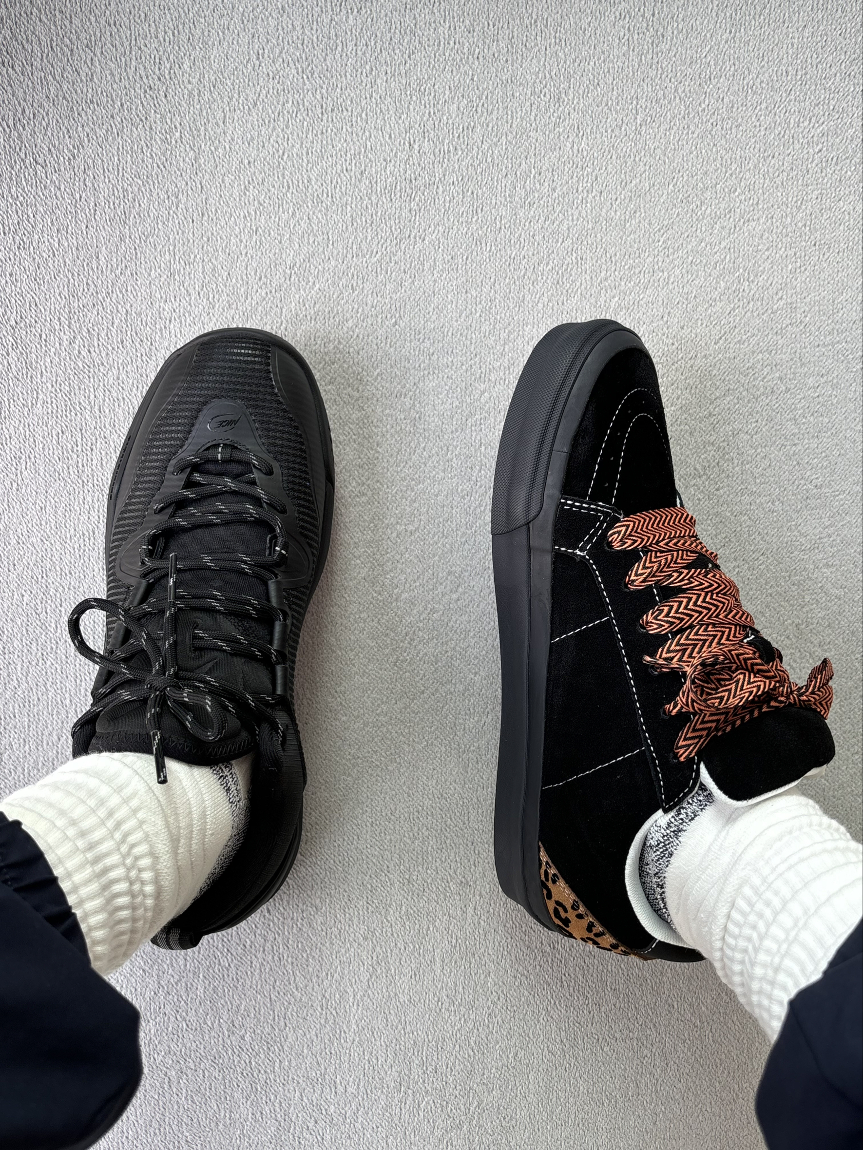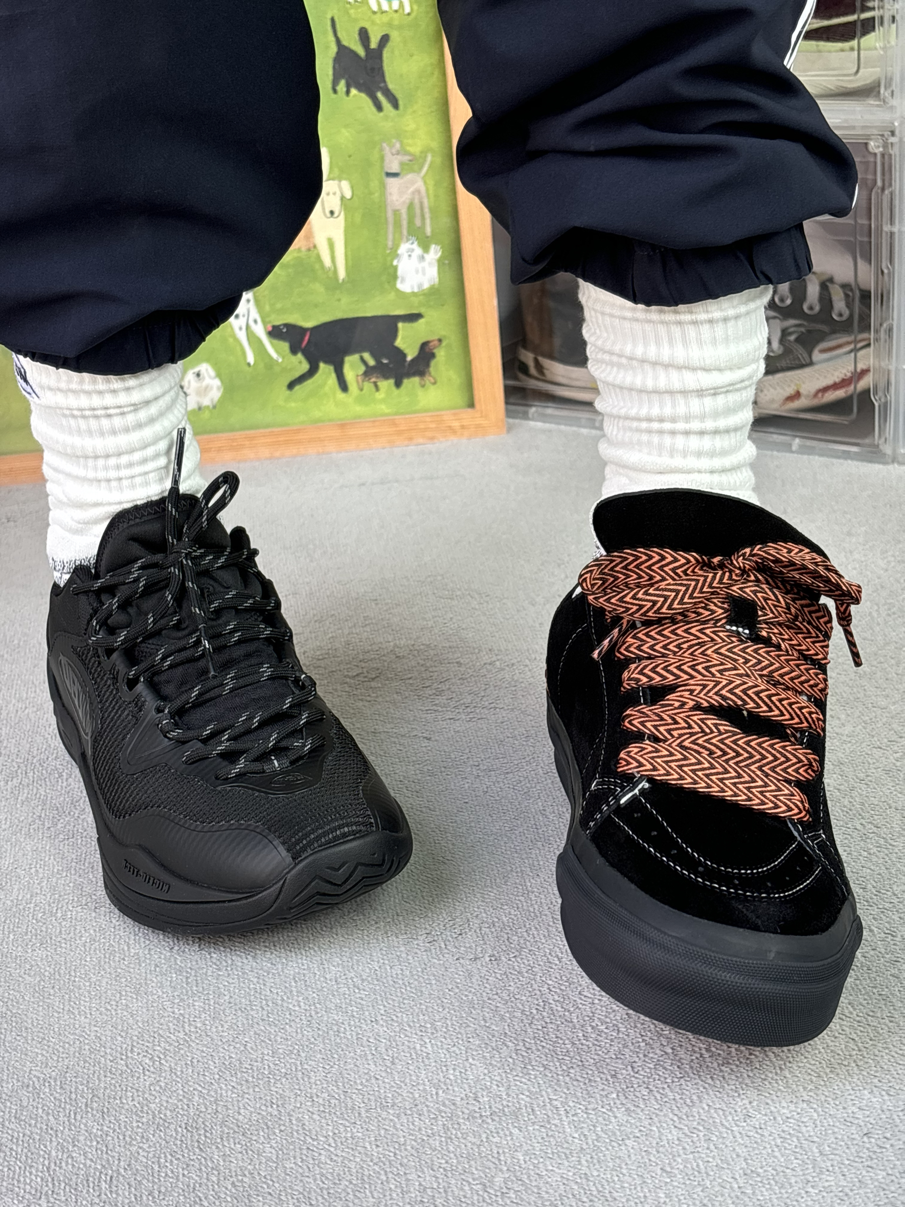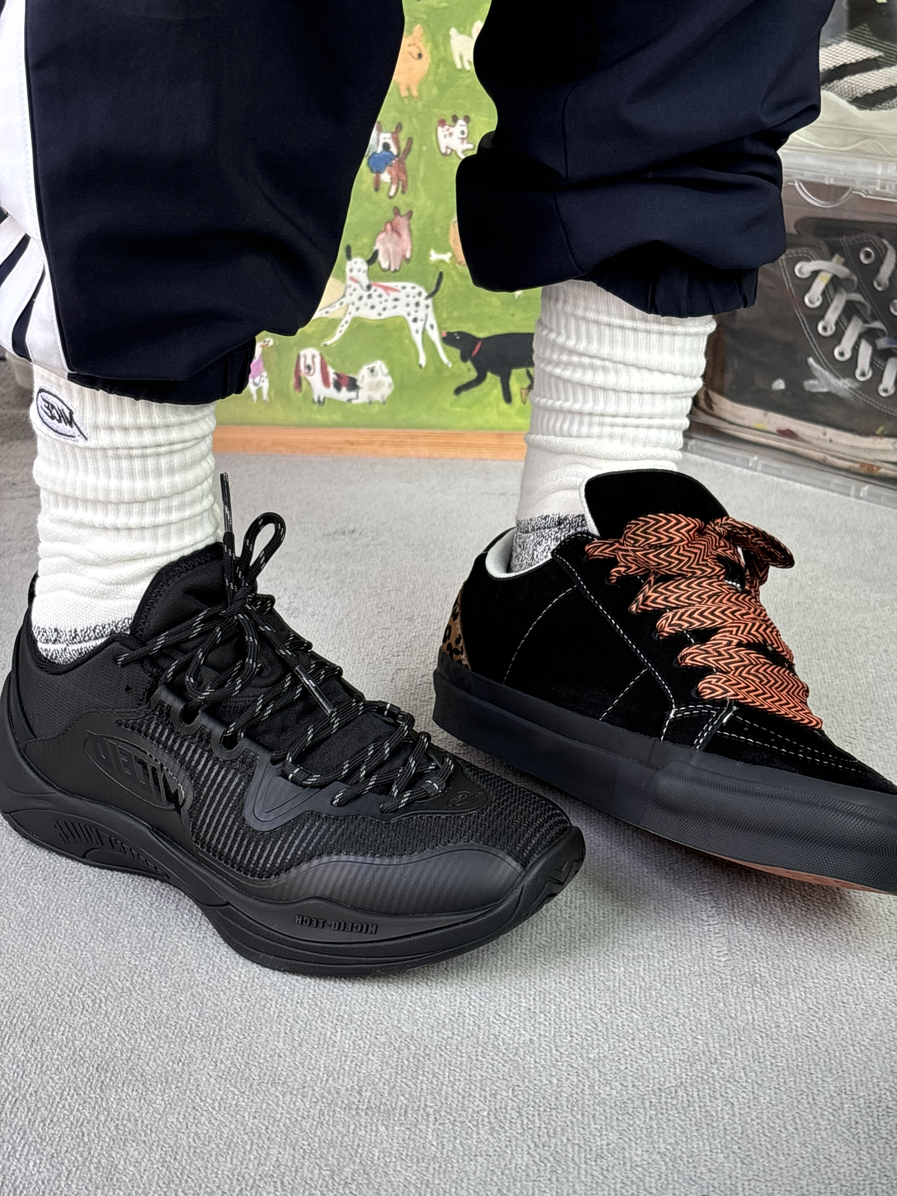 今天上脚的这双篮球鞋算小众吧 可能很多兄弟都还没听说过这个品牌niceid 但是鞋子的质感是真好 而且轮胎地很耐磨 板鞋呢也是一个小众的品牌 上脚很好看很小众 并且质感也是对的起这个价格