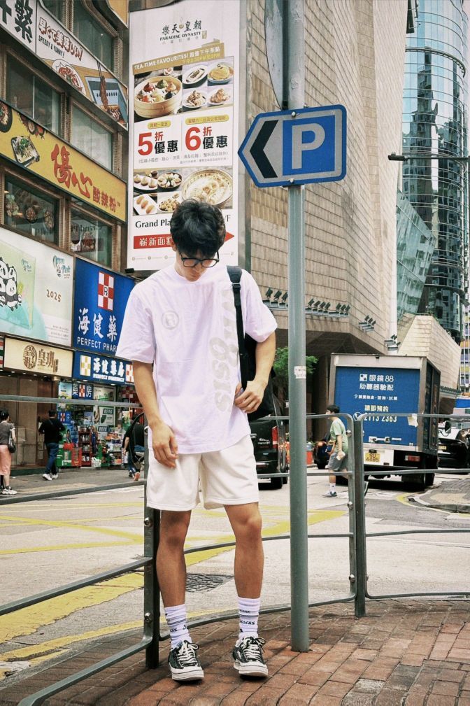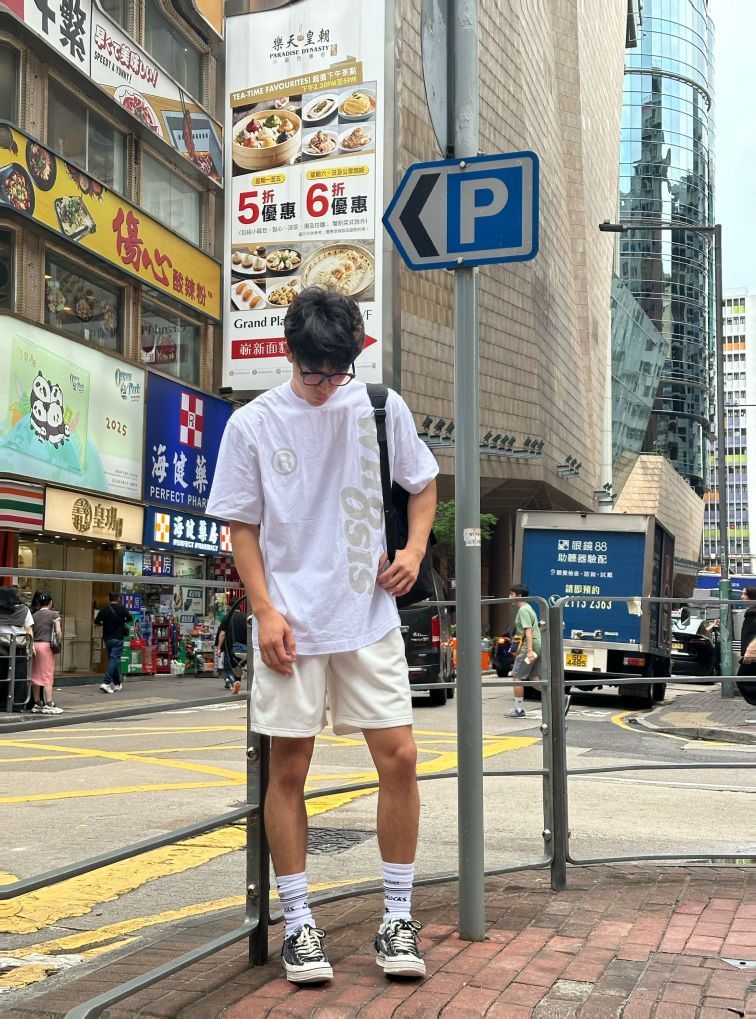 身高|体重:185/80 🧍♂️ 穿搭风格:简单随心 👔 上衣:不知其名大logo短袖 👖 下装:白色短裤,老婆精心挑选 👟 鞋子:xvessel与回到未来联名