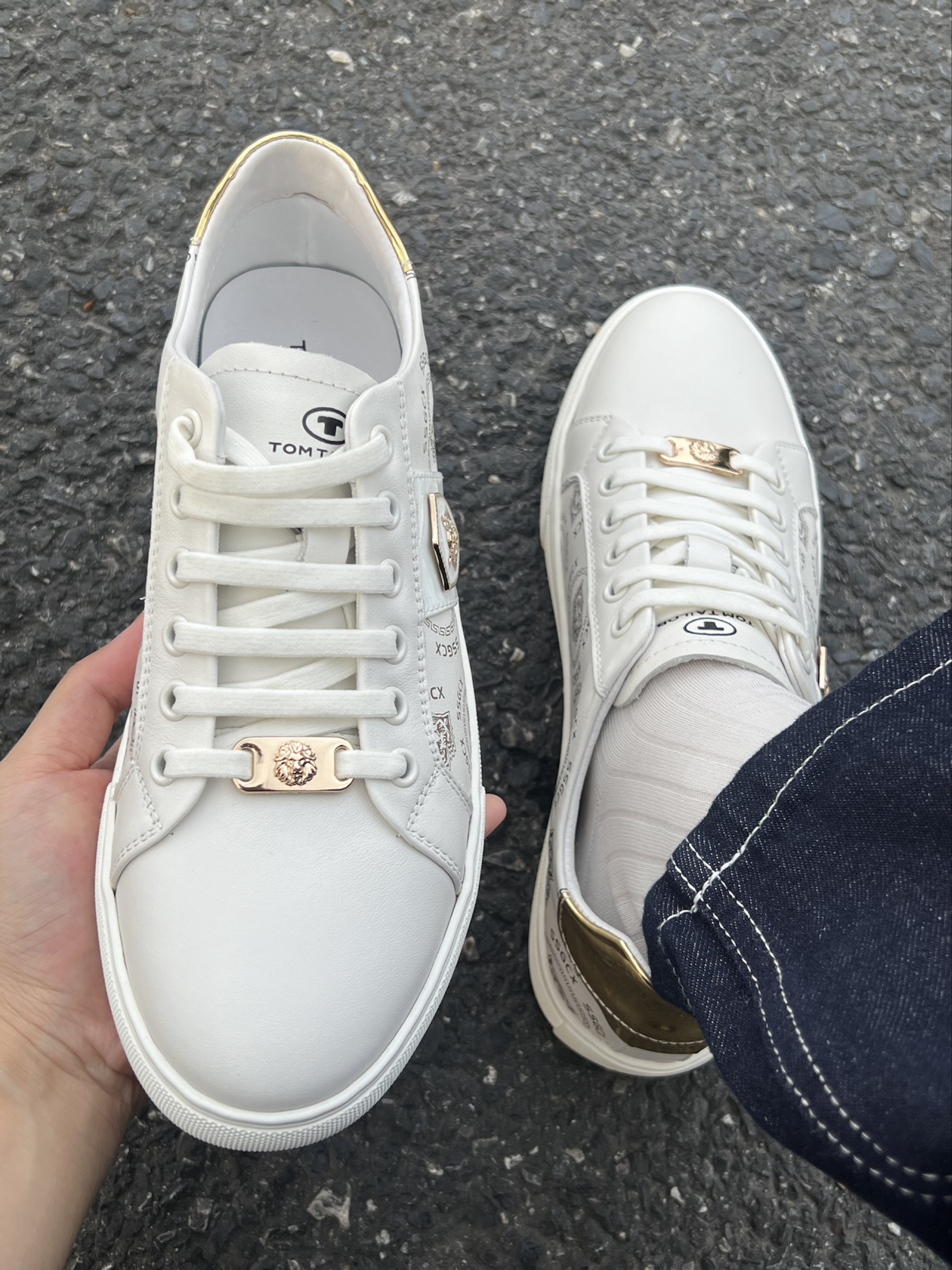 最近发现了双合心意的板鞋! 就是 TOM TAILOR 复古又百搭,是那种老钱风的!穿上好舒服哦~ 真皮质感感觉就是不一样! 鞋面是头层牛皮材质 鞋身是金色狮子头设计,低调中又带有些俏皮 日常也挺好搭的 牛仔裤 休闲裤随便配!