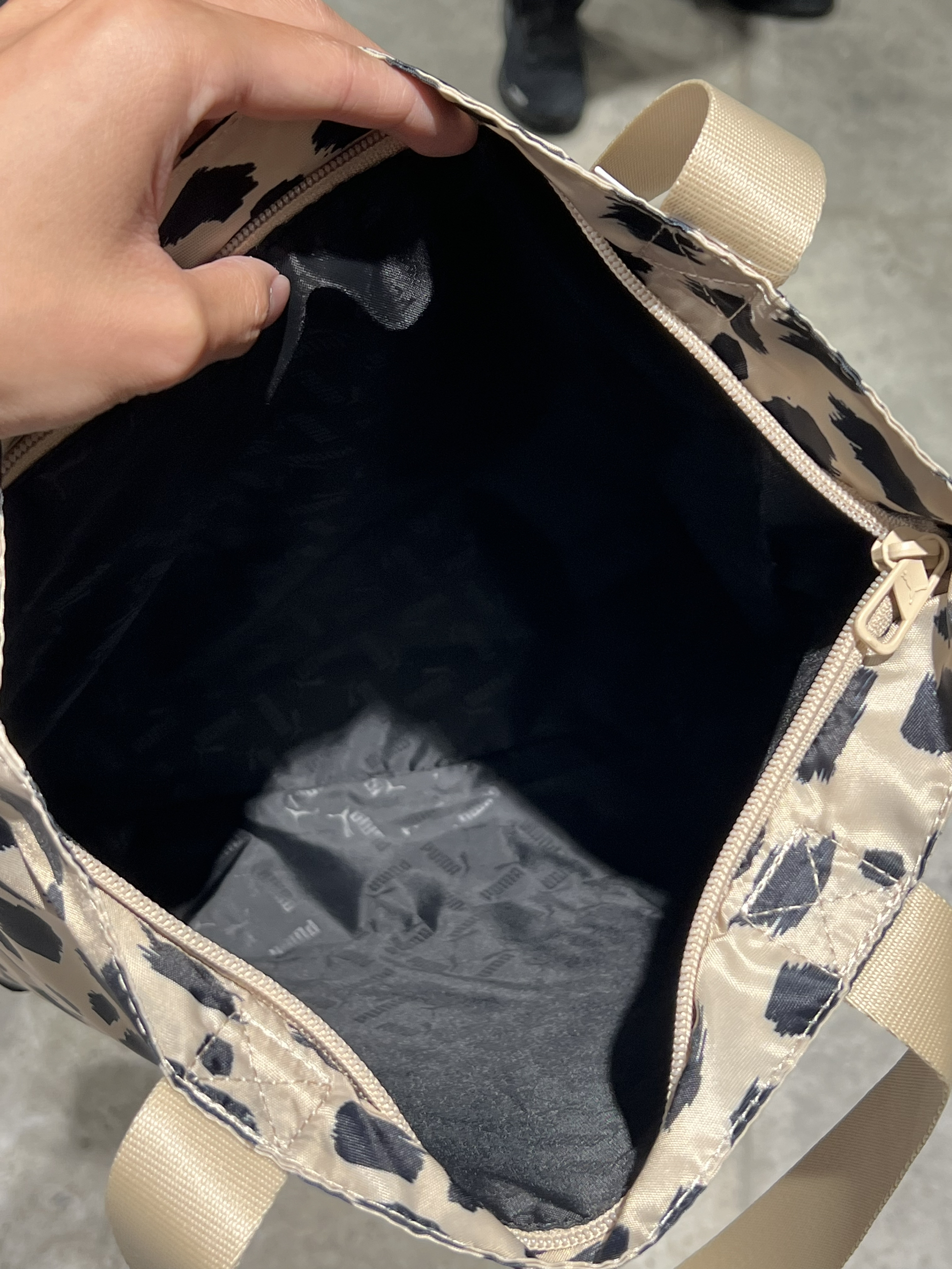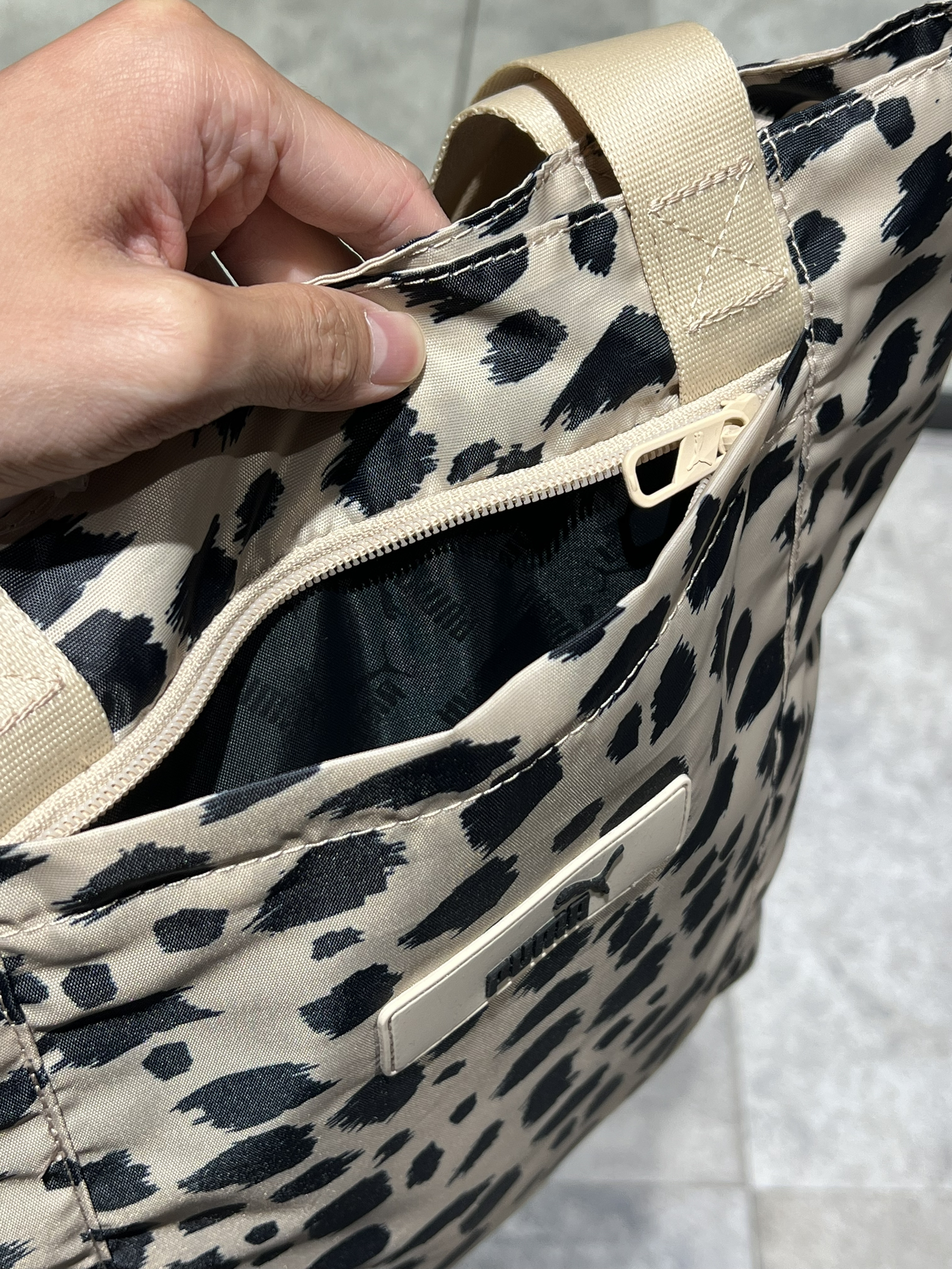 挖到彪马超绝豹纹系列包袋!托特包 + 双肩包双杀,实用又时髦,细节控狂喜👇 托特包:容量 + 颜值双在线 ✨ 外观:奶杏底色配泼墨豹纹,复古又带点野性,PUMA 小标低调点睛,背出门超吸睛,搭简约黑裤、裙装都能秒变时髦精~ ✨ 细节:帆布材质轻便耐造,米色宽肩带不勒肩,日常通勤、逛街随手一拎,舒适度拉满。 ✨ 内里:开口大且深,隔层设计合理,手机、钥匙、小物件分类放,找东西不慌乱,装笔记本、小...