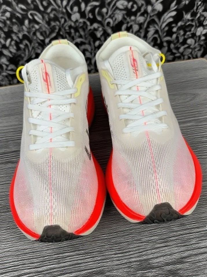 这双李宁鞋颜值绝了✨ 白红渐变超亮眼,网面材质透气,跑步时脚不闷。 上脚轻,跑起步回弹带劲,日常配运动裤青春感拉满~不过鞋码偏紧,宽脚得选大半码👟 整体很适合爱运动又要穿搭的人,小缺点能忍,性价比在线,跑步逛街都舒服💨 (纯个人穿后感,给想入的朋友参考呀~)