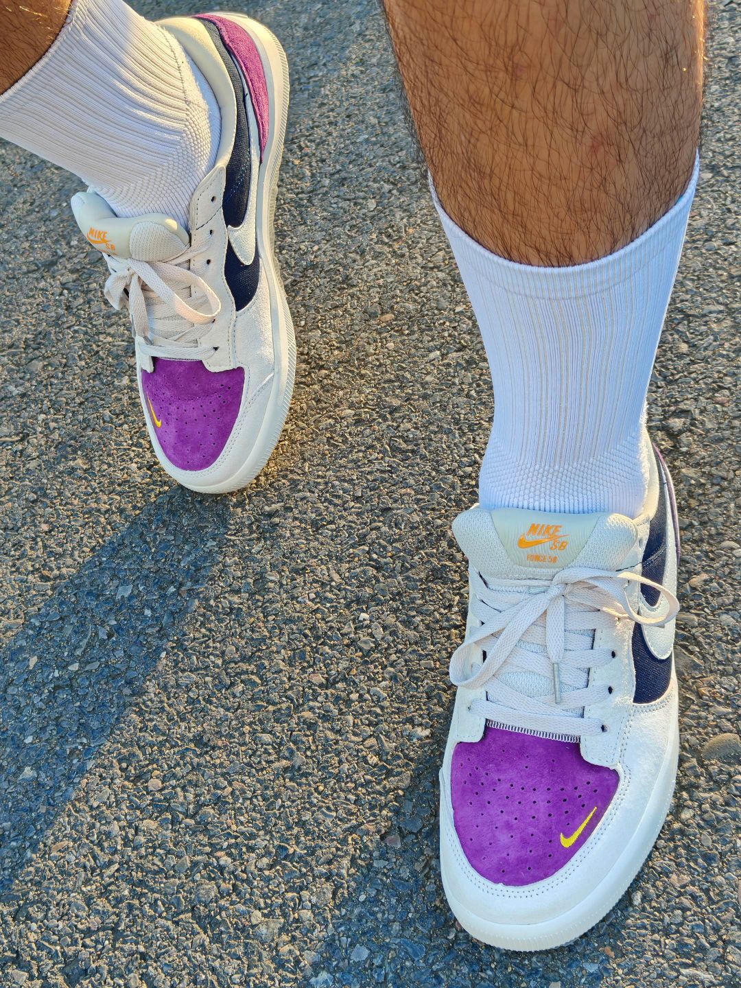 这学期换鞋,图的就是"颜值、舒适、实用三位一体"。这双Nike SB Force 58米紫配色,既有撞色的吸睛度,又能抗住校园各种场景的"考验",搭配还不费脑——简直是为开学季量身定制的"懒人福音"! 🦶脚感方面,帆布➕网眼设计,初秋穿刚好,哪怕中午热也不会闷出汗,鞋底软弹有支撑,早八赶路、体育课跑跳都不累脚,甚至逛校园一整天也不会酸