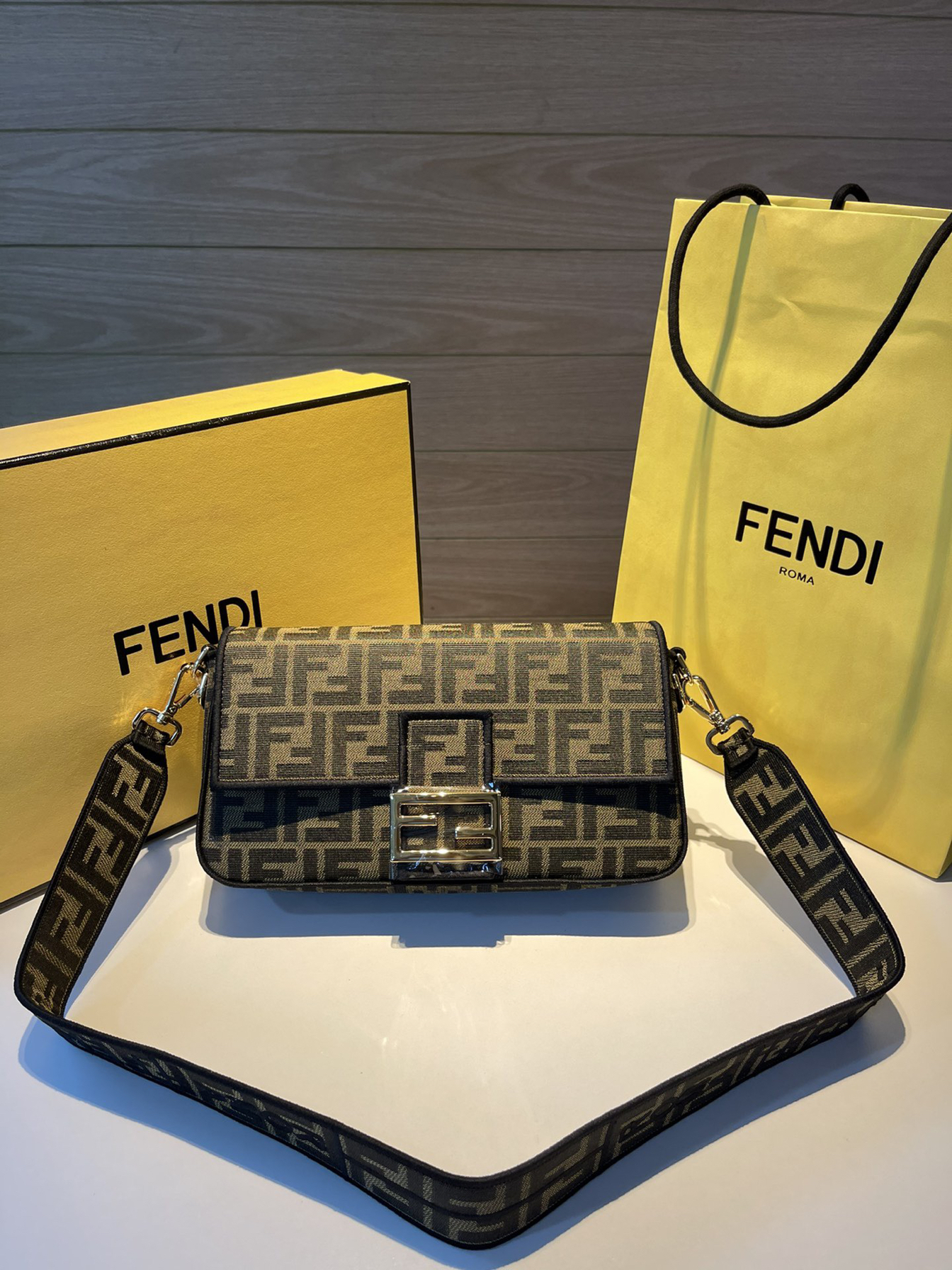 一直心心念念Fendi这款老花法棍包,到手真的没让我失望。经典老花图案,自带复古时髦感,走在街上辨识度超高,轻松成为人群中的小亮点✨。 它的实用性也很在线,日常出门要带的手机、口红、粉饼、钥匙等小物件都能轻松装下。肩带长度对我来说刚刚好,单肩斜挎都很舒服,通勤背着它,既不会觉得累赘,又能给穿搭加分不少。而且它的五金质感超棒,开合很顺滑,用了一段时间也没有出现磨损掉色的情况👍。 不管是穿简约的职...