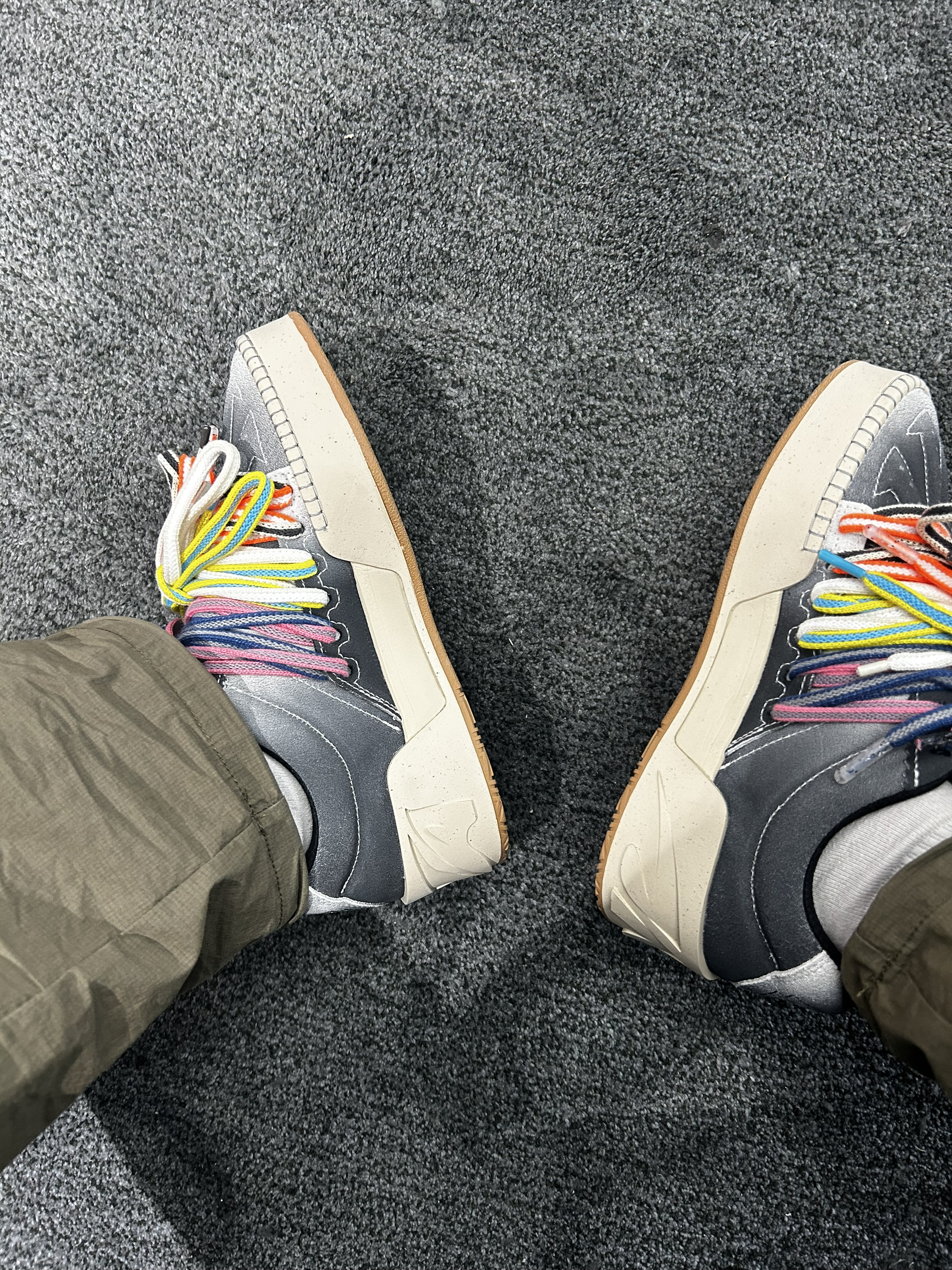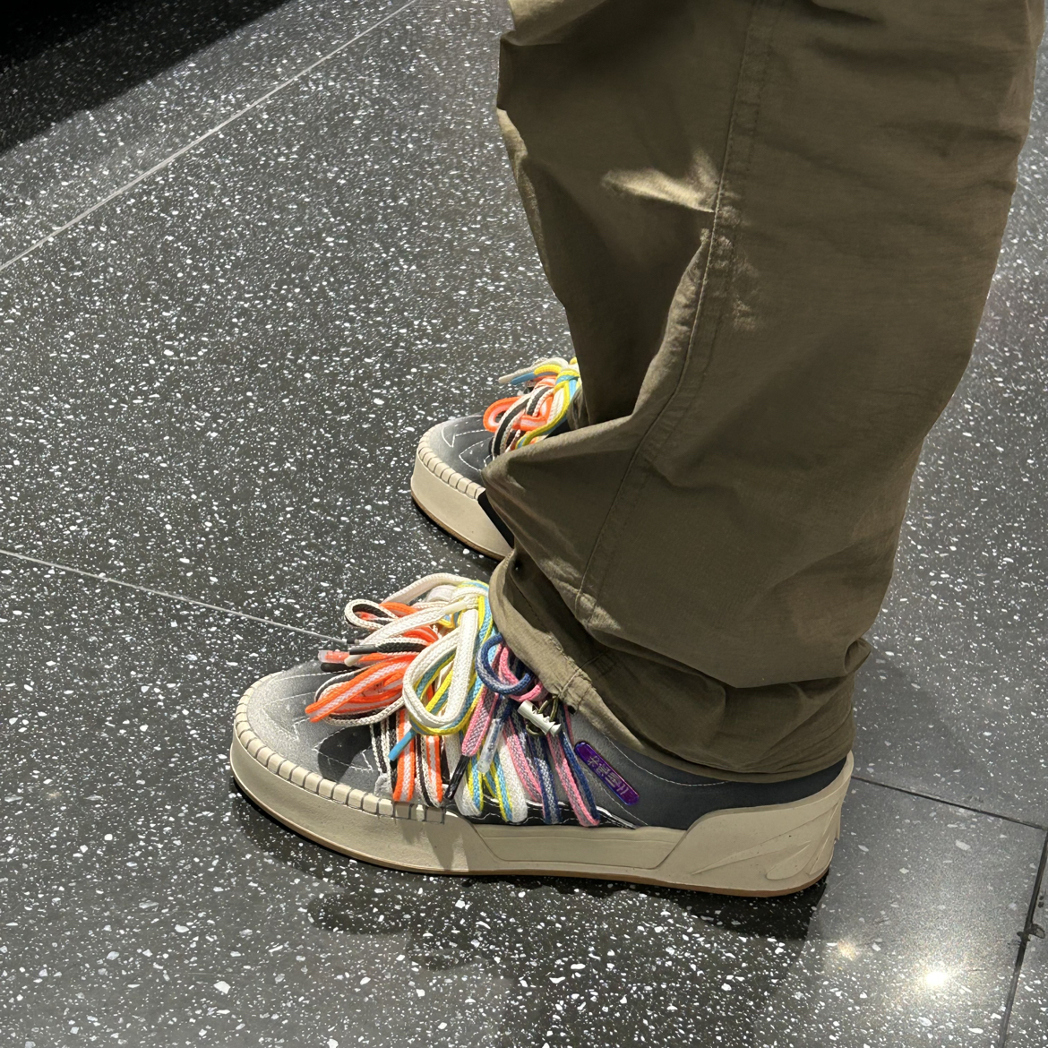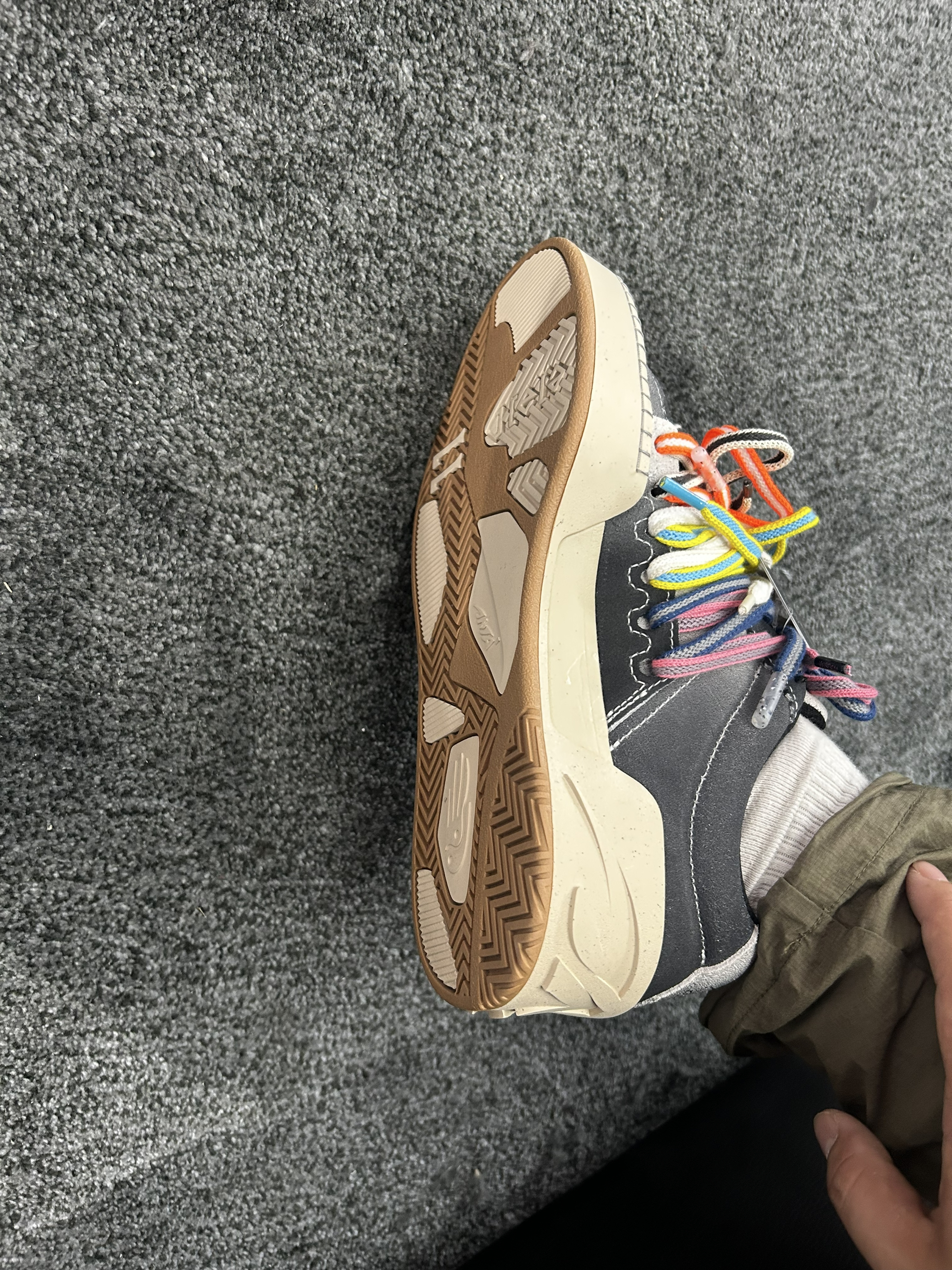 这双BLUE&GREY配色实物很好看,磨砂质感不错,鞋带还是延续了之前比较个性的设计。 穿起来比想象中轻很多,走路几乎感觉不到负担。中底调得挺适中,前掌软但不会塌,后跟落地稳定,小跑几步也很跟脚。穿它通勤挺舒服,走久了也不容易累。 颜色耐脏,灰白搭配微黄做旧中底,简单耐看,牛仔裤、短裤都好搭。适合平时想轻便出门的人。 注:高脚背建议先试穿