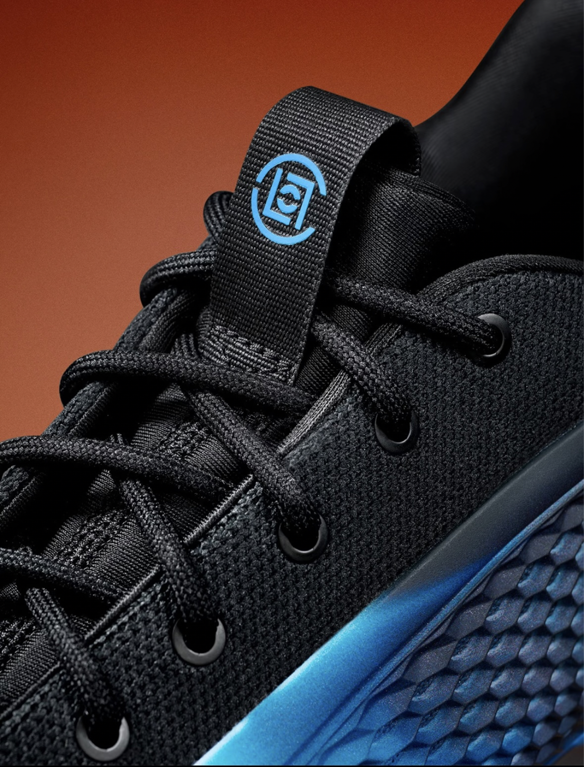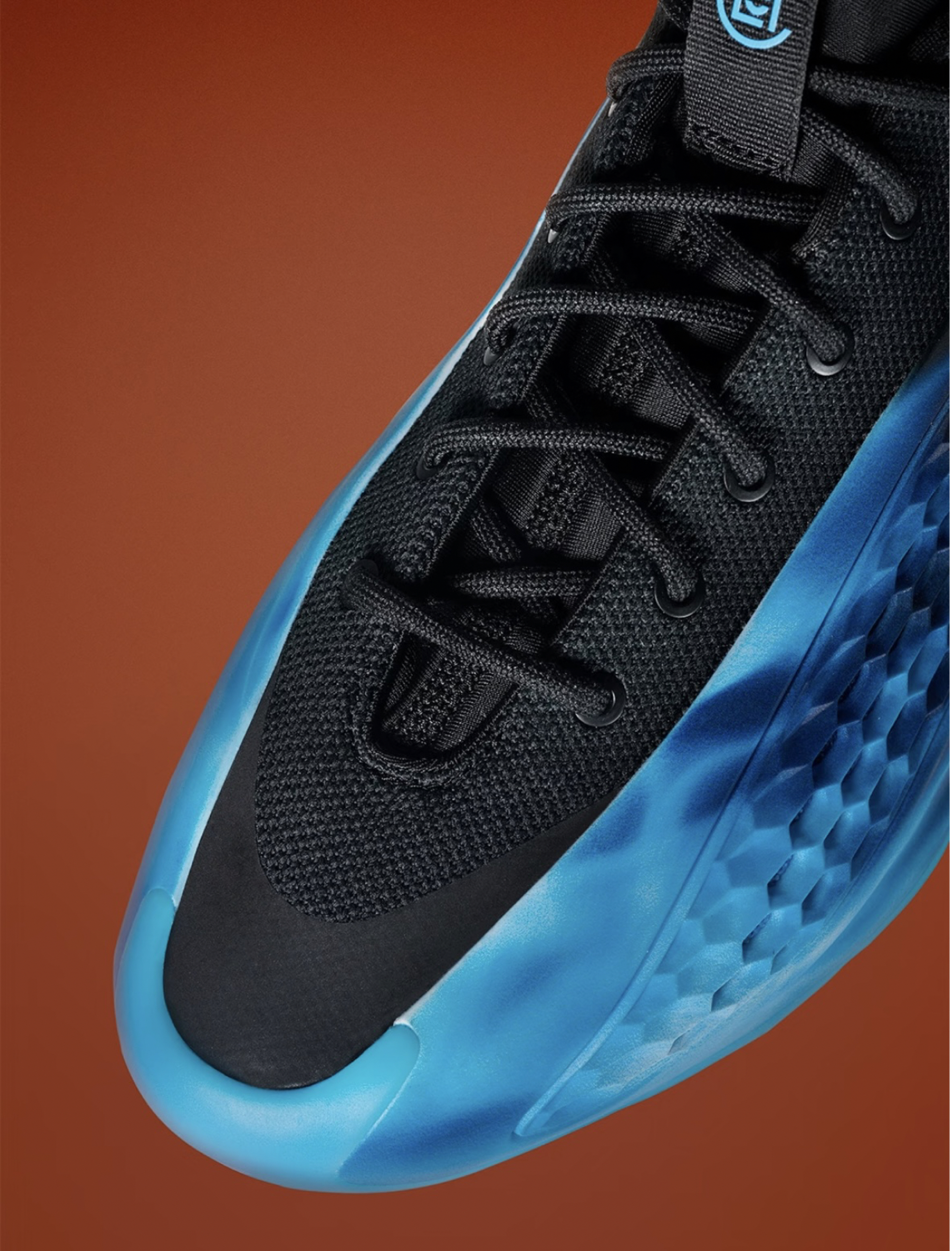 此次联名鞋款设计别出心裁,以爱德华兹钟爱的蓝色为主色调,鞋面融入火焰跃动的视觉效果,灵感源于充满热血与激情的90年代街机篮球游戏。这种大胆且富有创意的设计,不仅彰显了爱德华兹在球场上勇往直前、凌厉进攻的风格,也将CLOT独特的潮流美学与爱德华兹的个人态度完美融合,展现出别具一格的个性与时尚感 ,为篮球鞋赋予了独特的潮流魅力。