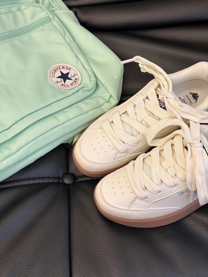 挖到了适合开学穿的鞋子👟 是Kappa的白灰面包鞋 鞋型胖嘟嘟的还可爱 脚感软软糯糯不会重 穿它搭匡威薄荷绿双肩包准备去学校啦
