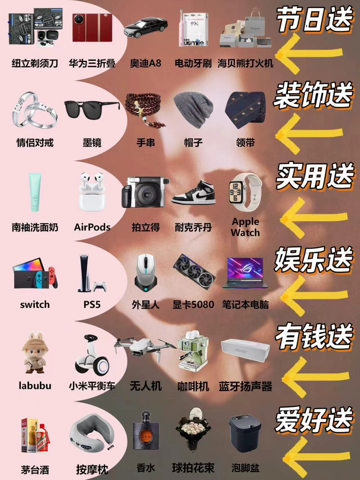 七夕节还有十几天就来了 还没给对象买礼物的一定要看这篇! 不同种类的礼物都整理好了 总有一款适合你 Apple Watch 纽立剃须刀 贵州茅台酒 南袖洗面奶 大疆无人机 海贝熊打火机 咖啡机 拍立得