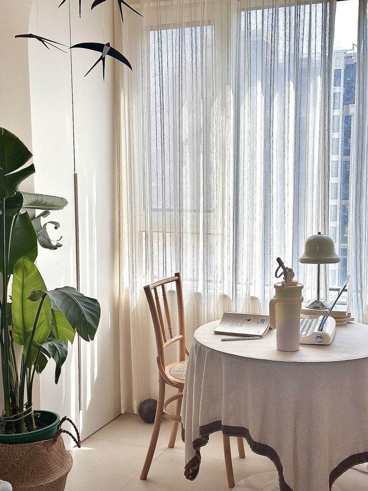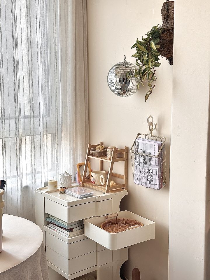 #家的小角落布置 谁说小户型不配拥有仪式感? 1㎡阳台+200元预算轻松拥有精神放空小角落 ✨侧边晾衣架配合鱼线被我变成了挂架 ✔️ 挂了收纳杂志框,绿植还有闪光球 ✔️ 移动茶几,是展示台也是收纳柜 ✔️ 几十块的小圆桌铺上桌布就是ins 风咖啡店 有公园20分钟放空计划 也有宅家1小时放空计划 窝在我的200块阳台咖啡角 听白噪音,看云发呆,喝蜜雪冰城 这一刻幸福感无价 Ps :阳...