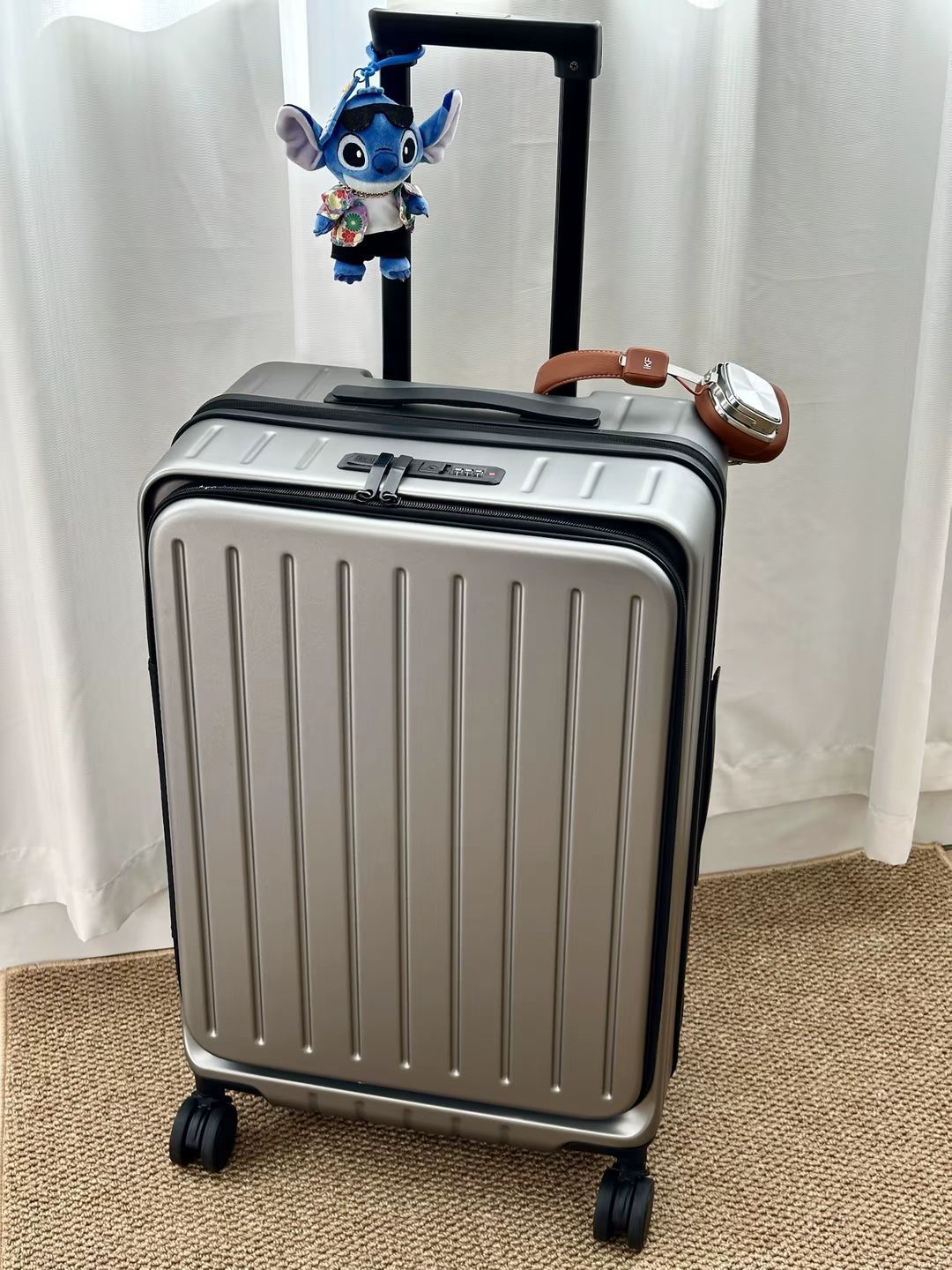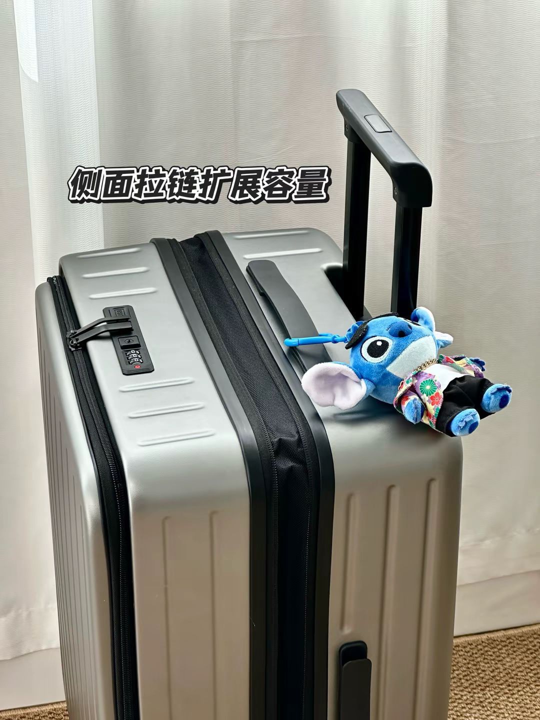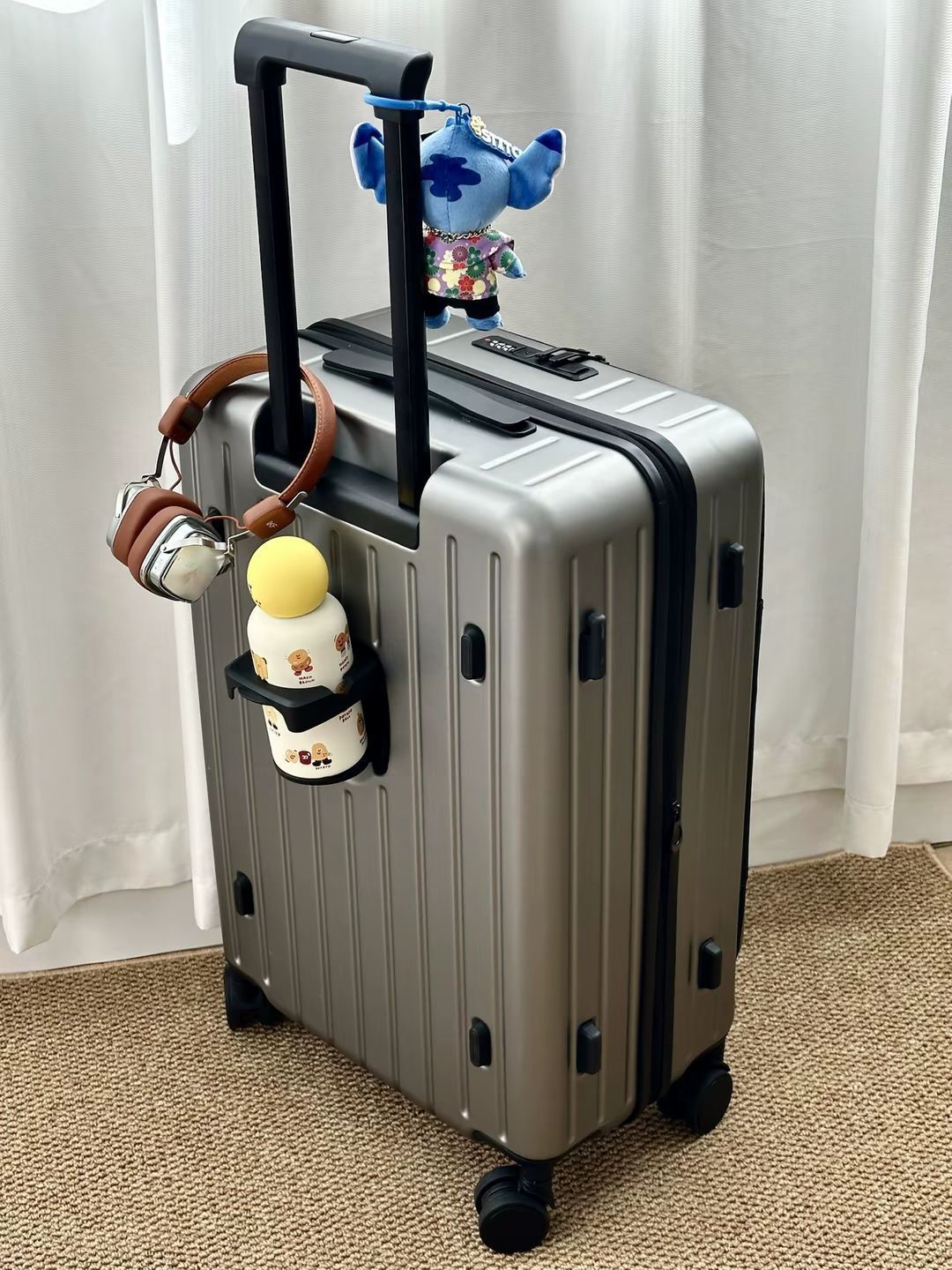 新挖到介个的宝藏侧开行李箱惊艳我了 我选的是枪灰色这个独特配色 带它出游我一眼就能知道是我的皮箱 侧开门设计直接打开找东西都方便不少 皮箱后面还有杯托 放水杯奶茶的都可以呢 我最喜欢它还可以扩容 需要就把中间拉链打开又能多装几件衣服了 有了这个皮箱想去旅游的心根本停不下来!