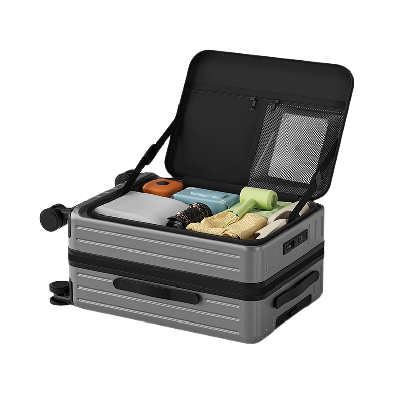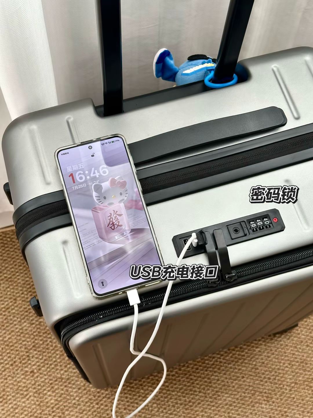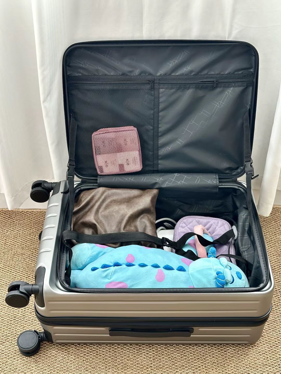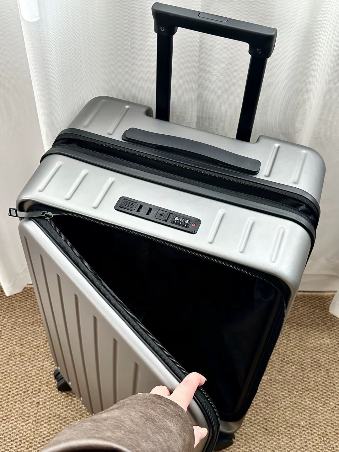 新挖到介个的宝藏侧开行李箱惊艳我了 我选的是枪灰色这个独特配色 带它出游我一眼就能知道是我的皮箱 侧开门设计直接打开找东西都方便不少 皮箱后面还有杯托 放水杯奶茶的都可以呢 我最喜欢它还可以扩容 需要就把中间拉链打开又能多装几件衣服了 有了这个皮箱想去旅游的心根本停不下来!