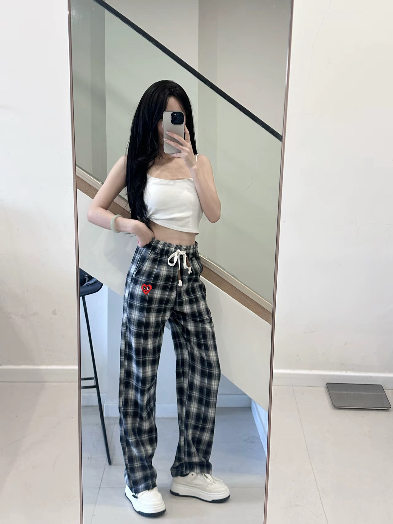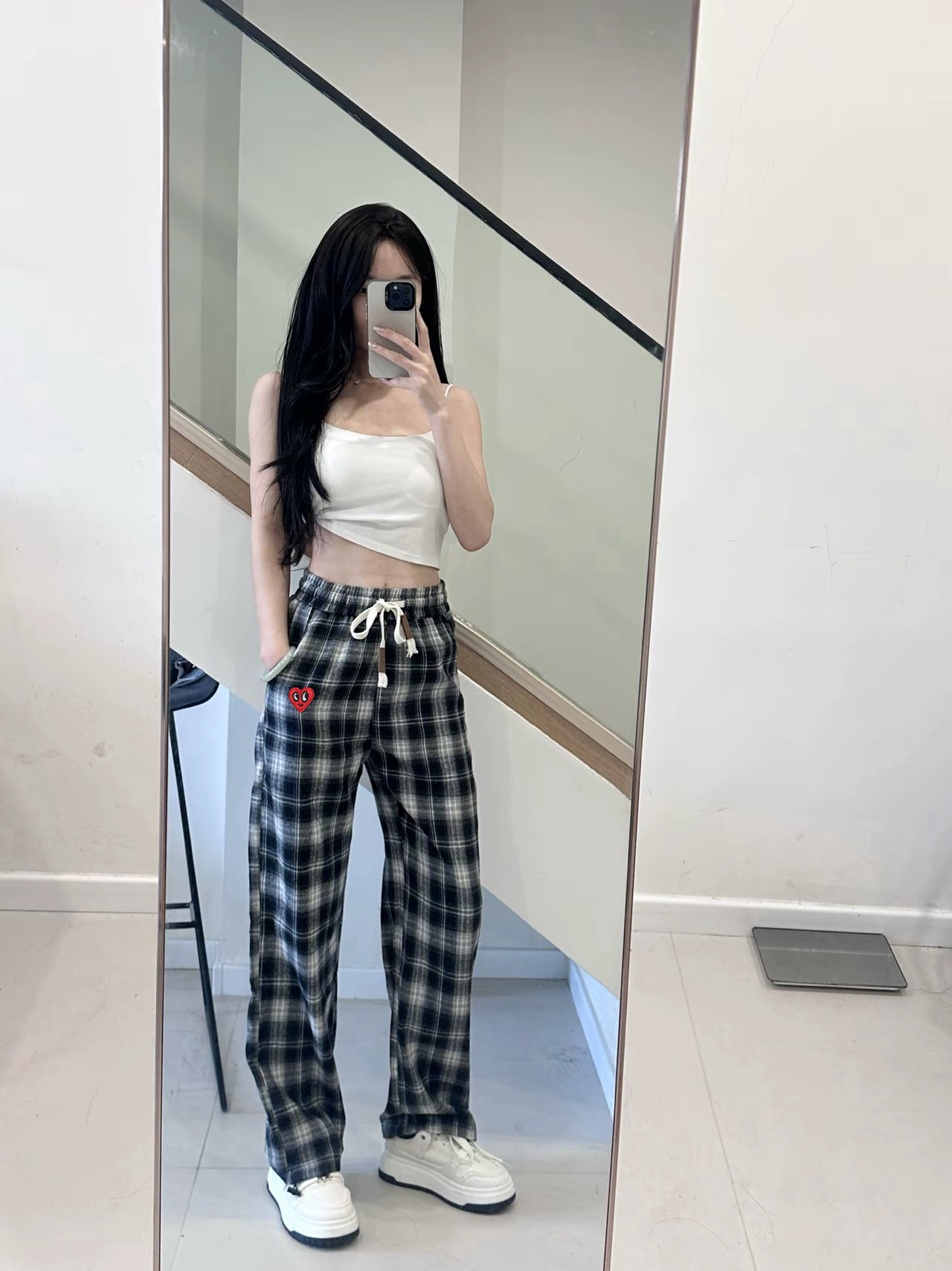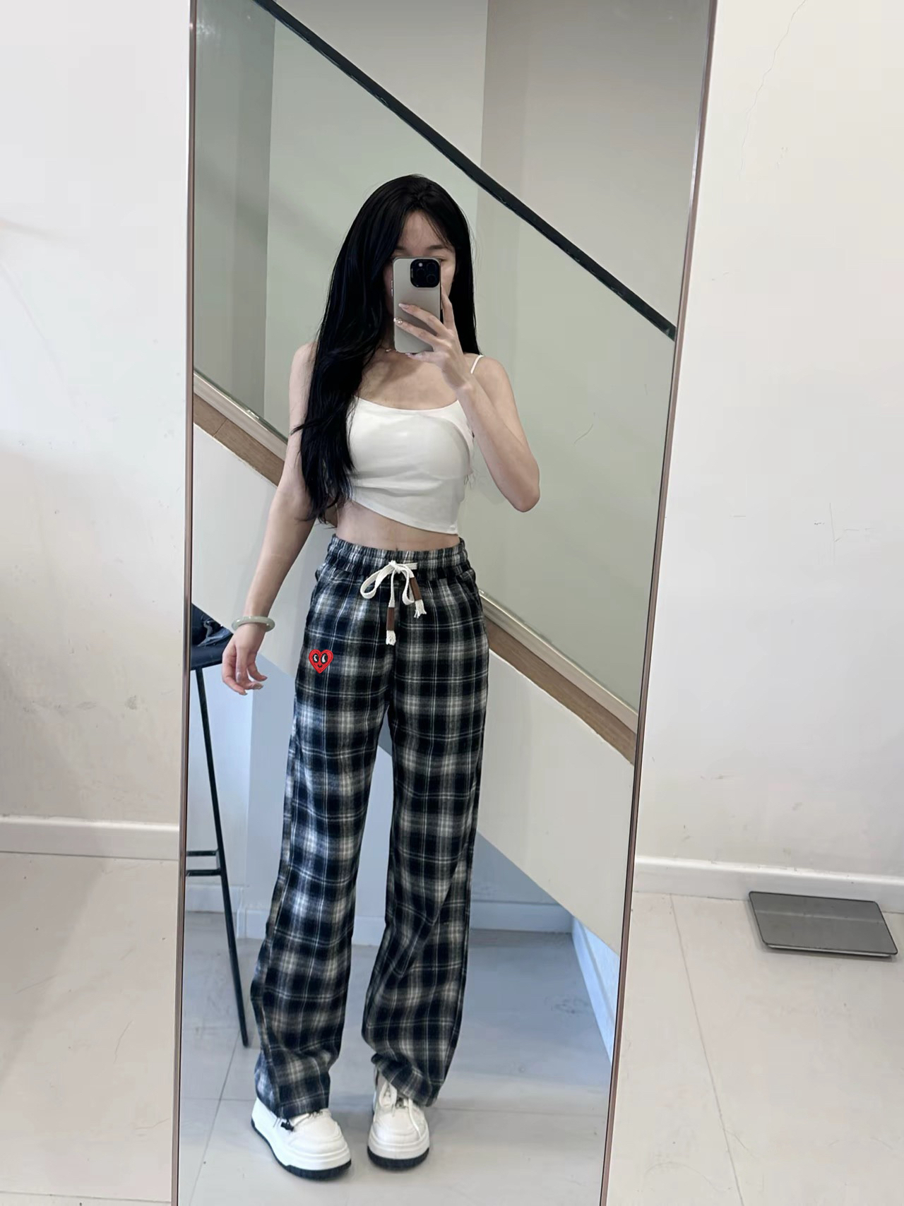 本篇笔记关联了Charles Jang's Happy Heart/查尔斯桃心 复古黑白格子拼接爱心刺绣直筒垂感休闲长裤 JTCH253049 藏青色等商品,为用户提供真实的使用体验和购买参考。