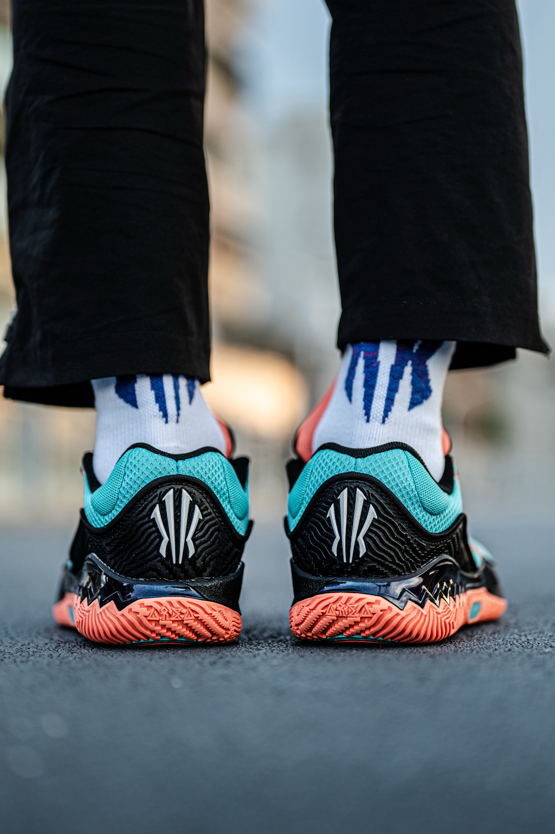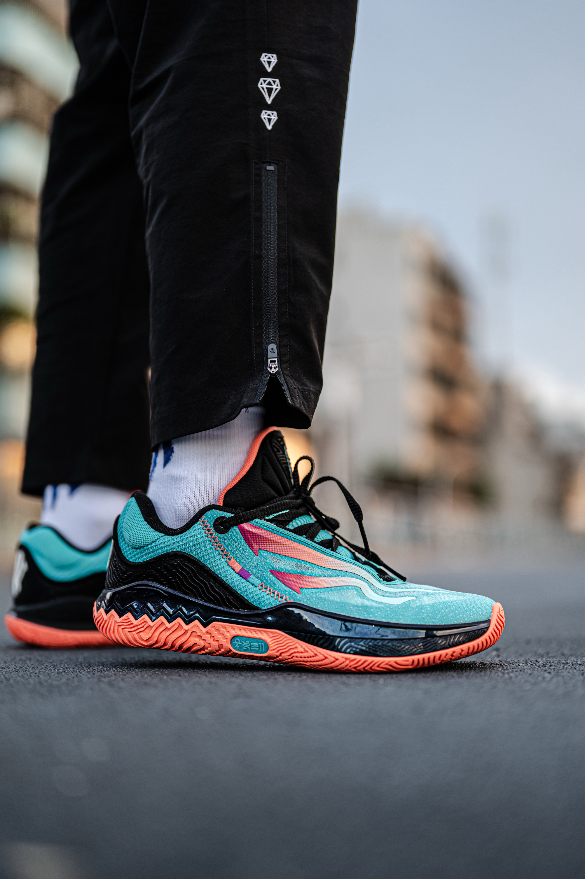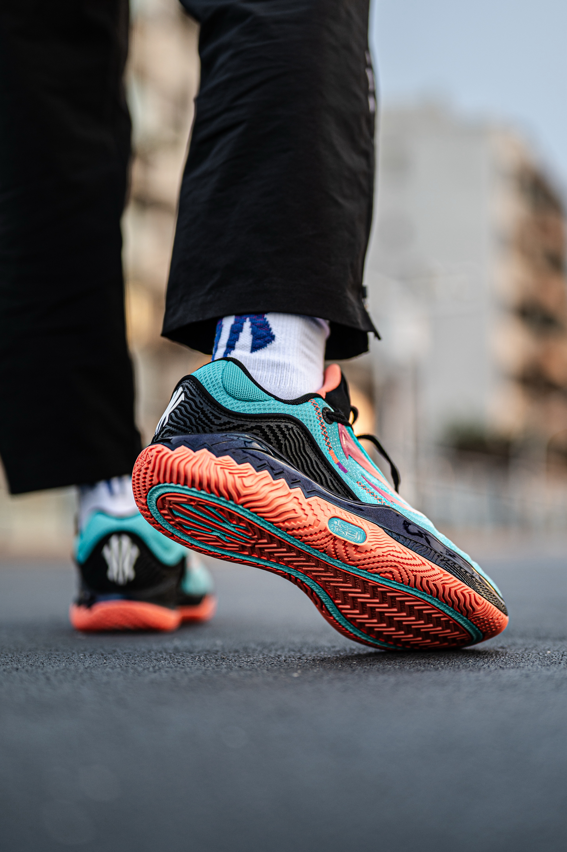 最近穿着这款安踏的KAI SPEED2,我觉得性能和颜值是很能打的,也就是先驱2代,它的性能很贴合后卫变相的打法。 这款晨朦配色采用的蓝黑橙色的结合,颜值是很好看的,而且还耐脏。 大底上翻包边在做极限的大幅度动作能很好控制,全掌A-SHOCK PRO中底,中底脚感是利于突破的韧性。 大底采用的橡胶材质,我认为是很好的兼容内场和外场水泥地的优势。
