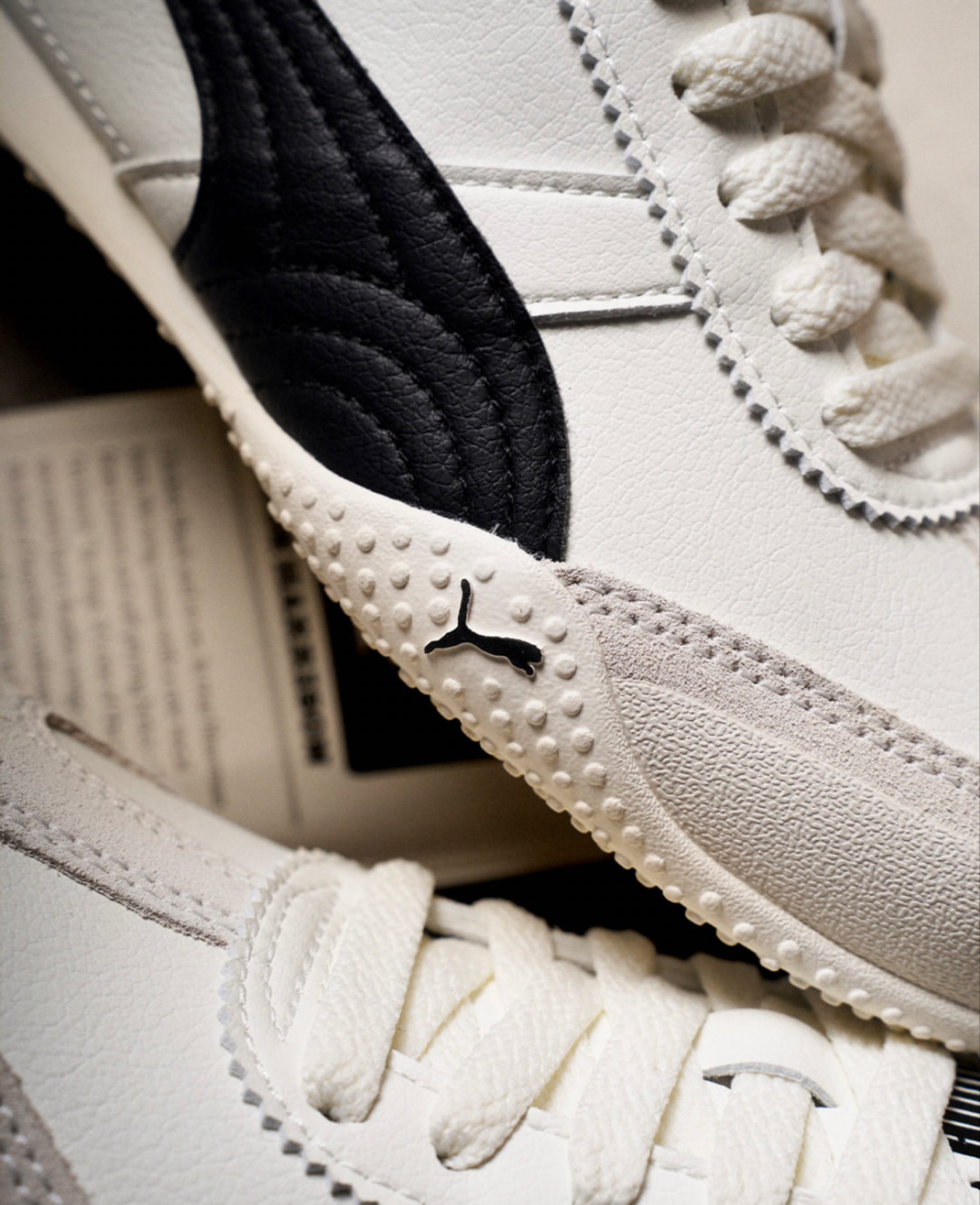 鞋面是白色皮革和麂皮拼接,上脚柔软有质感,小白鞋也很好搭。